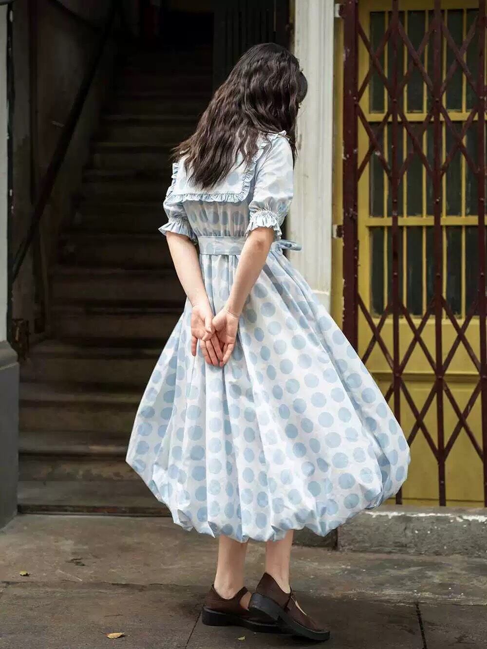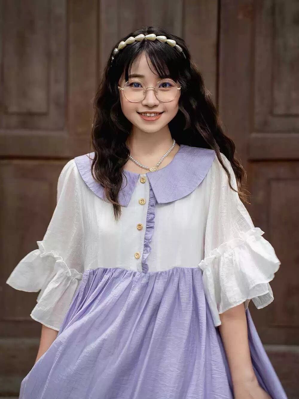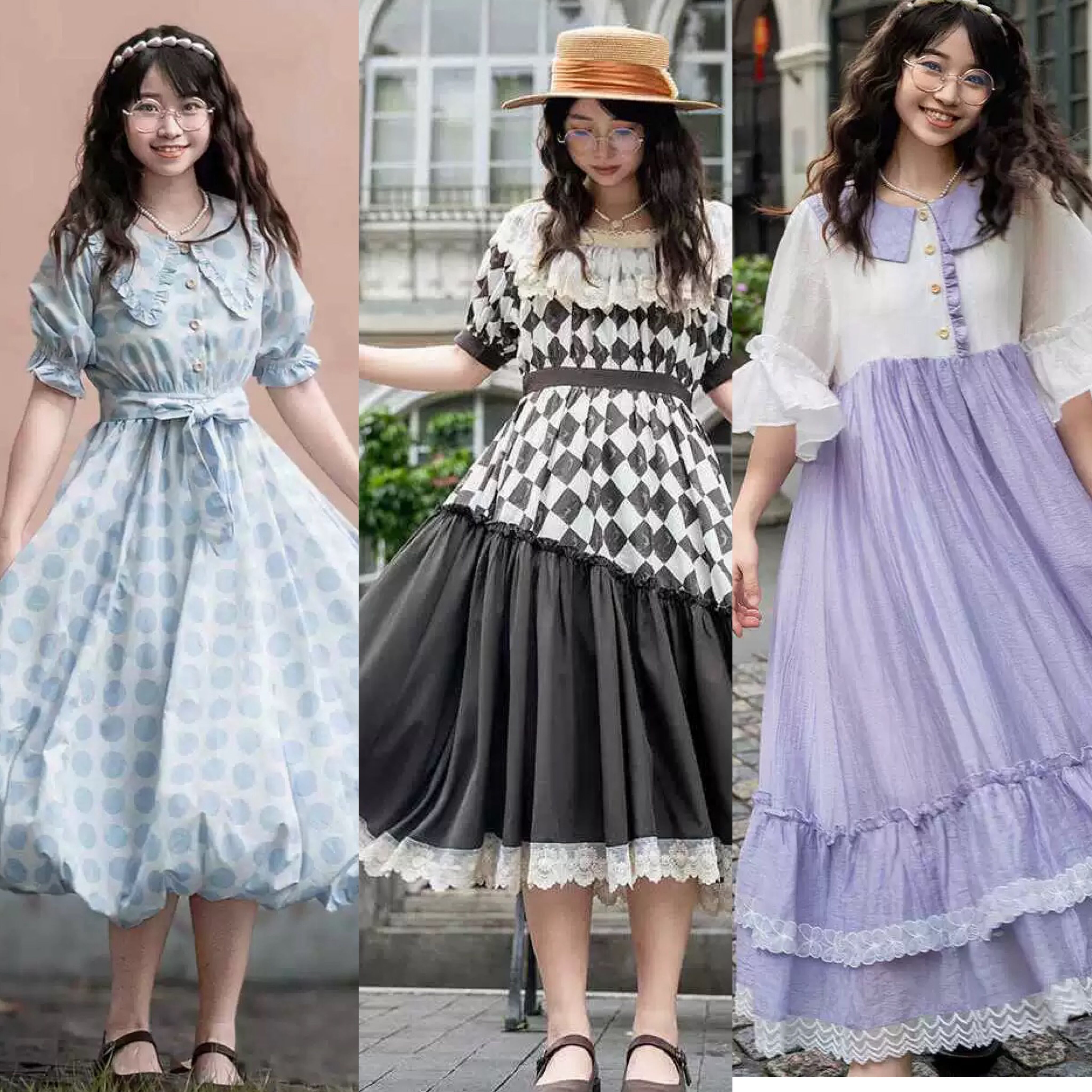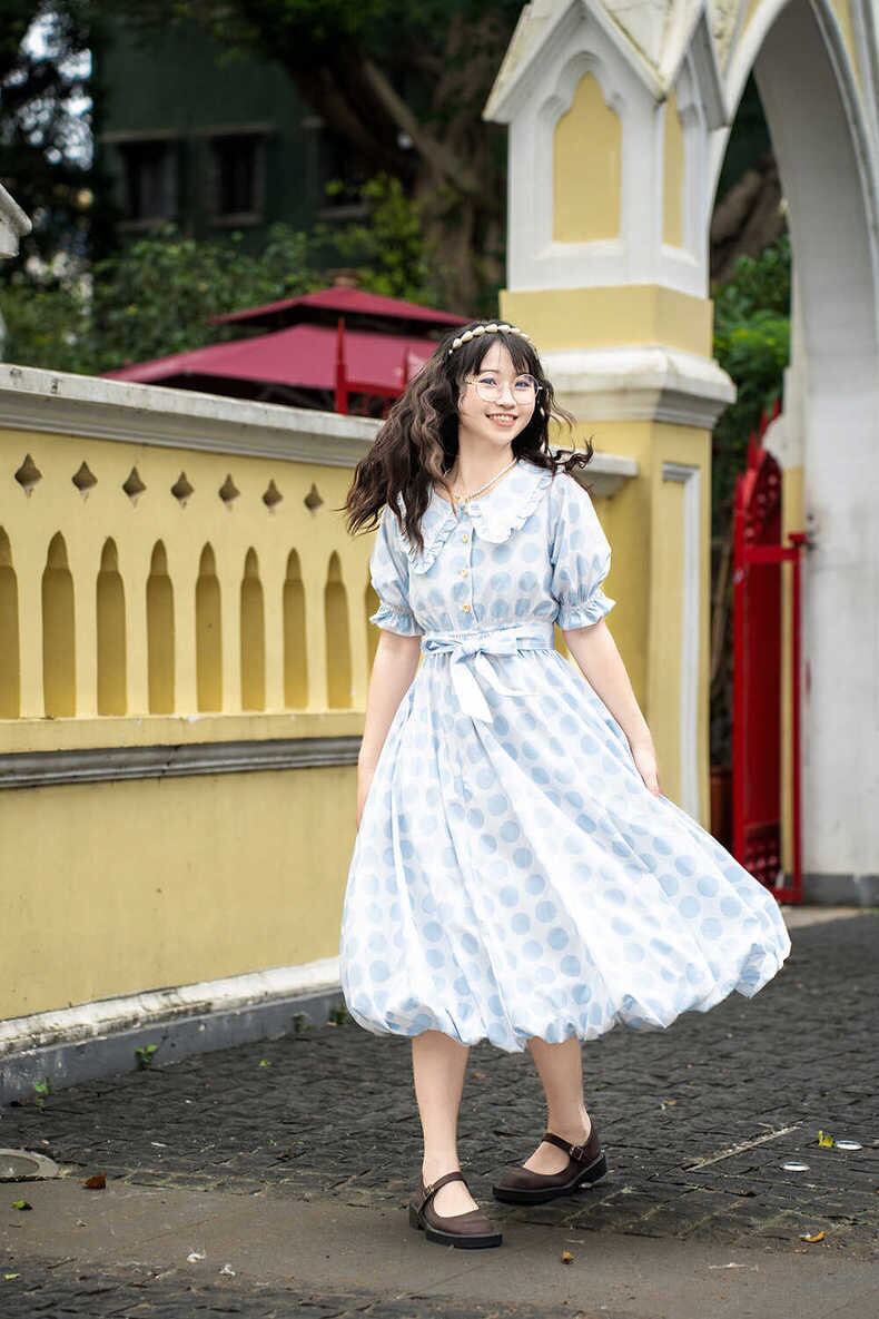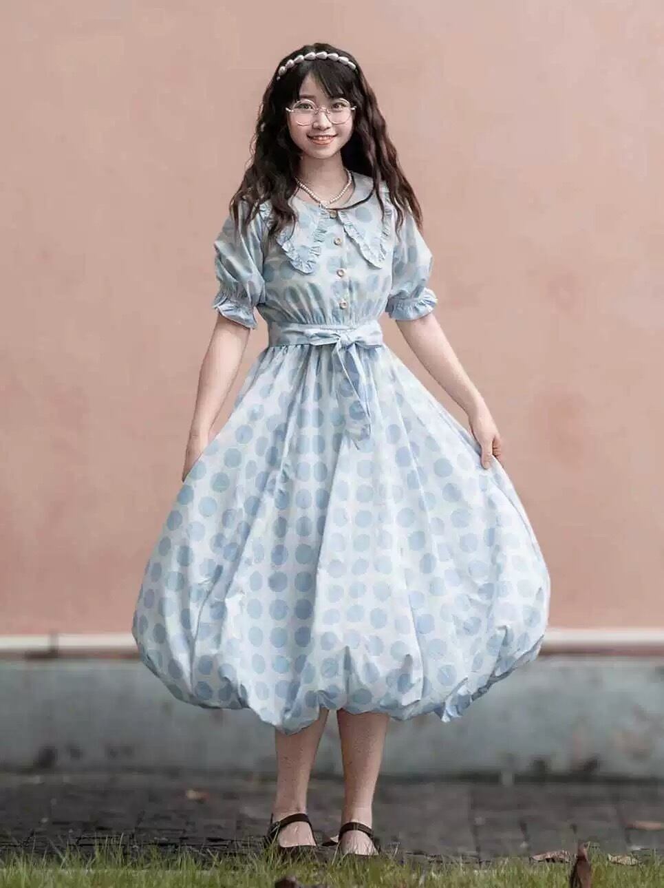 ワンピース ガーリー 水色 丸襟 紫 原宿 可愛い