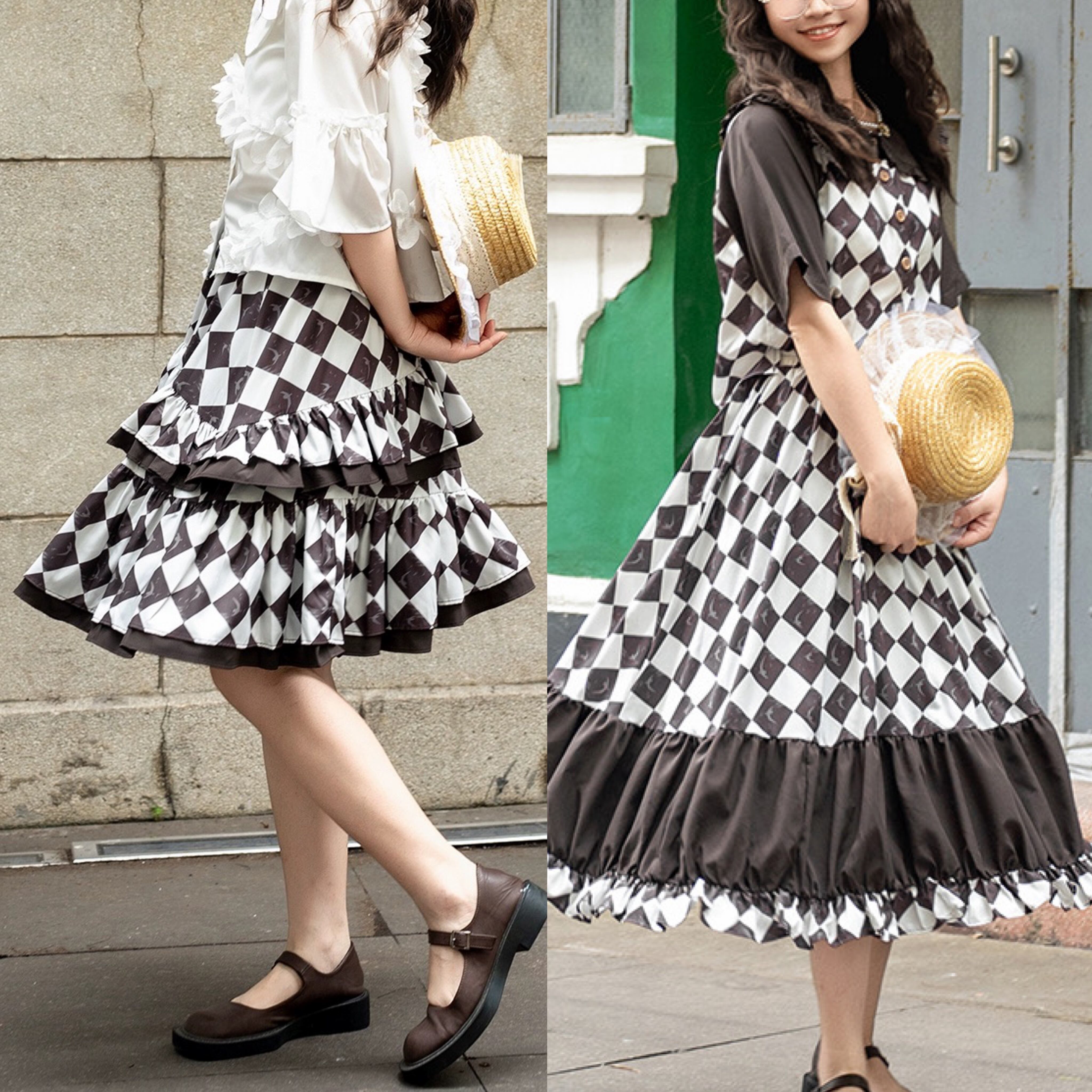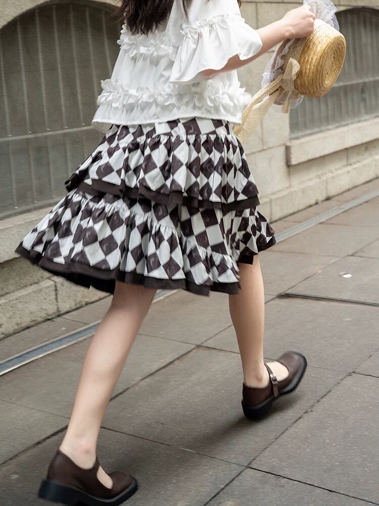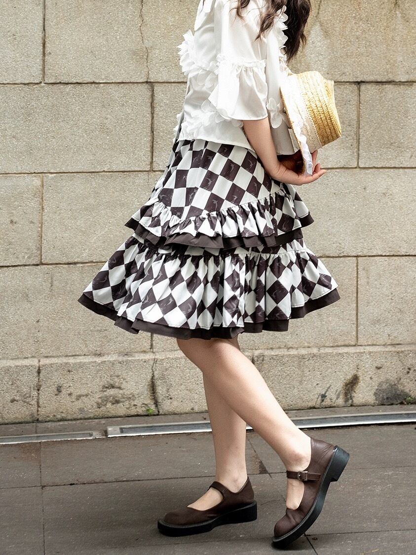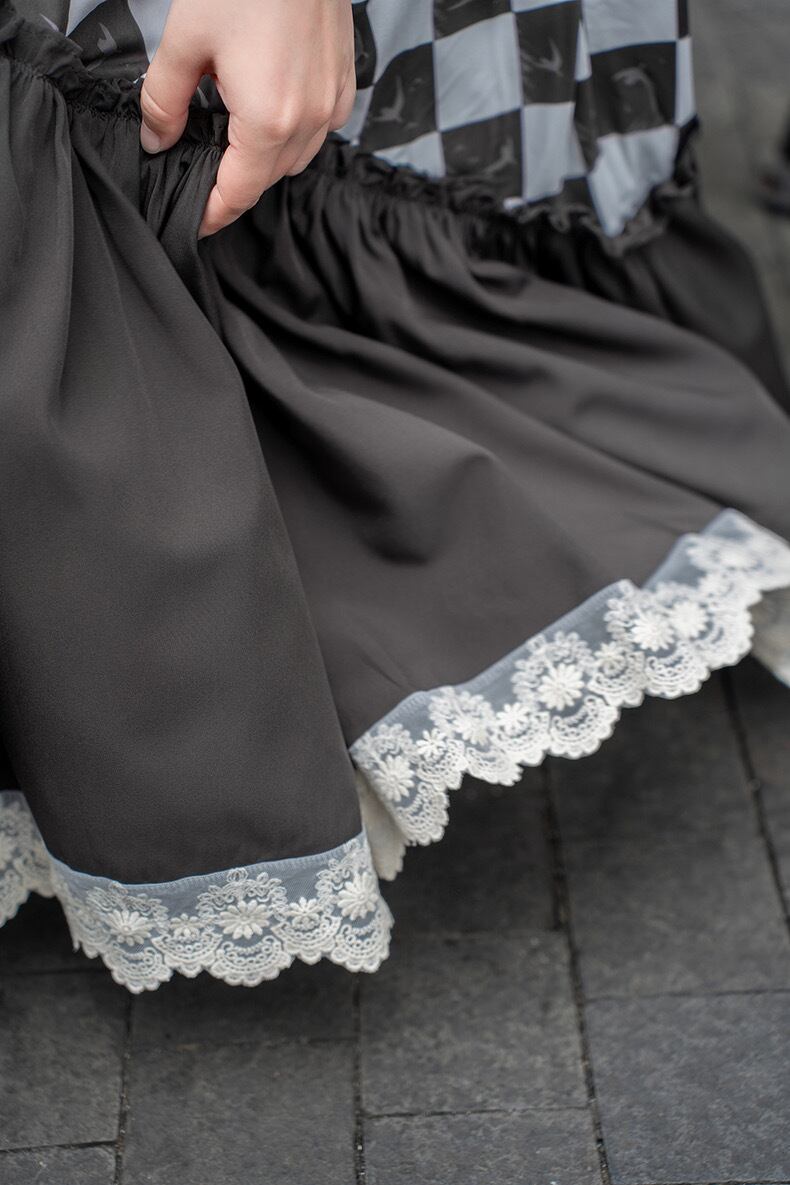 スカート チェック 白 黒 マキシ ガーリー 原宿