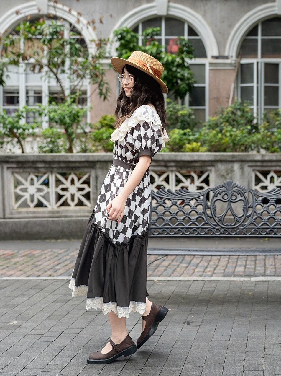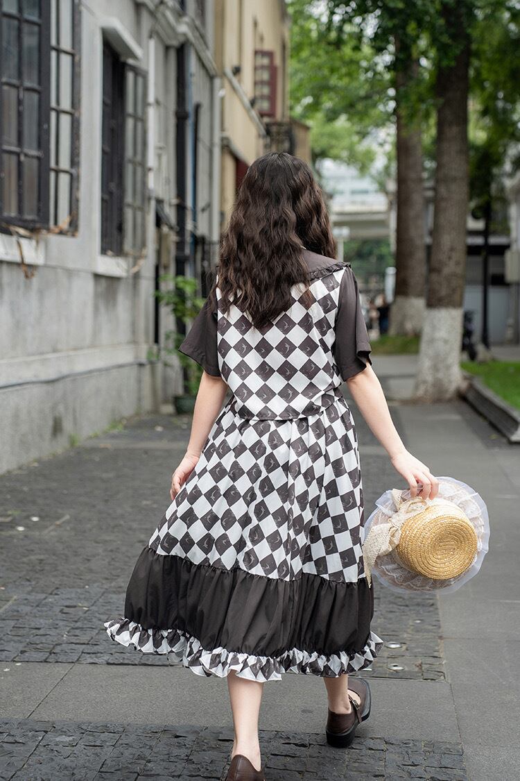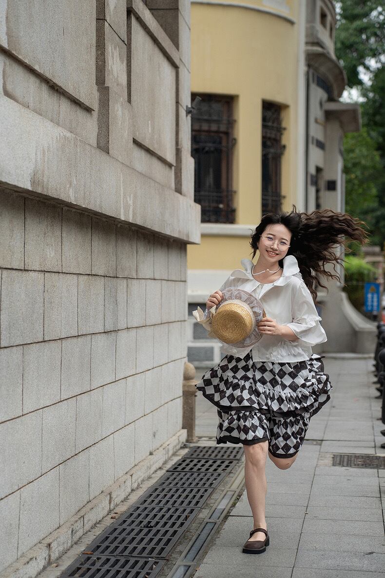 スカート チェック 白 黒 マキシ ガーリー 原宿