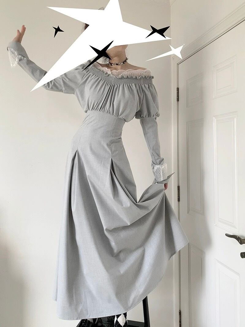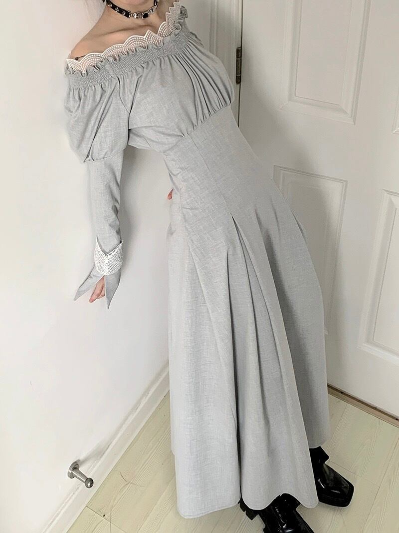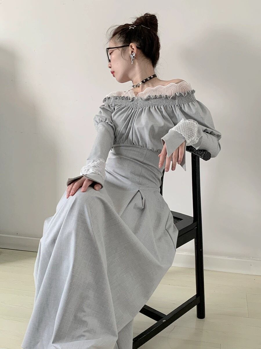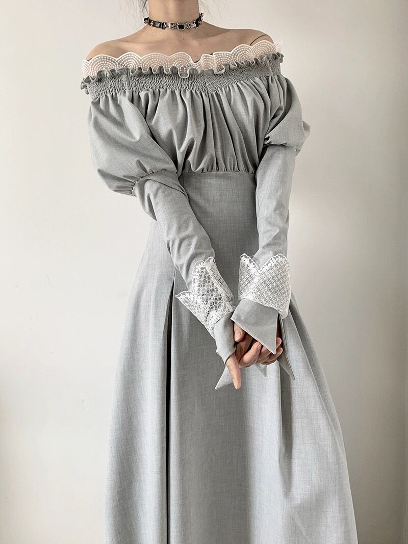 グレー オフショルダー ワンピース ブラウス ガーリー 可愛い マキシ