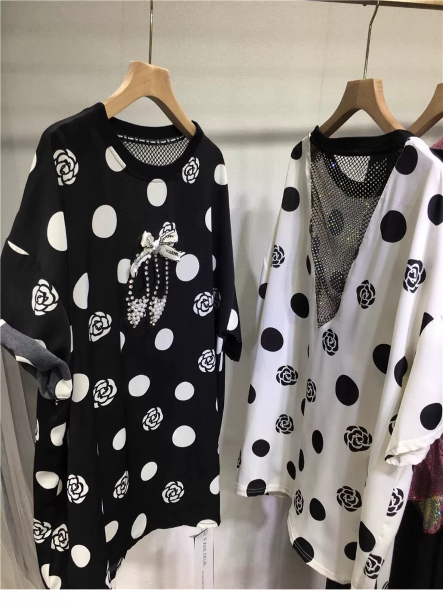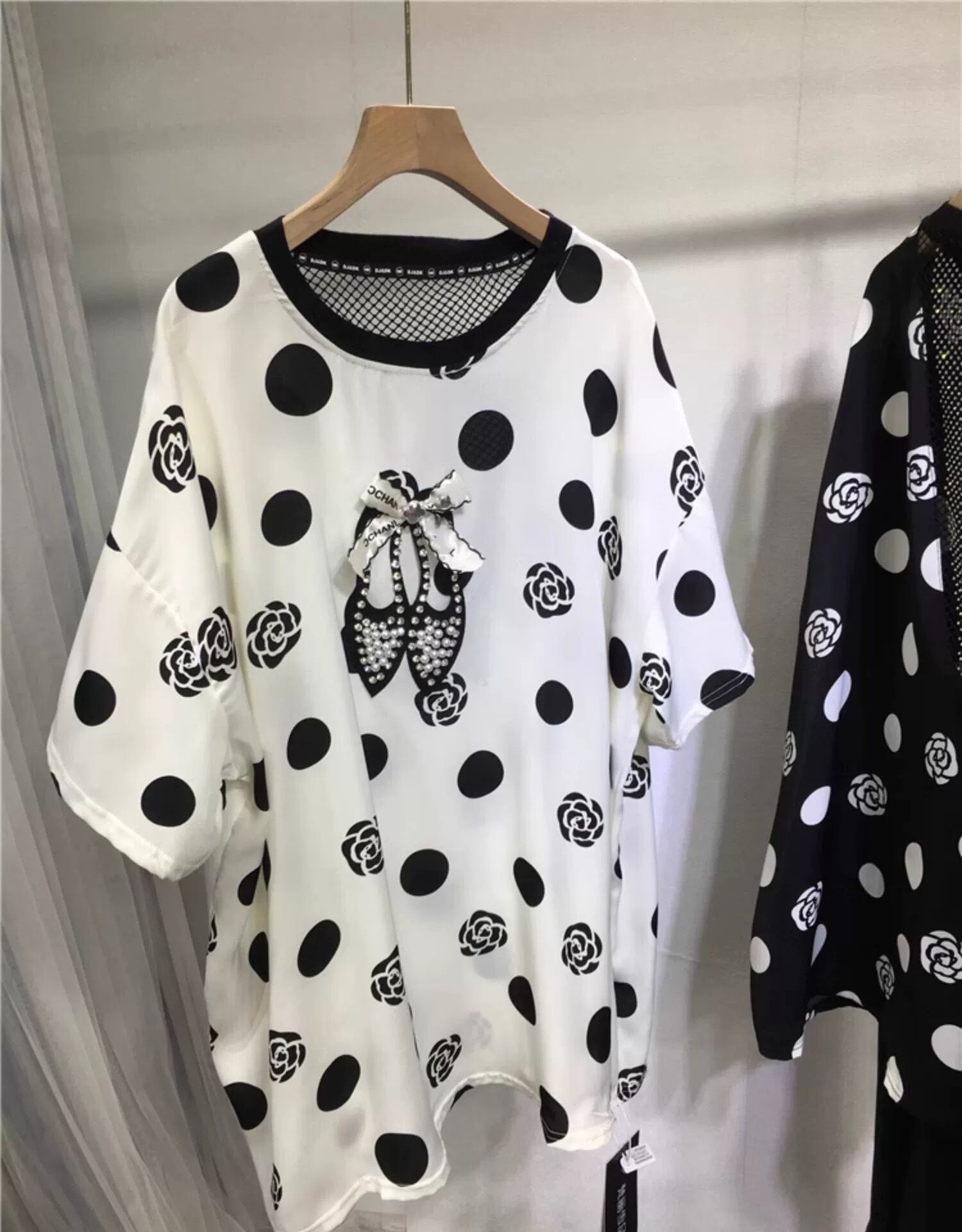 薔薇 靴 花柄 フラワー 黒 白 水玉 ドット Tシャツ ブラウス カメリア