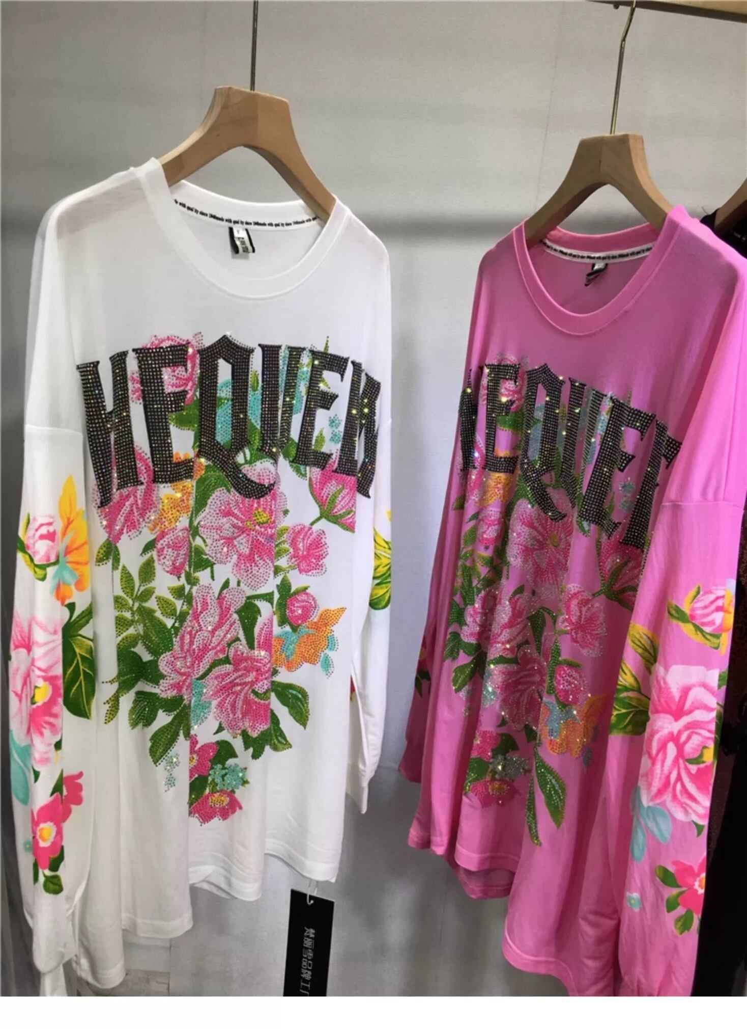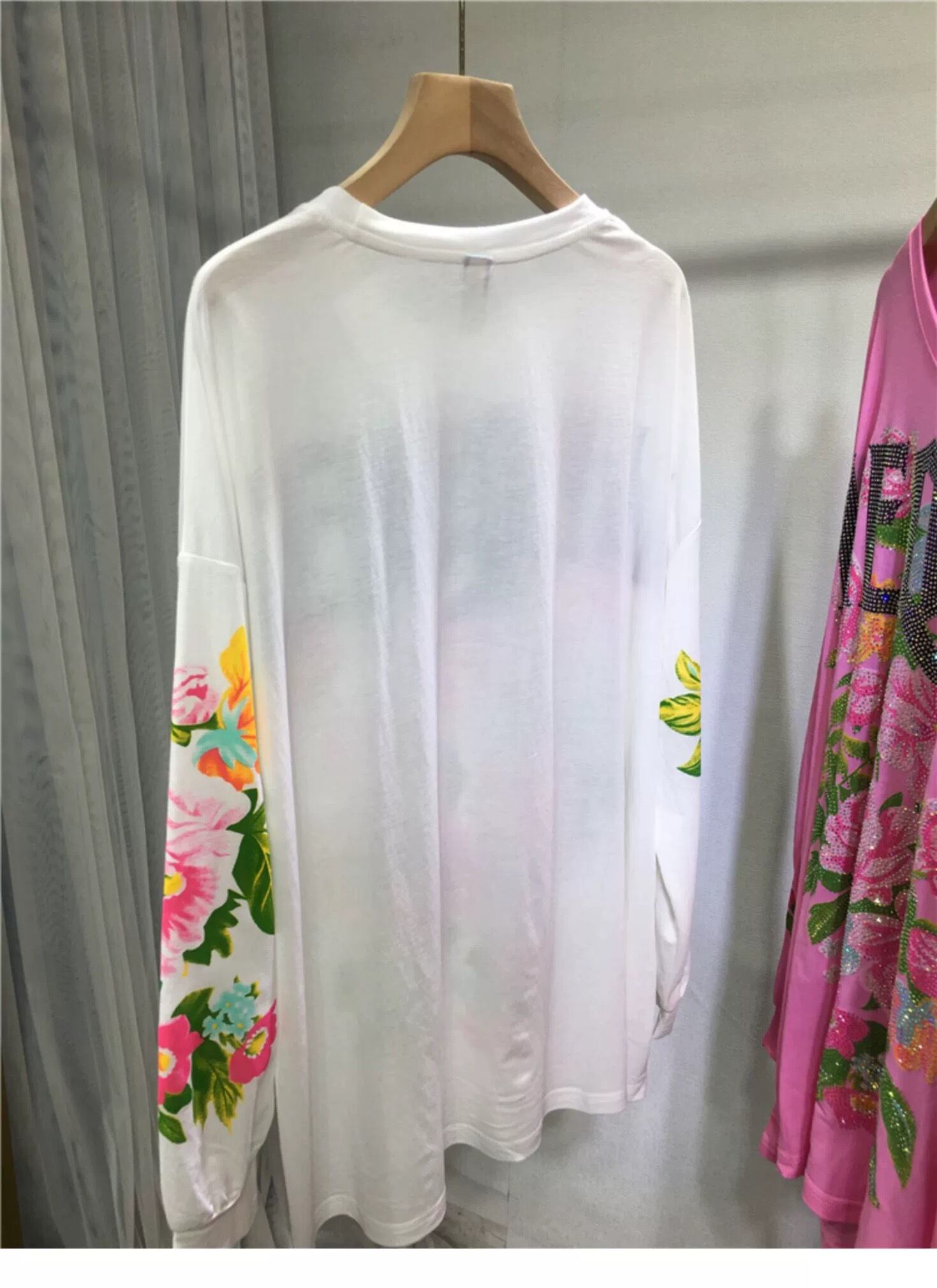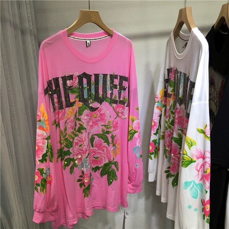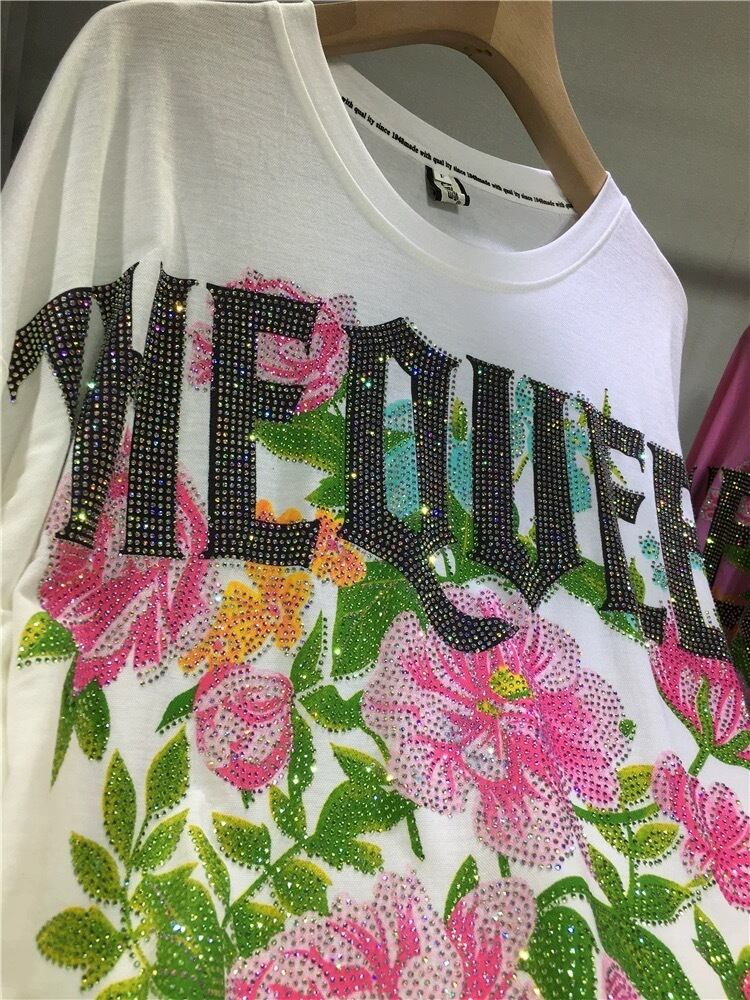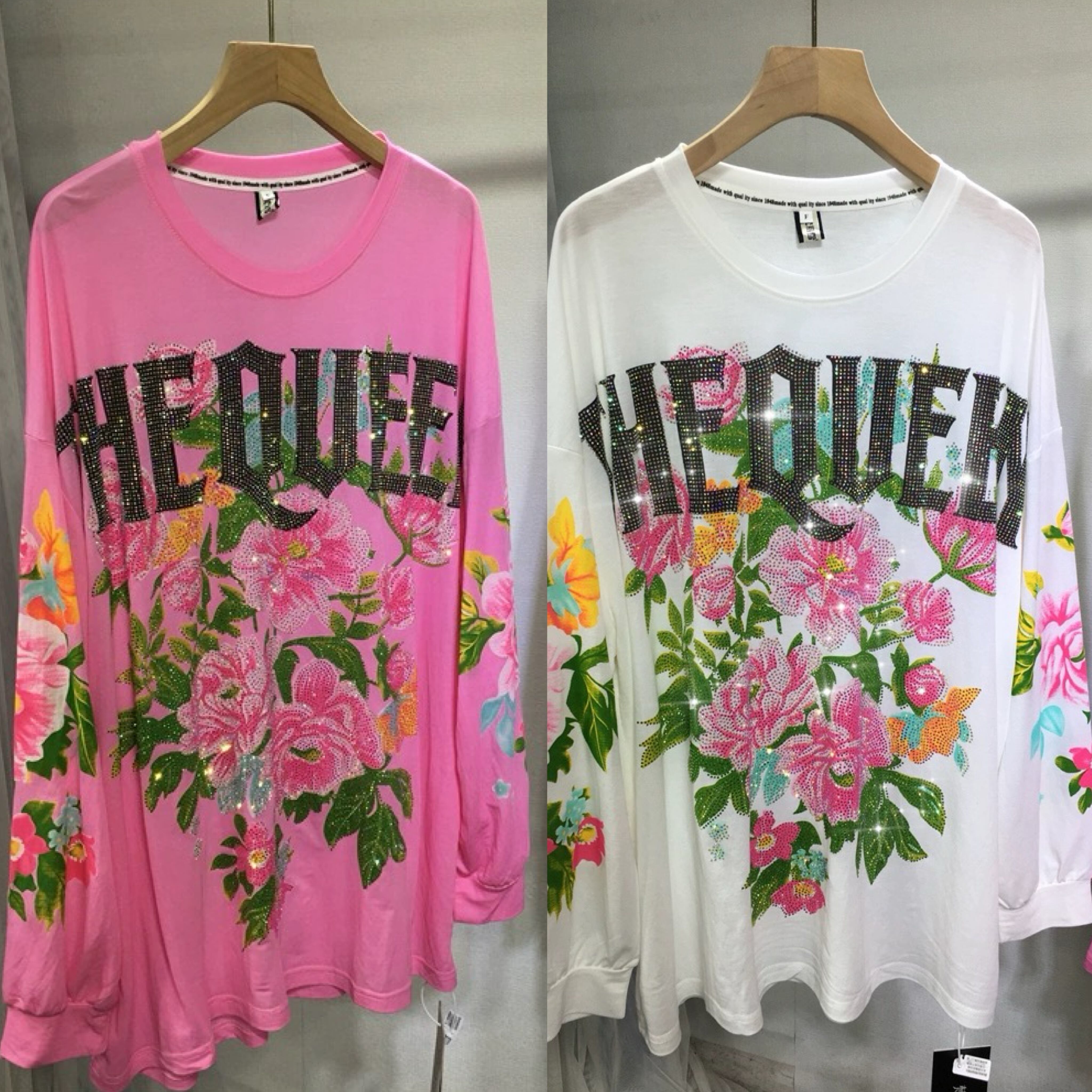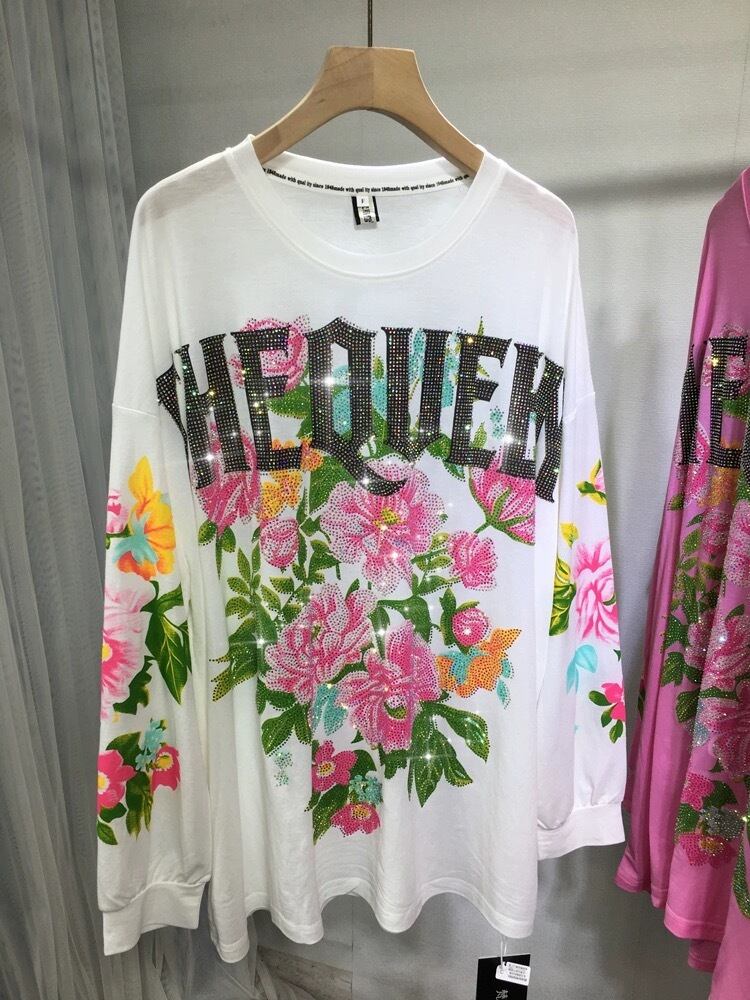 キラキラ ラインストーン ピンク 白 花柄 フラワー Tシャツ ブラウス