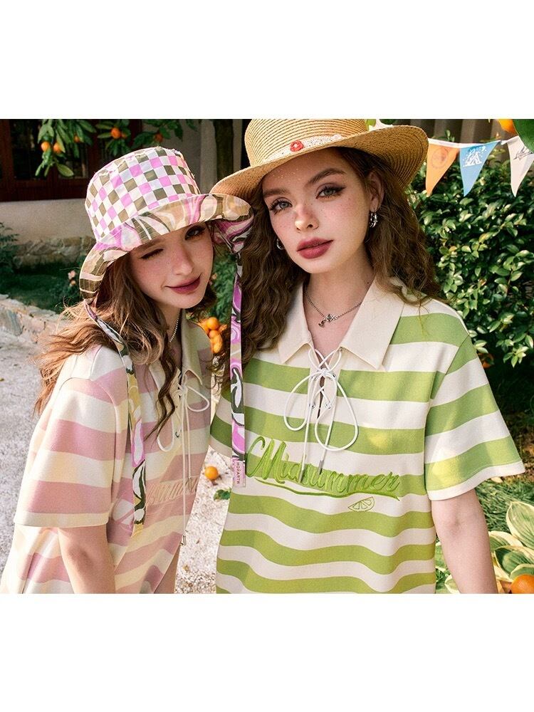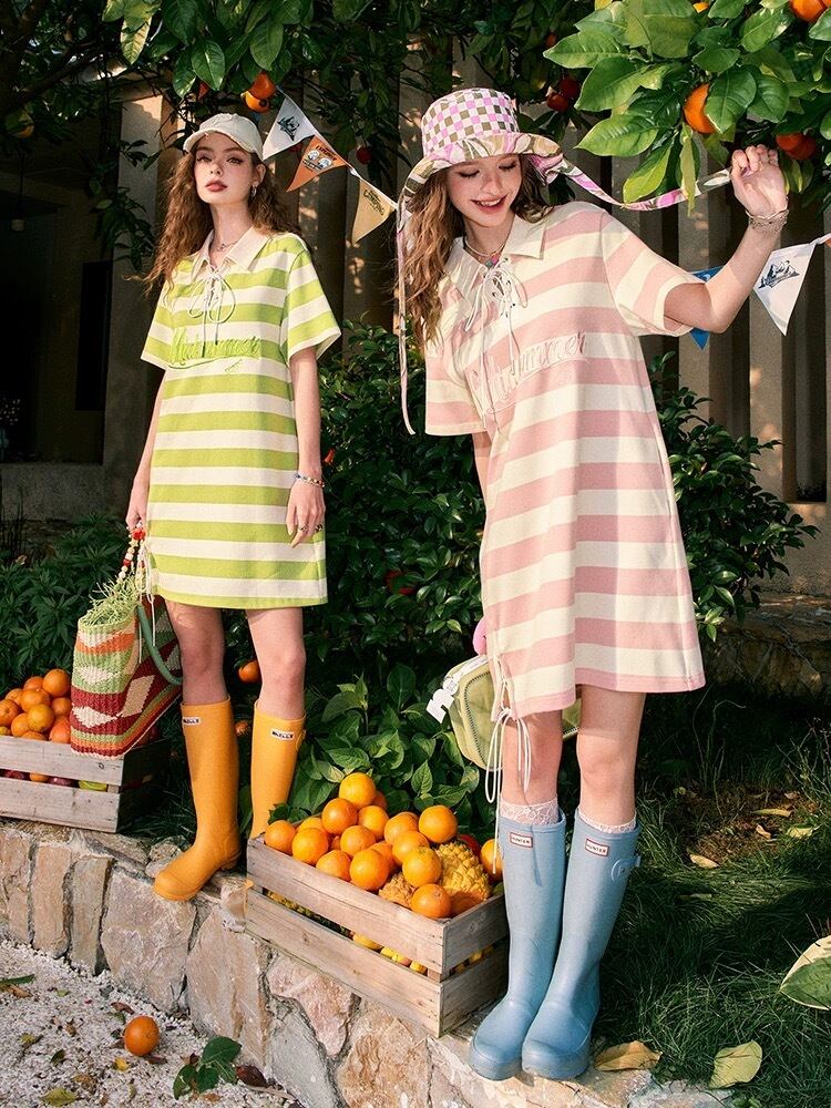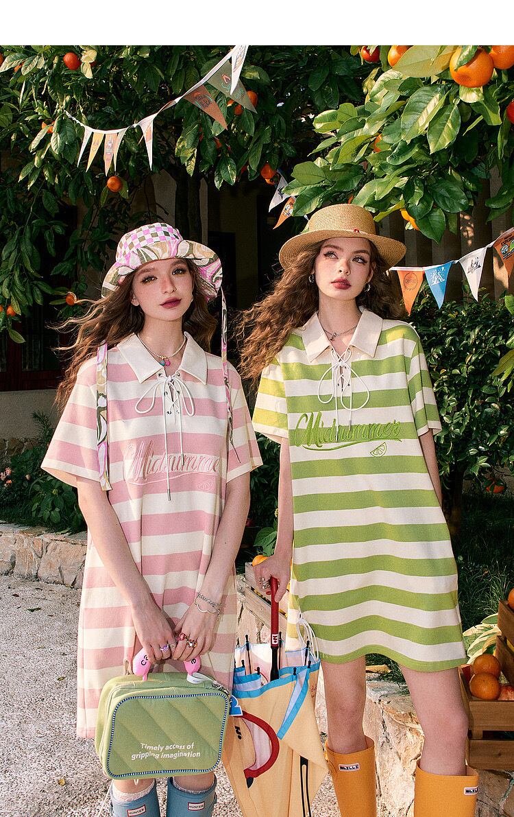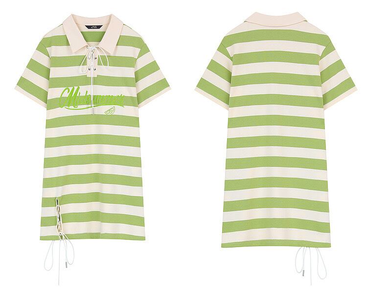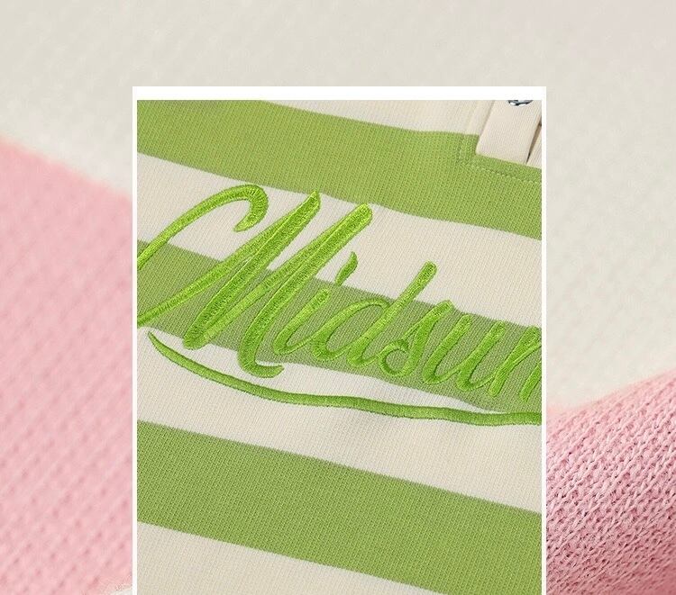 ボーダー 緑 ピンク スウェット カジュアル ガーリー スポーティー ワンピース