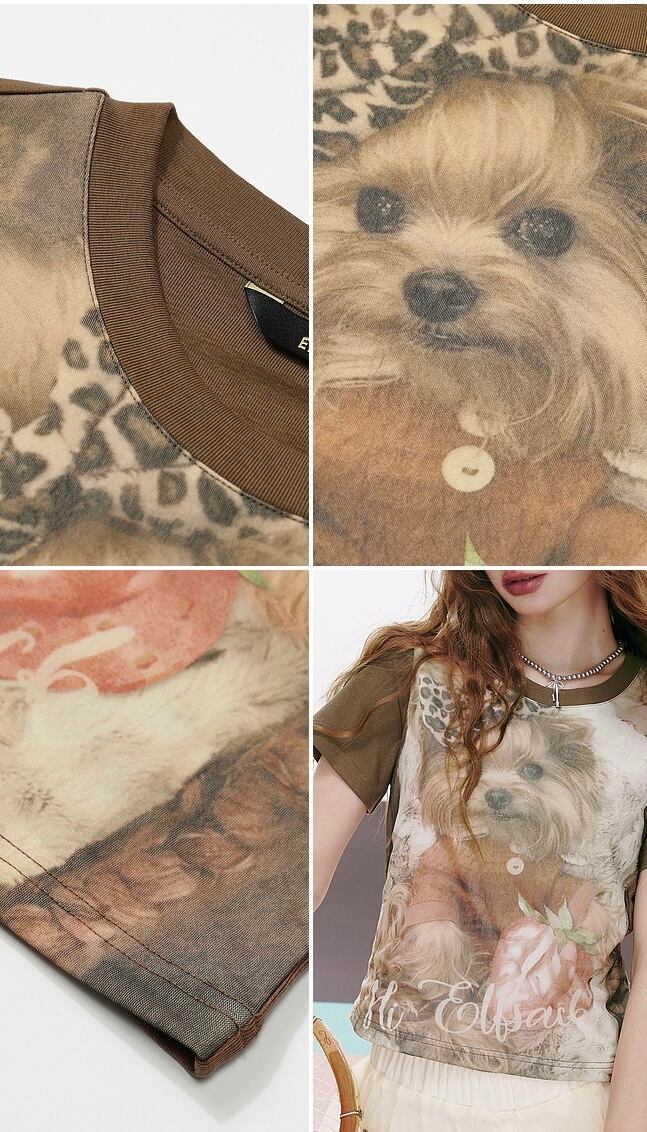 犬 Tシャツ トップス カジュアル ブラウス 茶色 ヨークシャテリア 犬 ペット