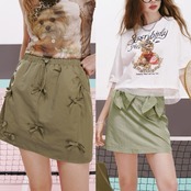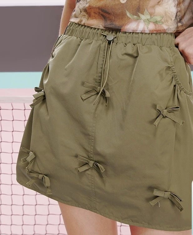 グリーン カーキ 緑 ミニスカート リボン ガーリー スポーティー ボトムス カジュアル