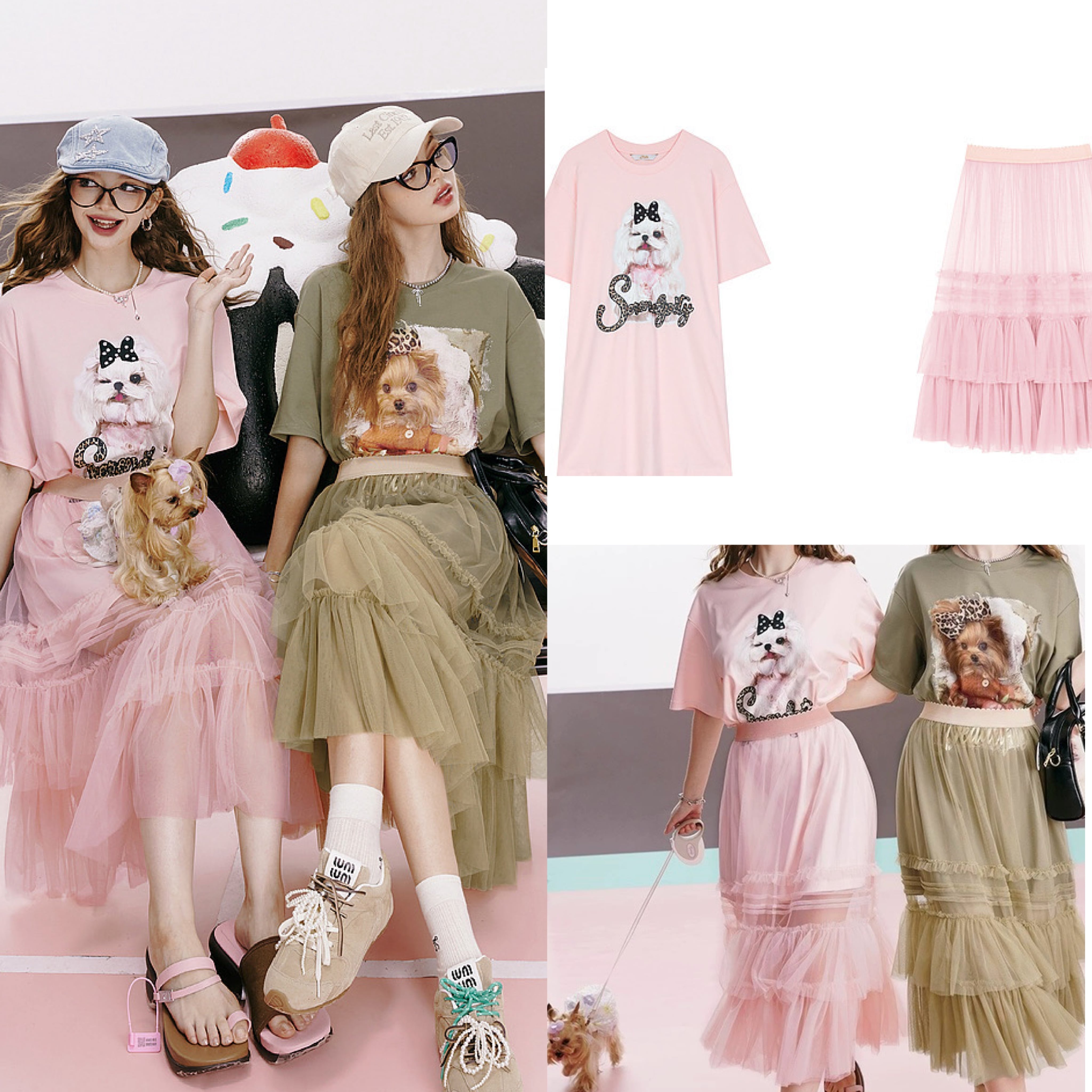 ワンピース ピンク カーキ グリーン チャウチャウ 犬 ペット ヨークシャテリア ペキニーズ 緑 Tシャツ スカート