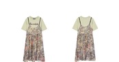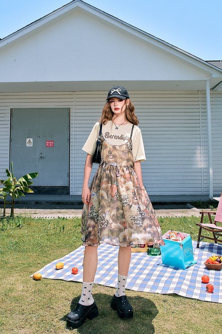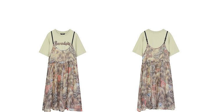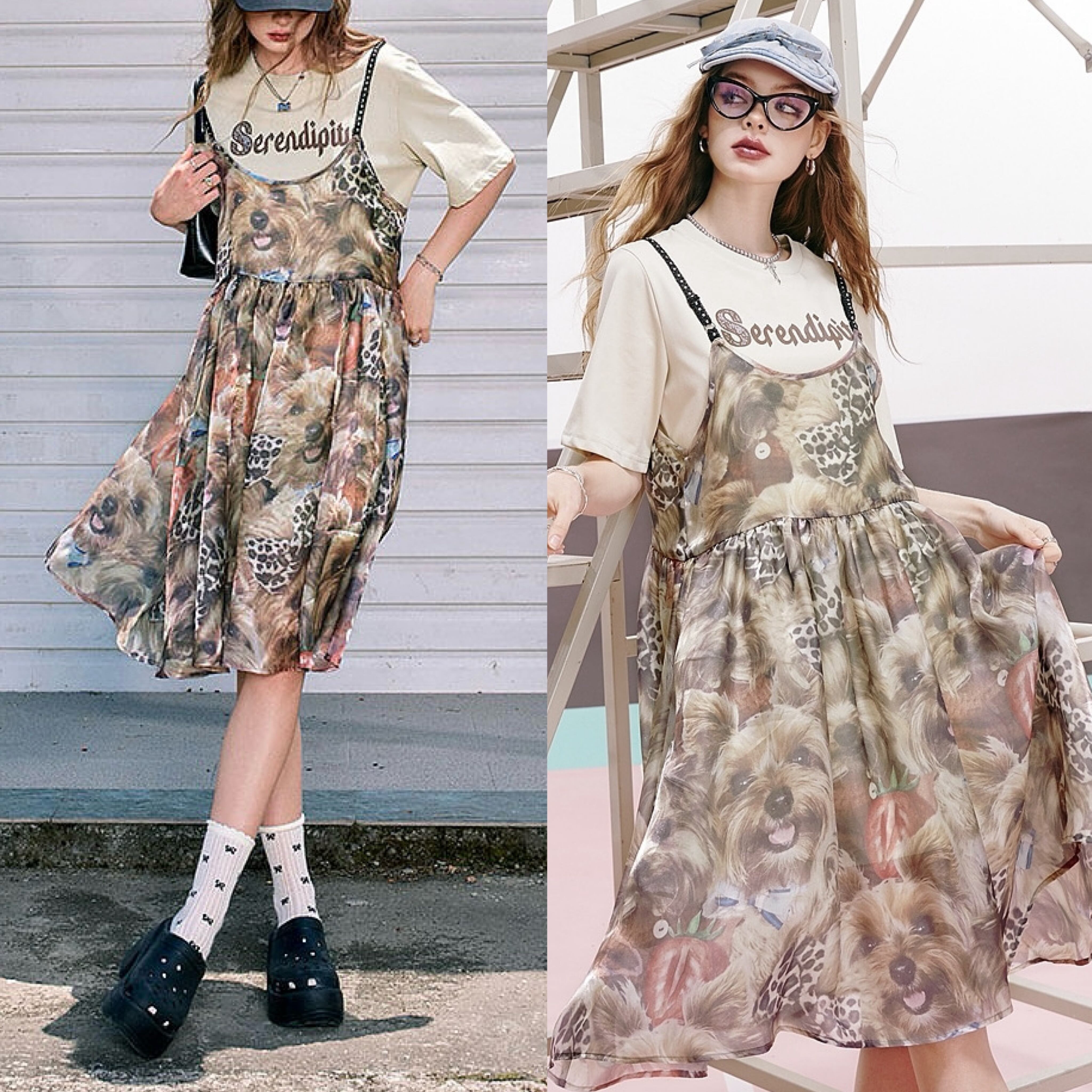 【セット】Tシャツ グリーン ヨークシャテリア 茶色 キャミソール ワンピース チュニック ペット 犬 カジュアル
