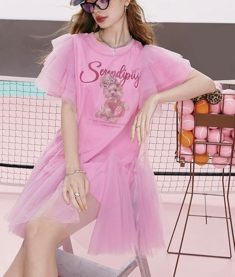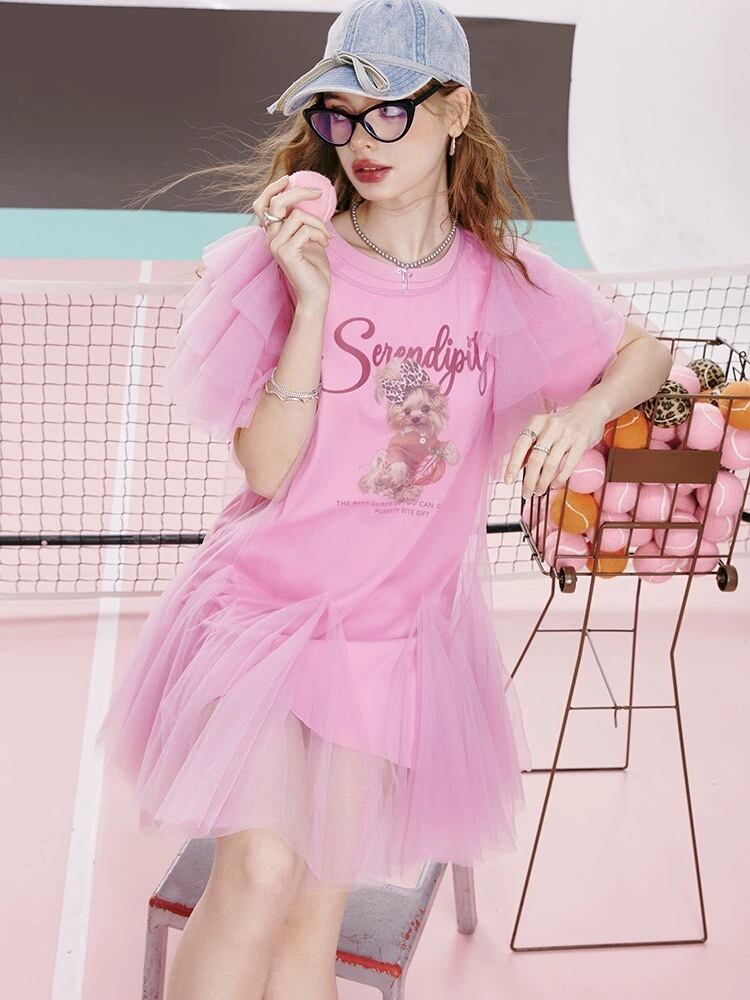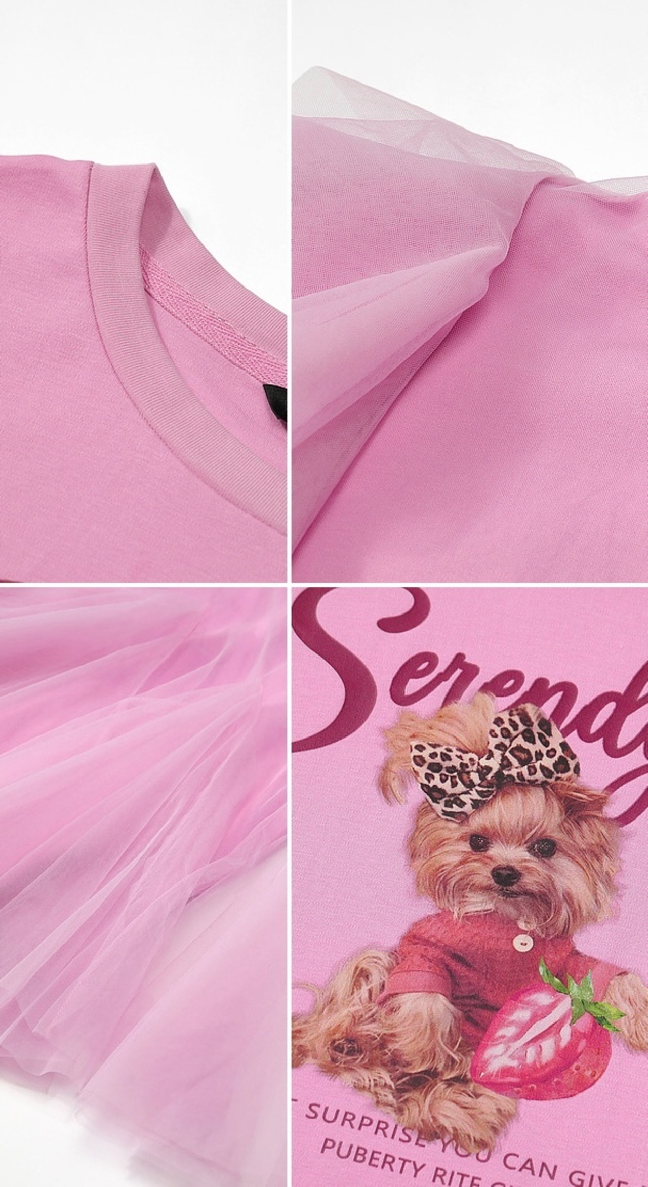 ピンク ガーリー ワンピース カジュアル 可愛い 犬 フリル スウェット トレーナー