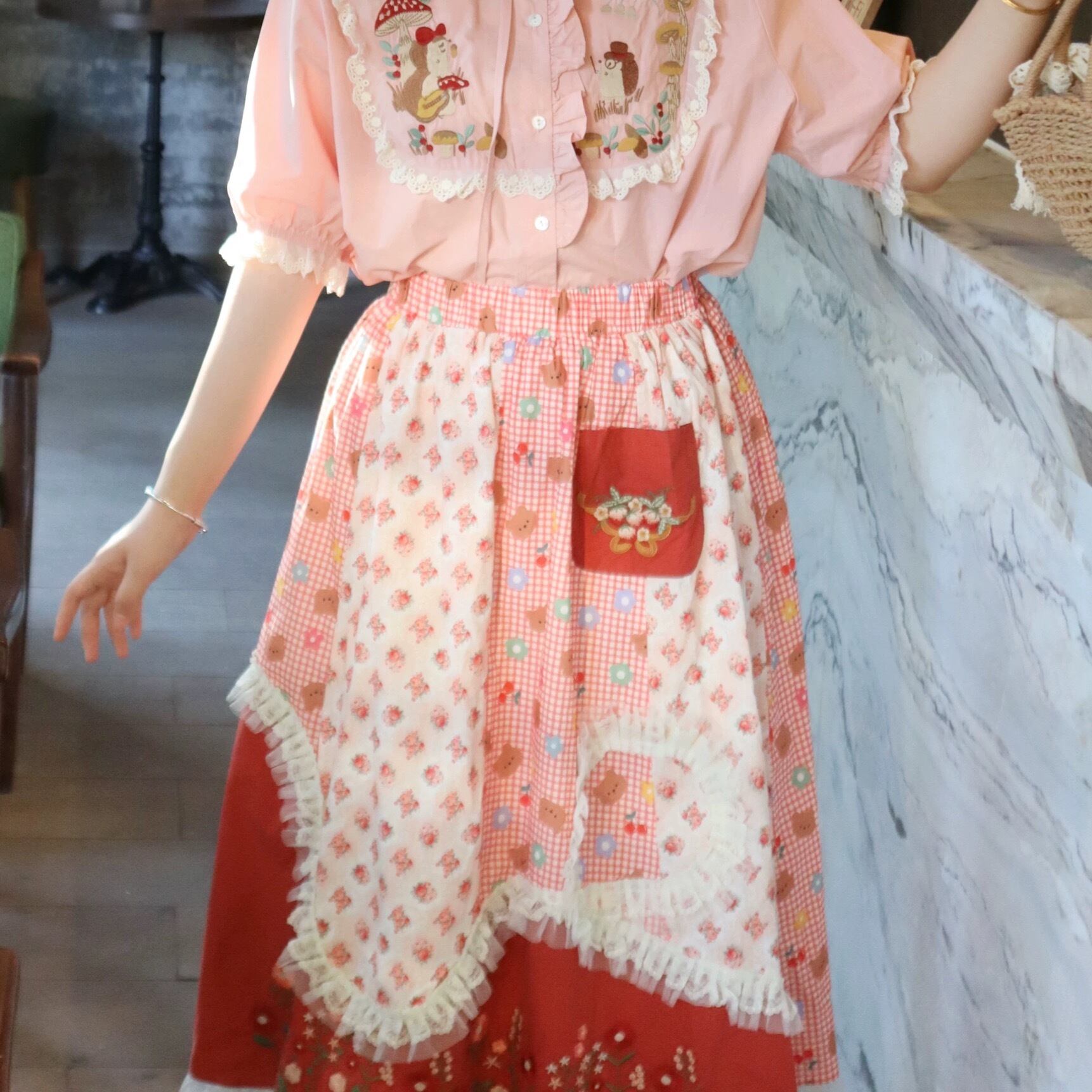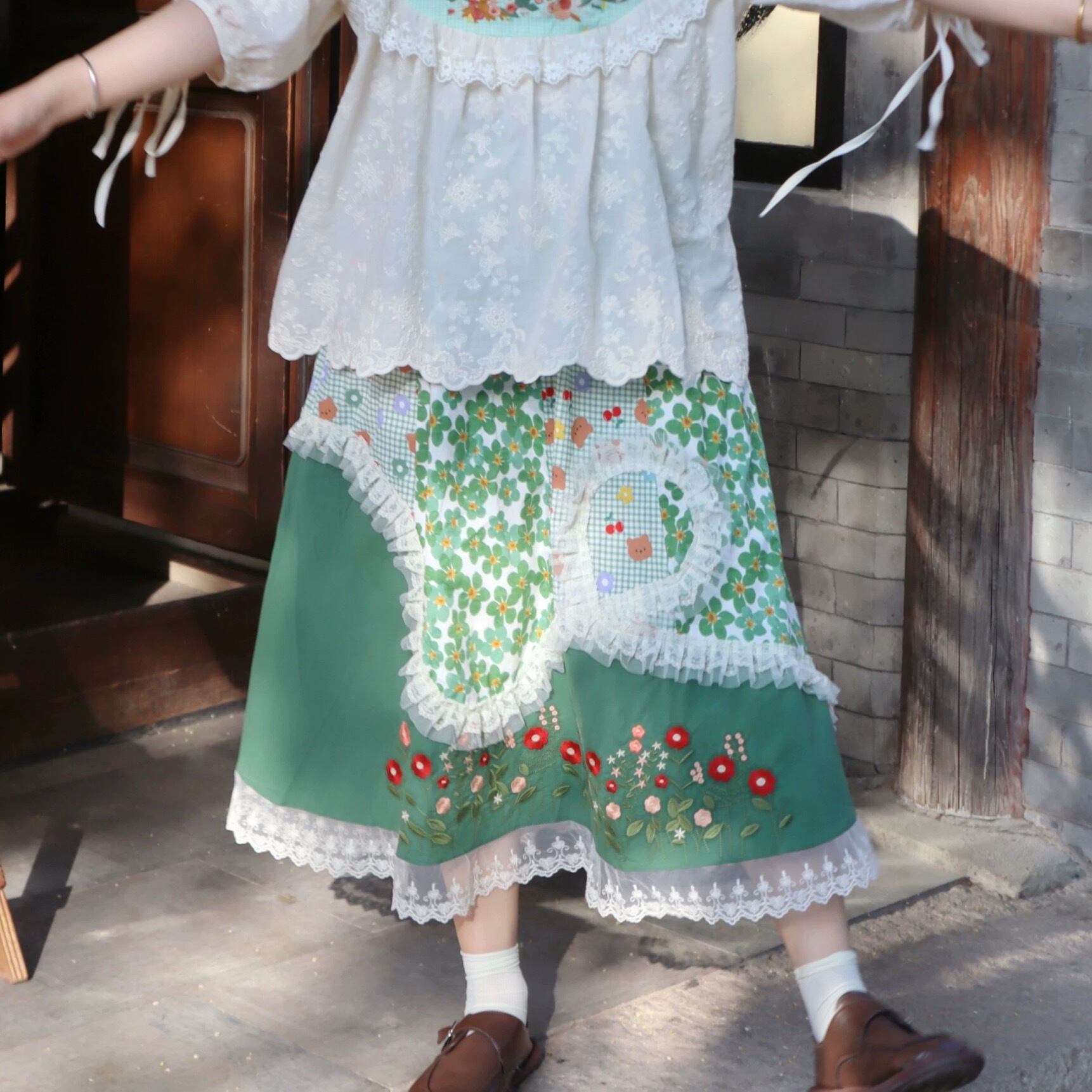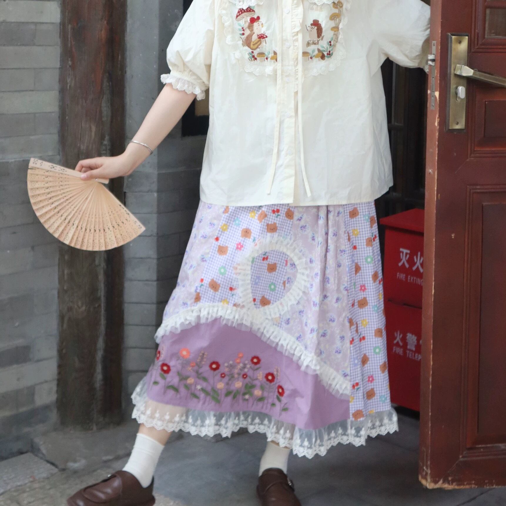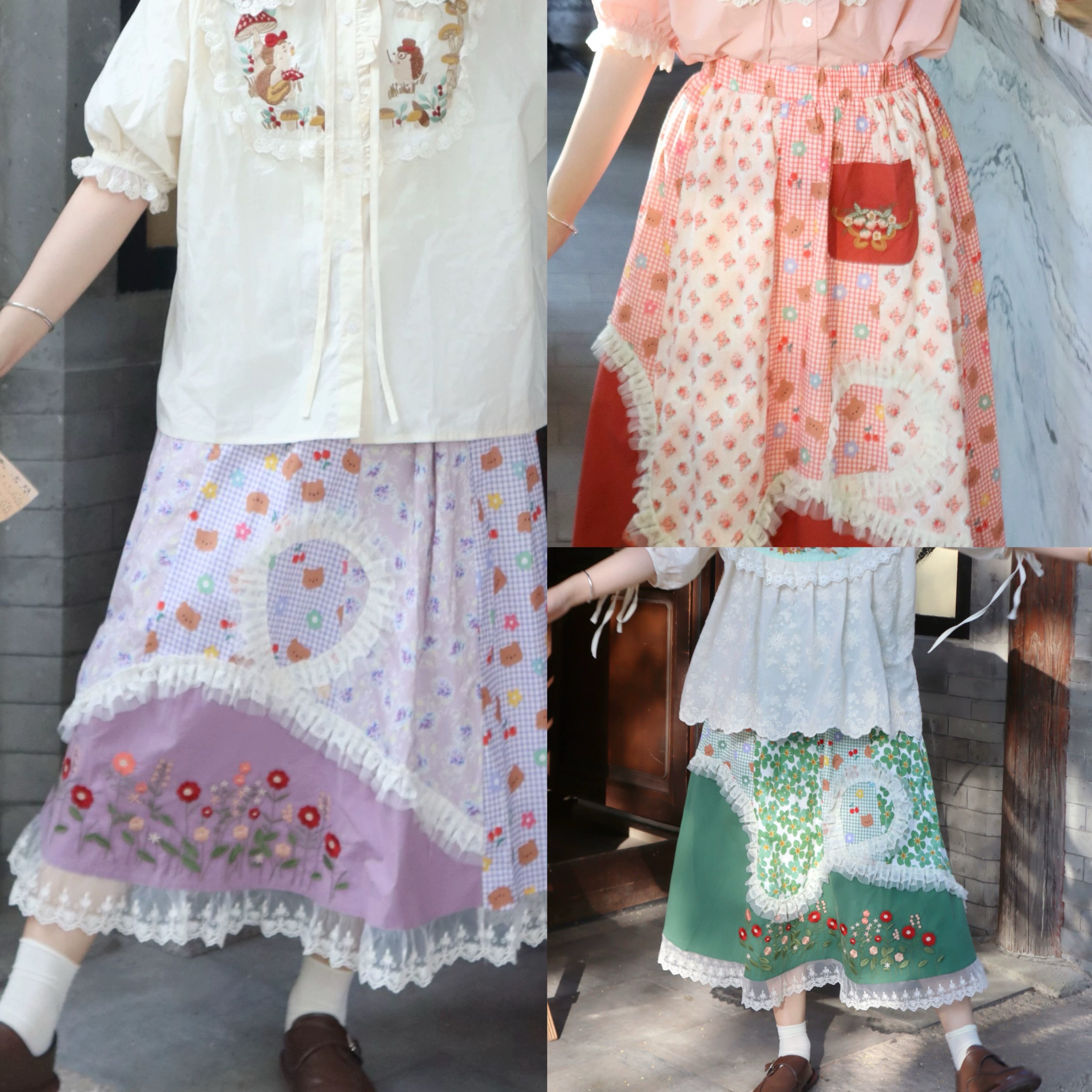 スカート 緑 オレンジ 紫 ボトムス 水色 チャイナ ピンク 古着 ガーリー 丸襟 パッチワーク 可愛い ワンピース ガーリー 原宿 姫 花柄 ピンク ブラウス チェック