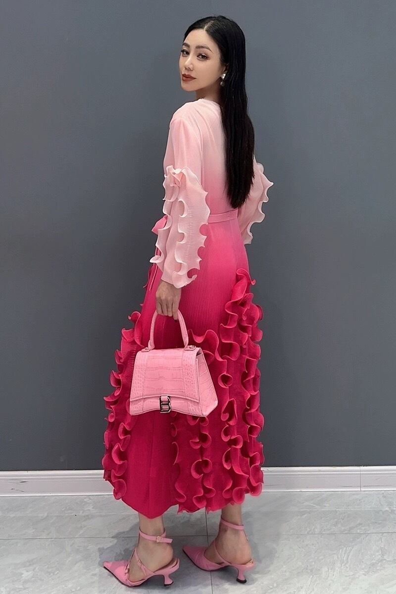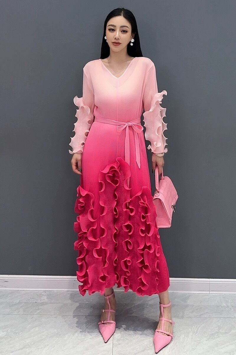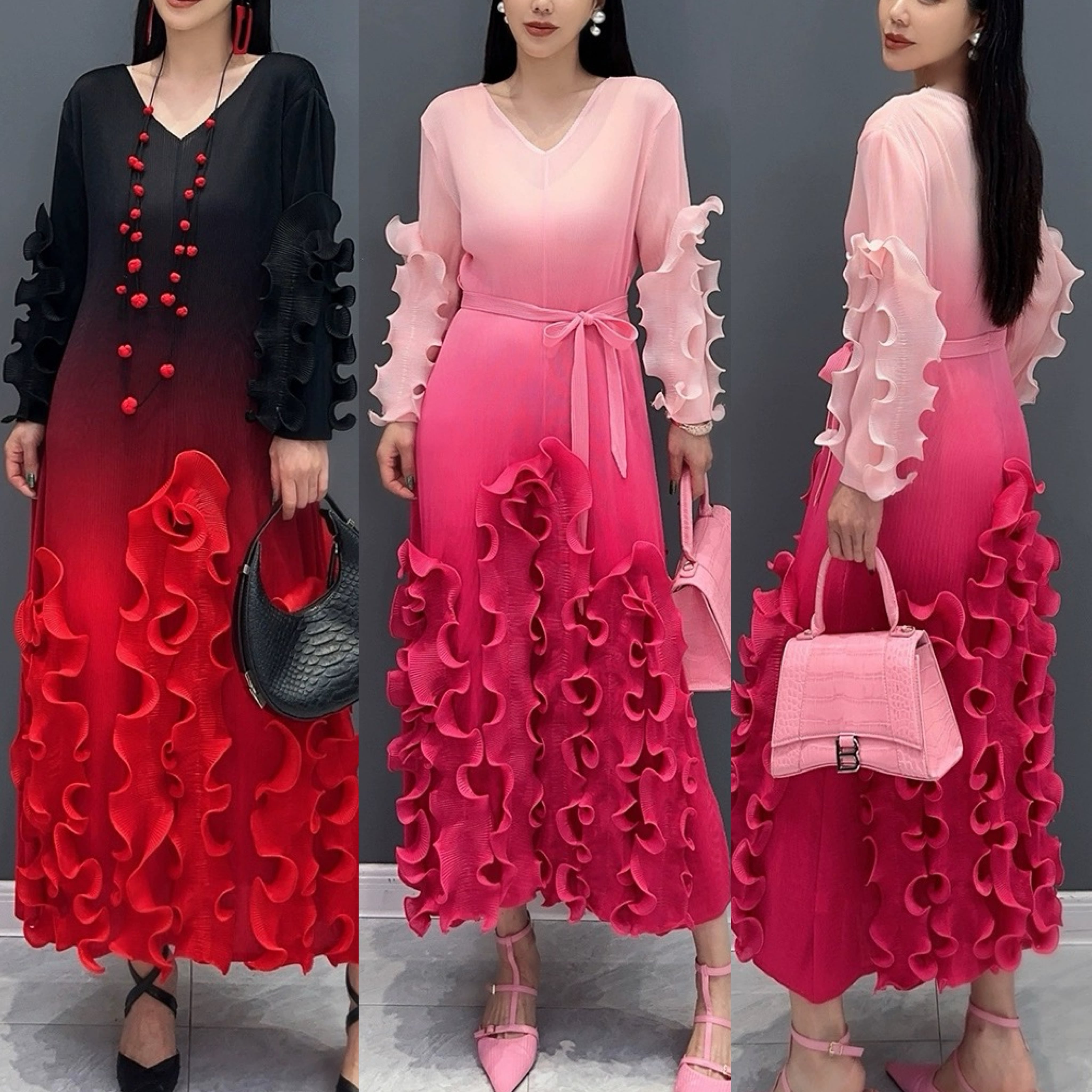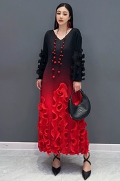 グラデーション ピンク 赤 黒 フリル ワンピース