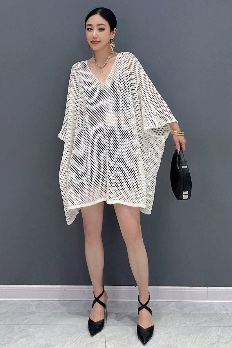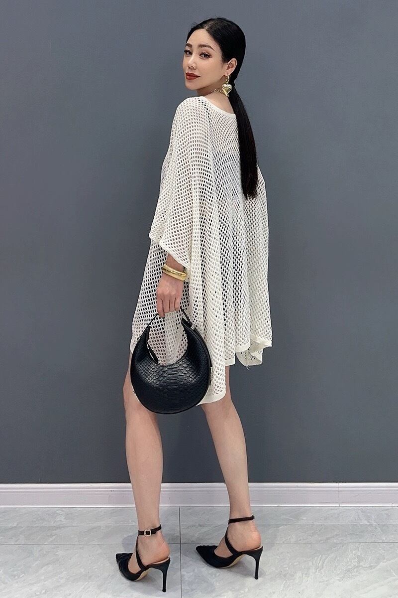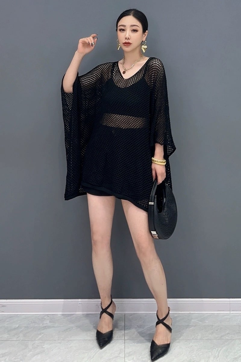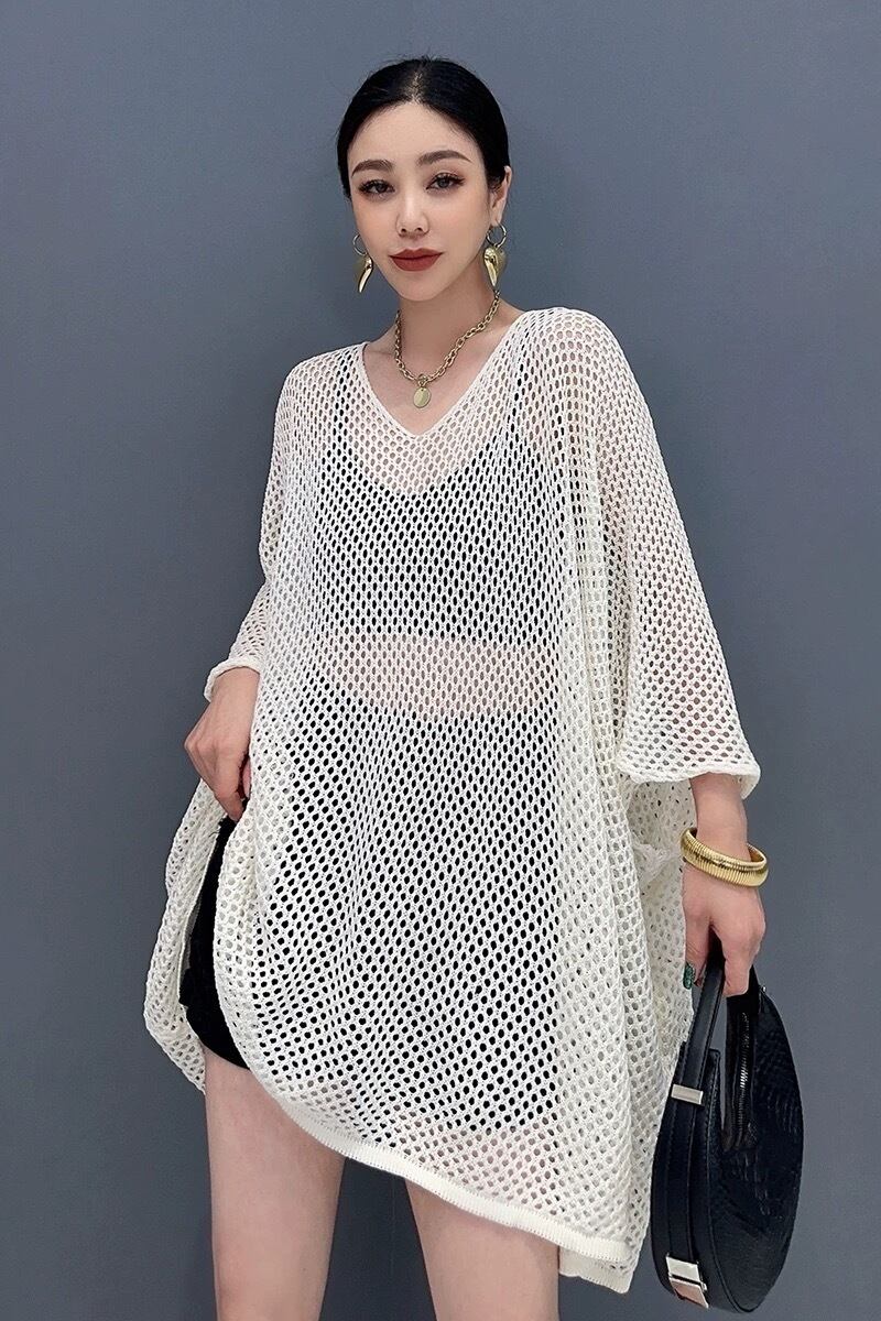 あみあみ メッシュ 黒 白 海 トップス ポンチョ カーディガン