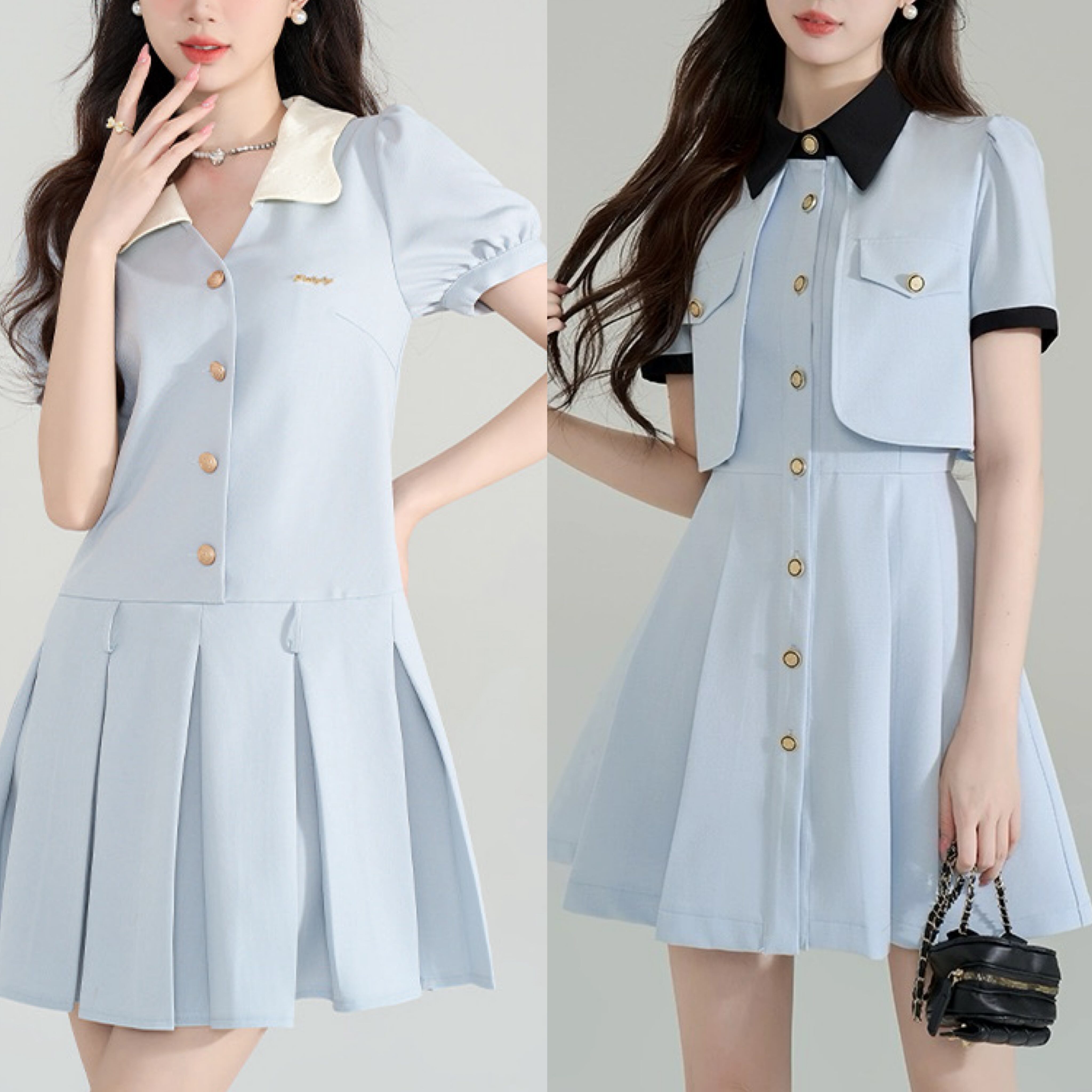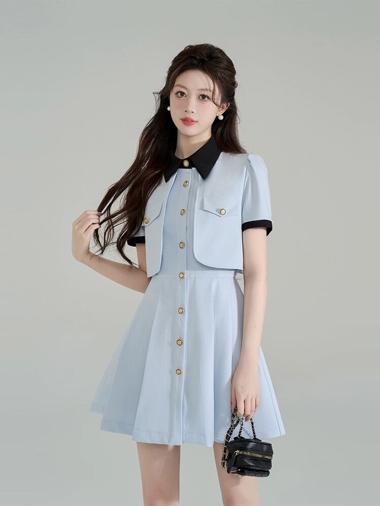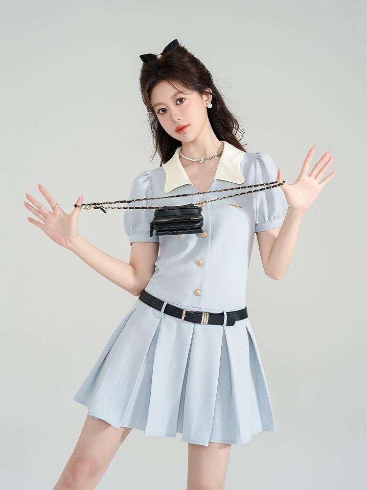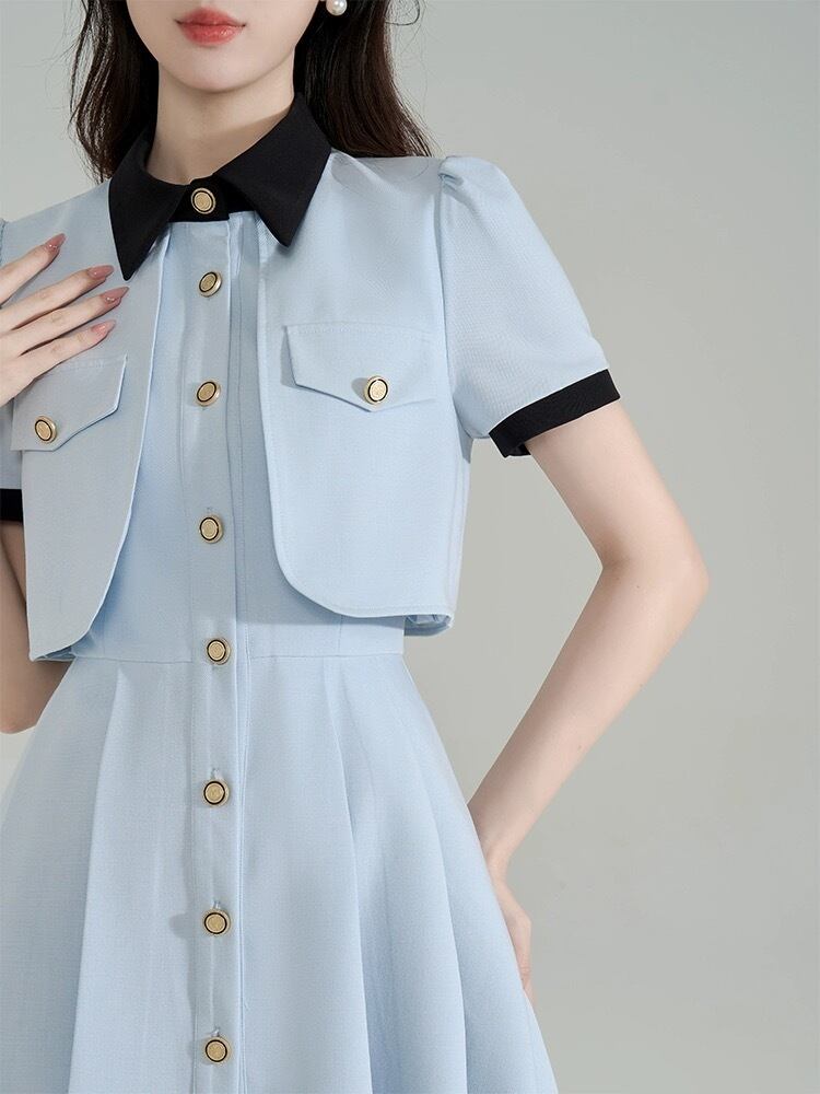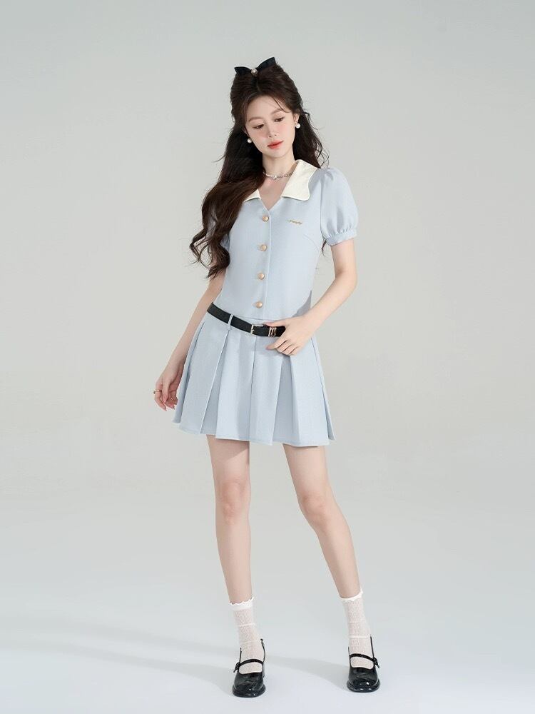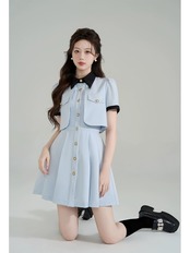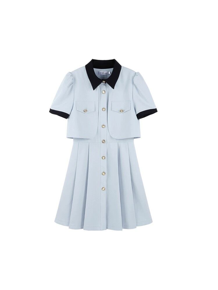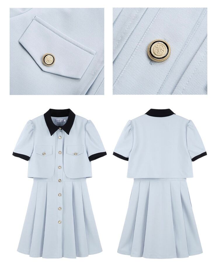 水色 ワンピース ガーリー お嬢様 スーツ プリーツ ジャケット