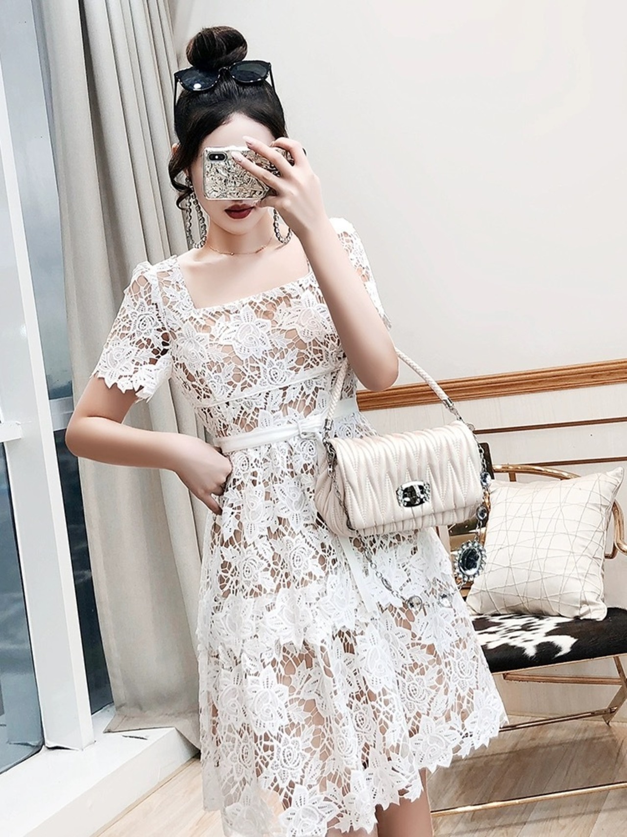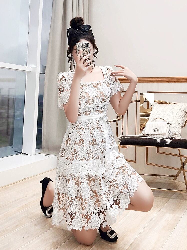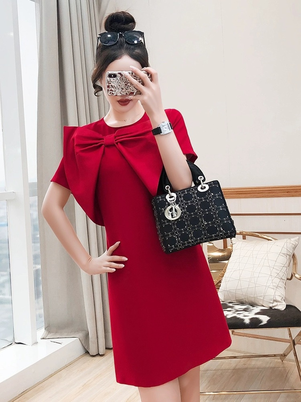 赤 リボン XL エレガント ワンピース ガーリー 可愛い 白 フラワー 花柄