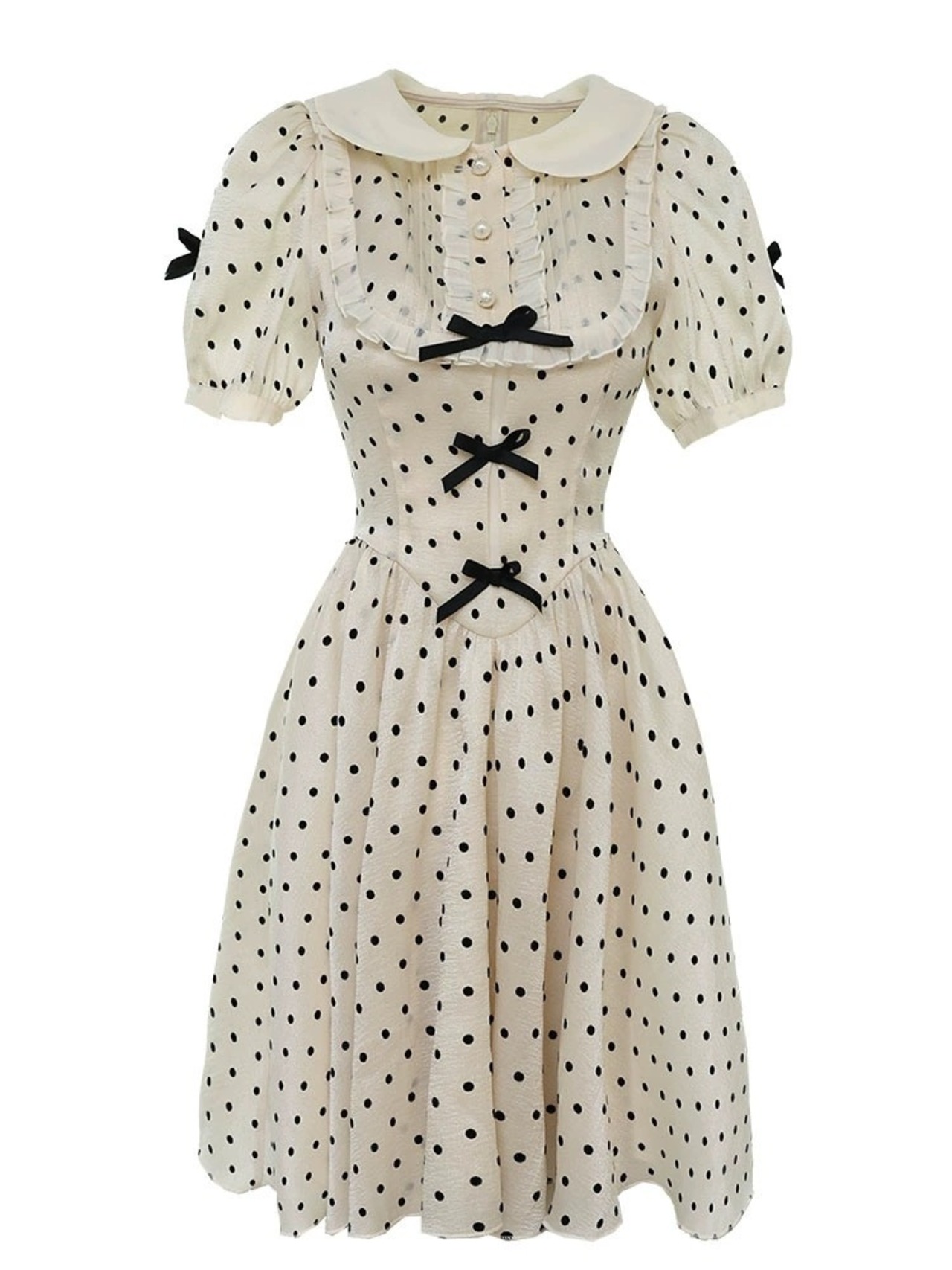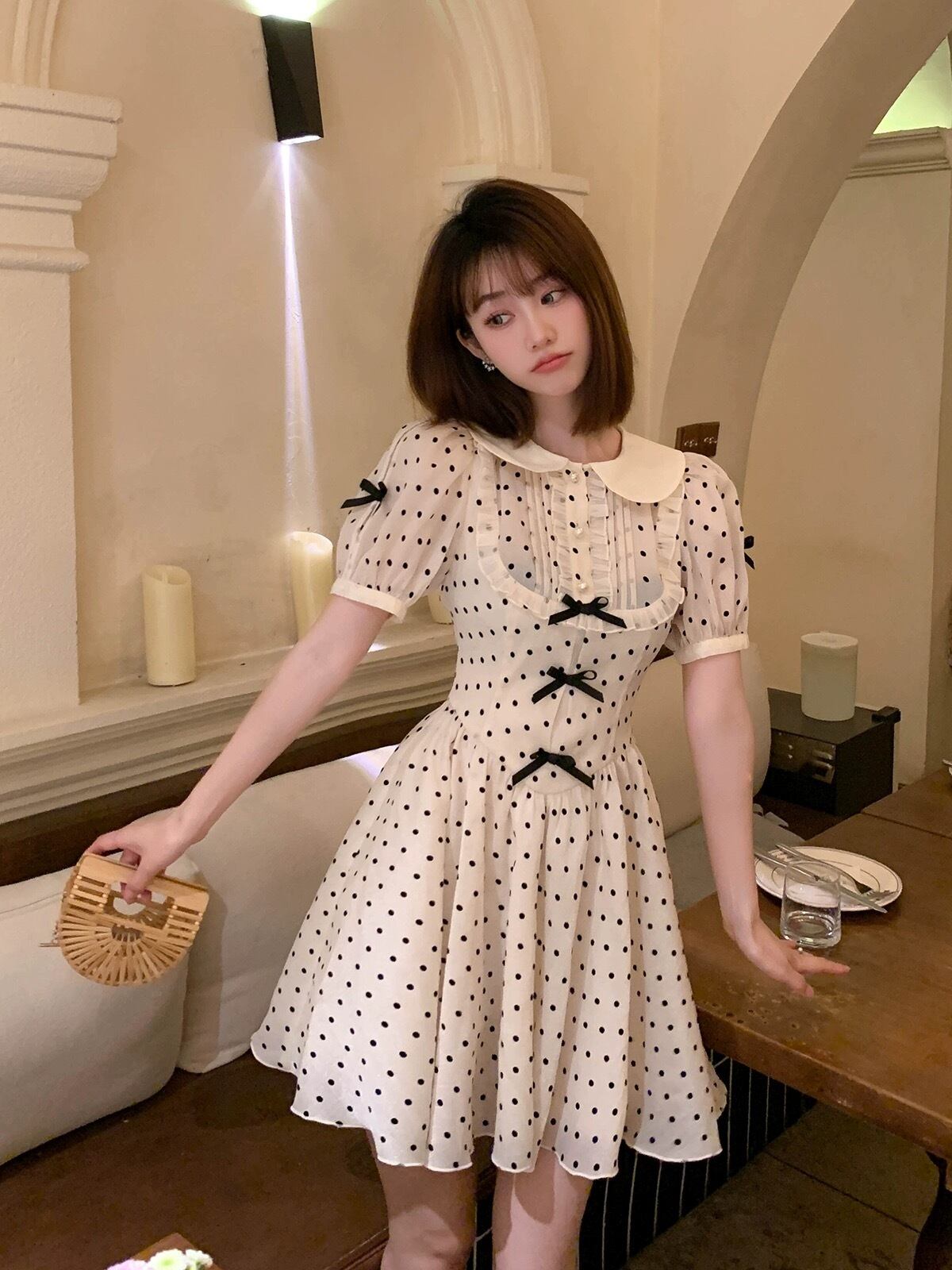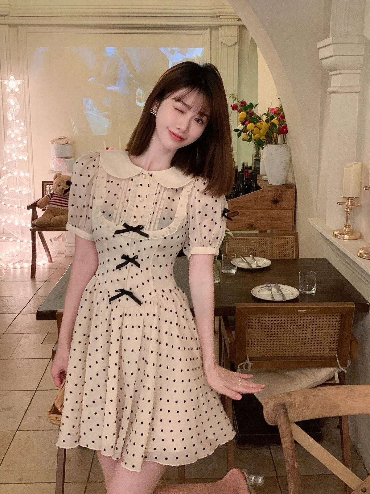 水玉 ガーリー リボン マルエリ 丸襟 お嬢様 ワンピース ブラウス