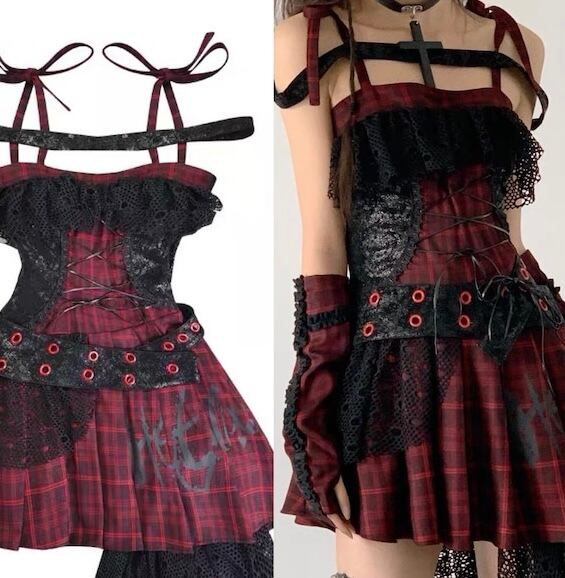 【特設ページ】赤 チェック ワンピース ガーリー 黒