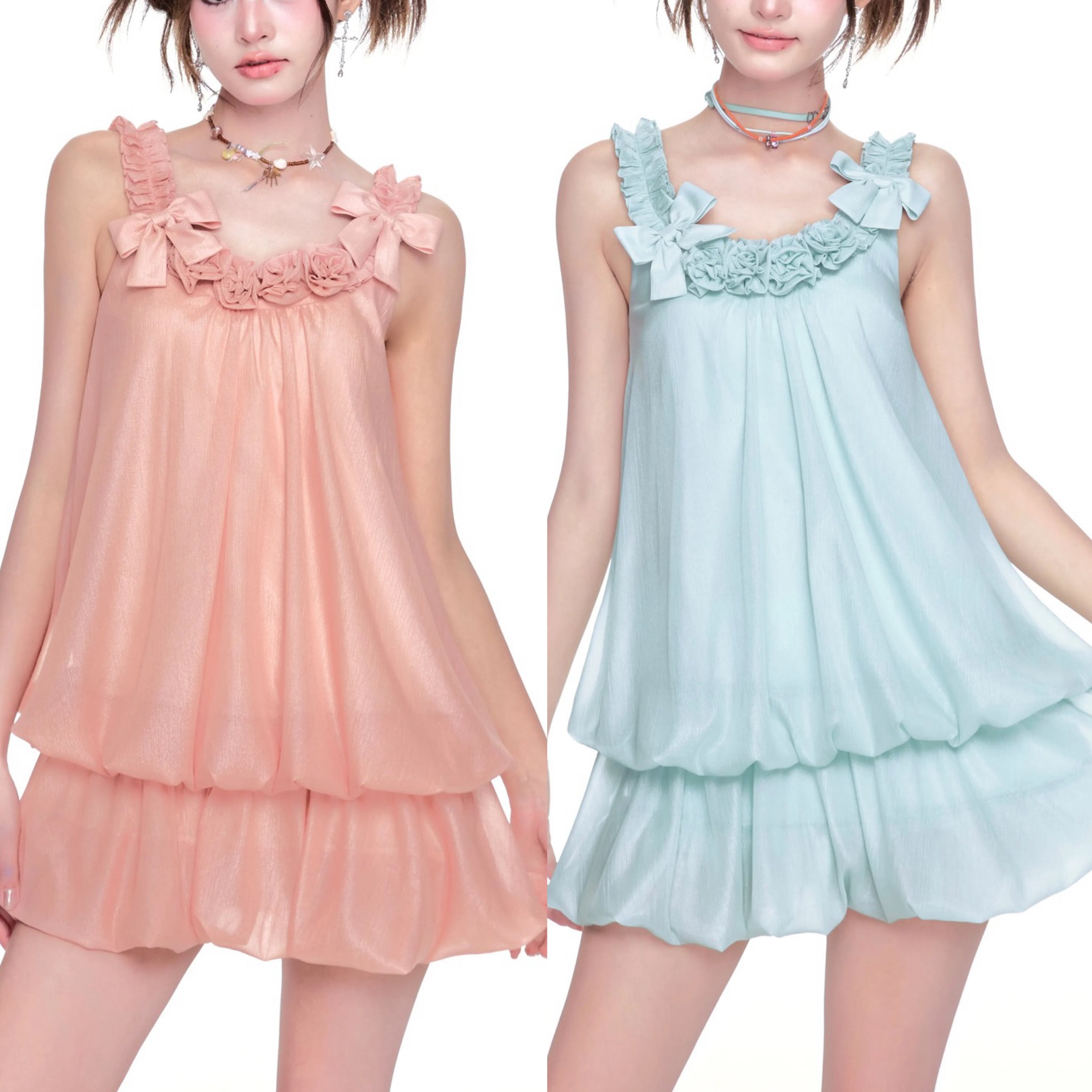 リボン ピンク チュニック ワンピース 水色 ガーリー かわいい ミニスカート