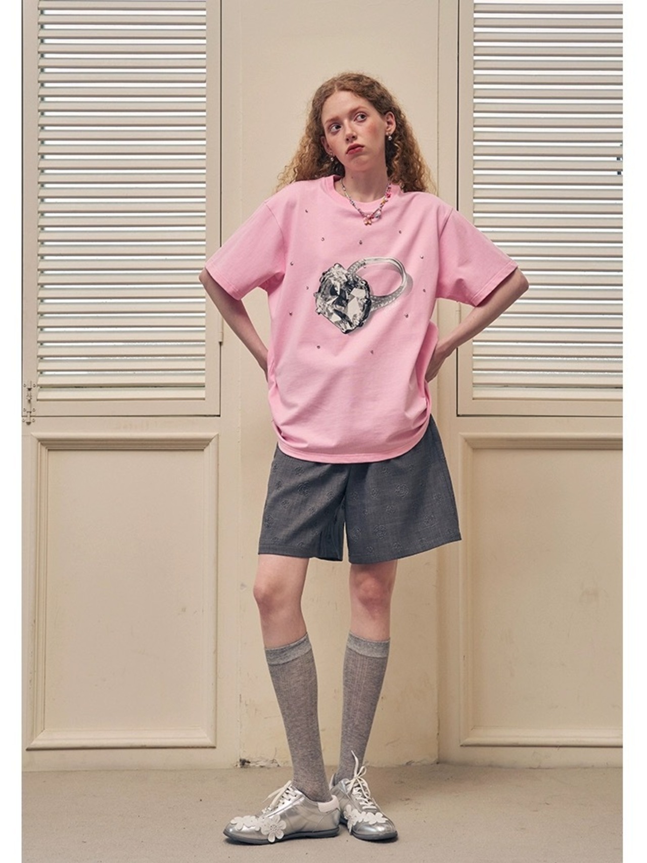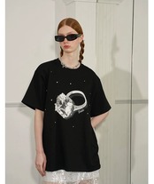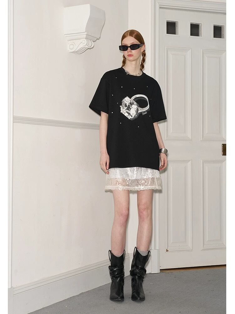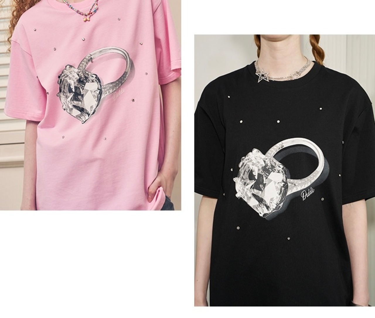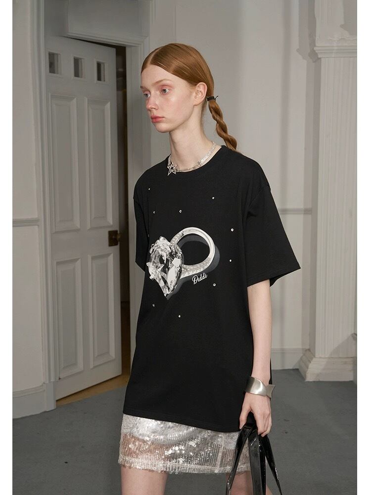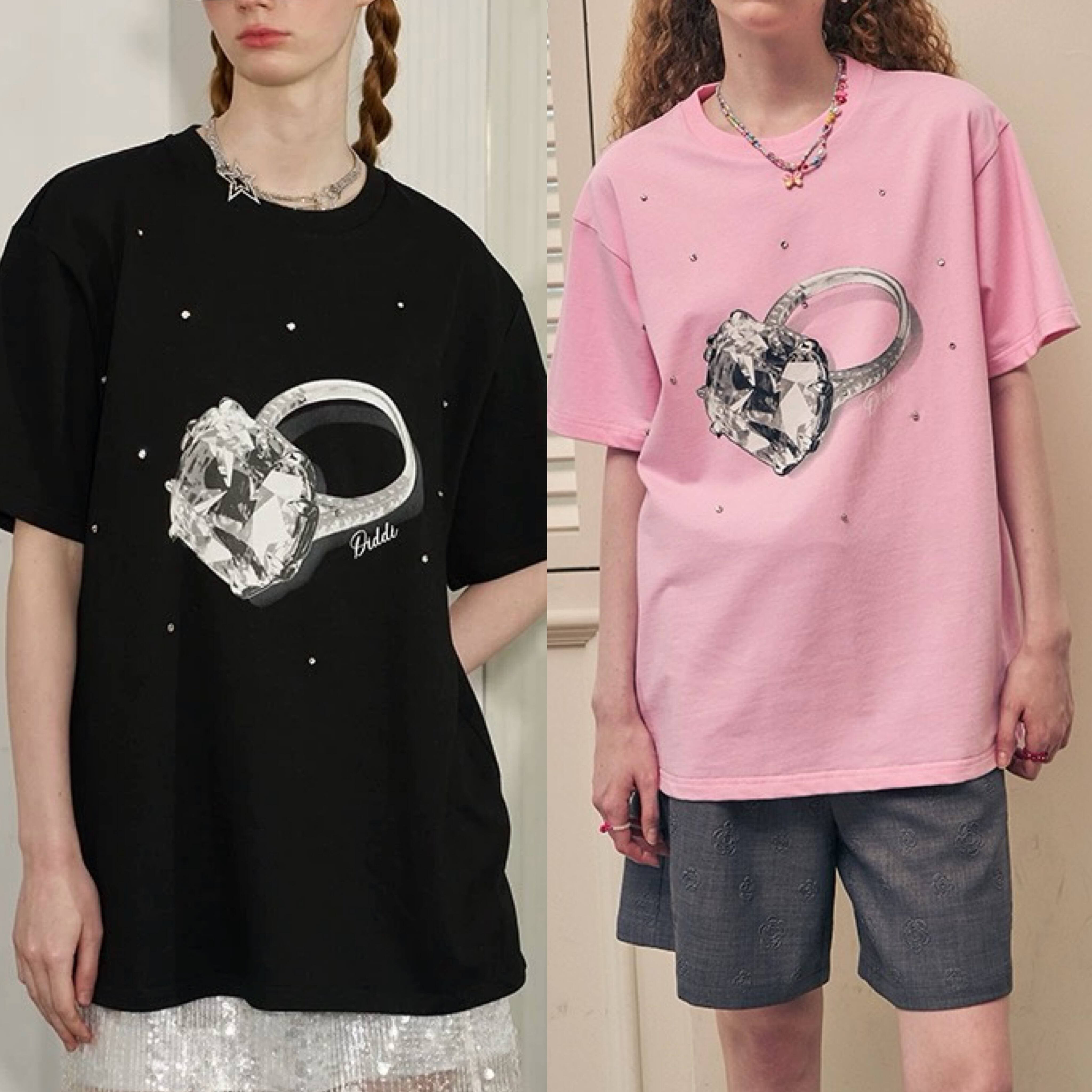 黒 ピンク ゆびわ 指輪 Tシャツ トップス カジュアル アクセサリー