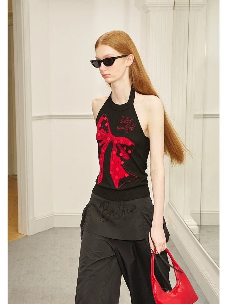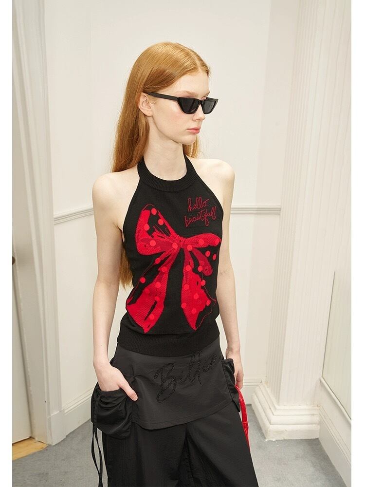 赤 黒 リボン チューブトップ キャミソール ガーリー ブラウス タンクトップ