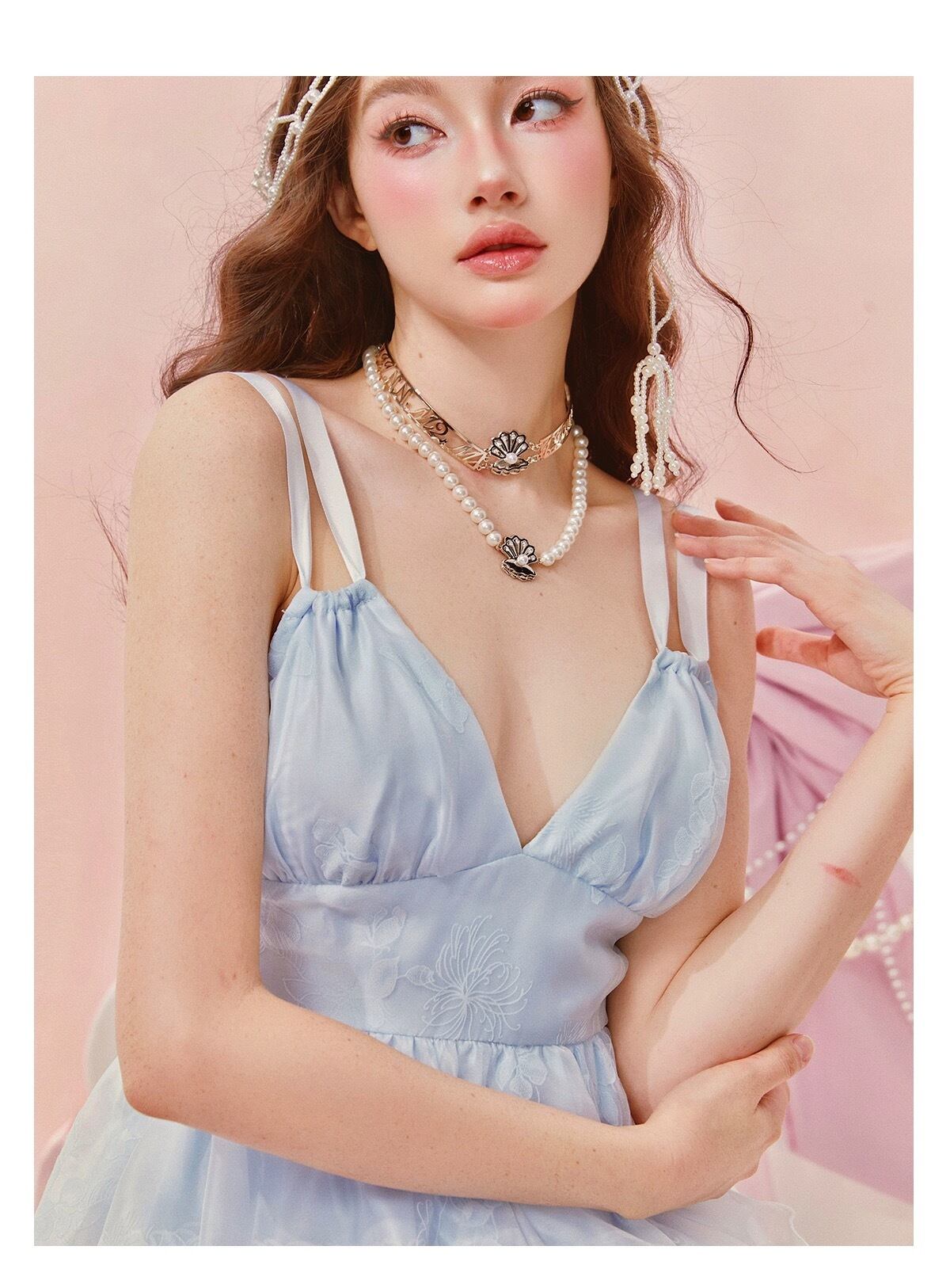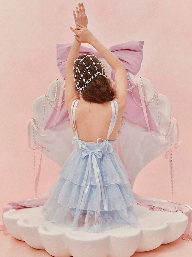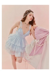 水色 ワンピース キャミソール ブラウス ガーリー 可愛い チュニック リボン