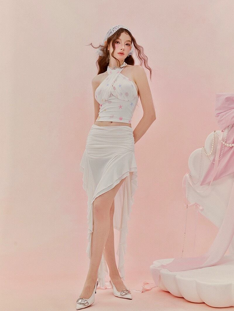キャミソール 白 ベアトップ ブラウス トップス ガーリー セクシー