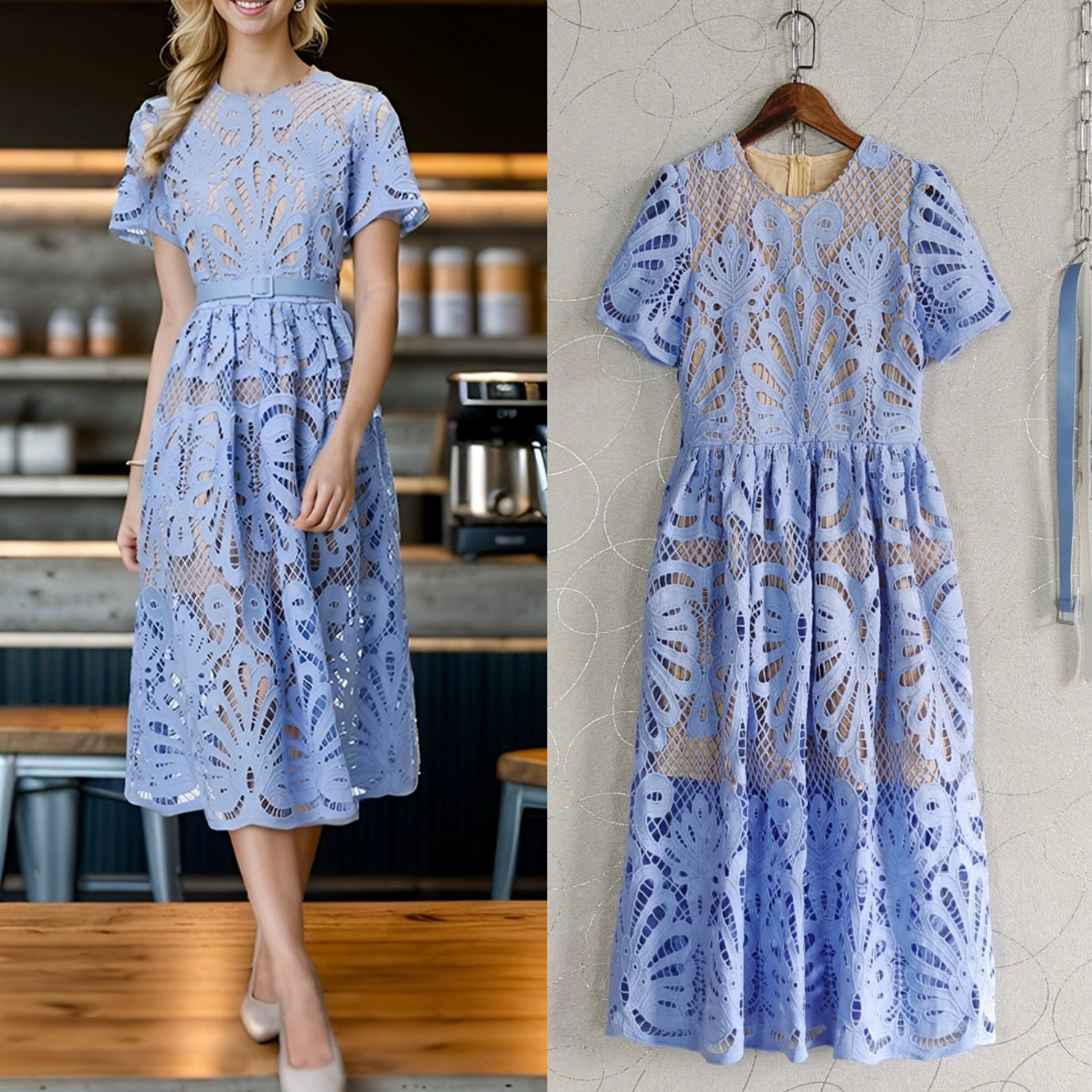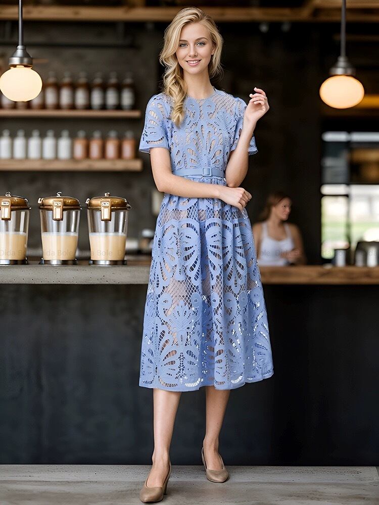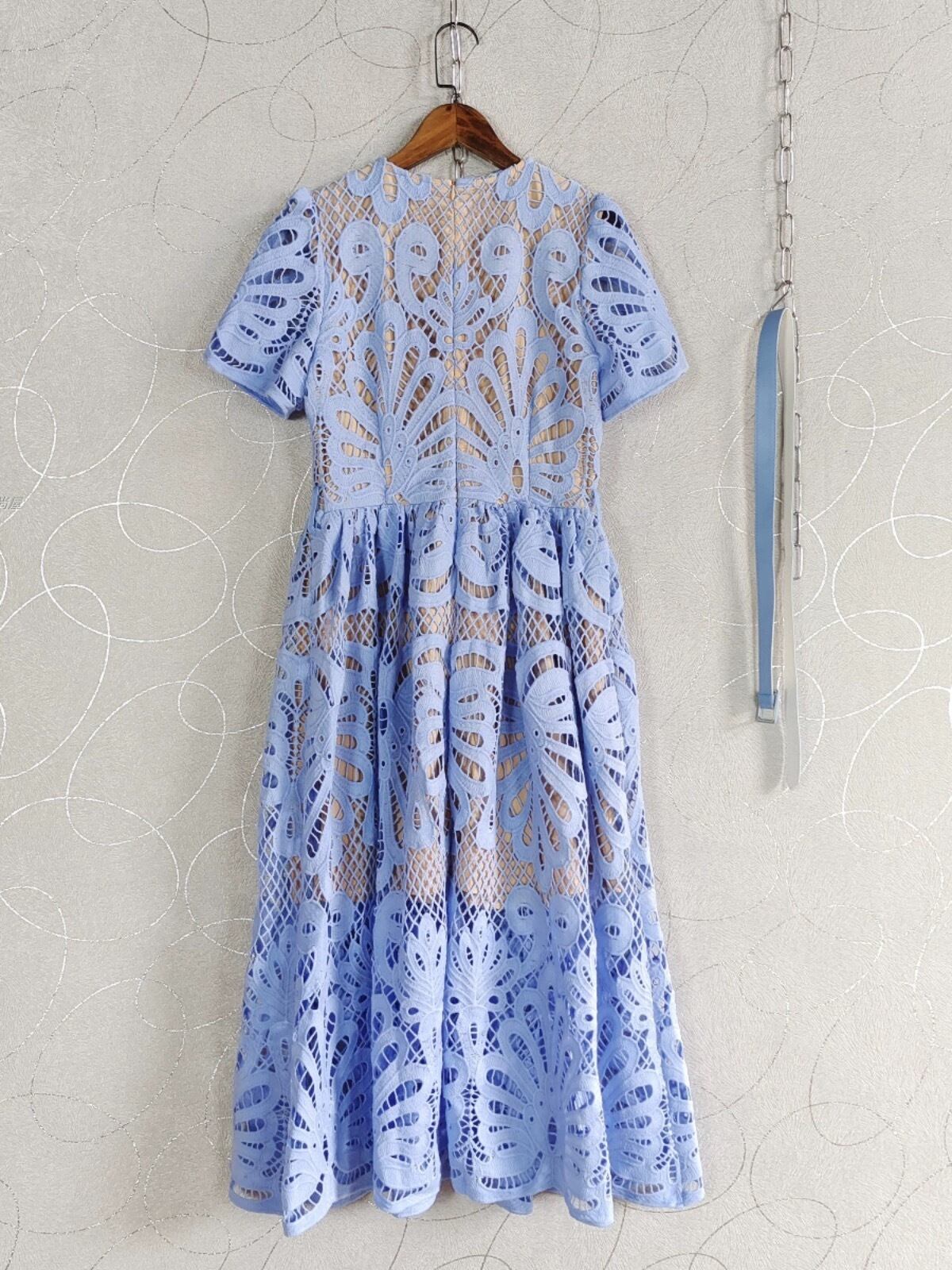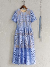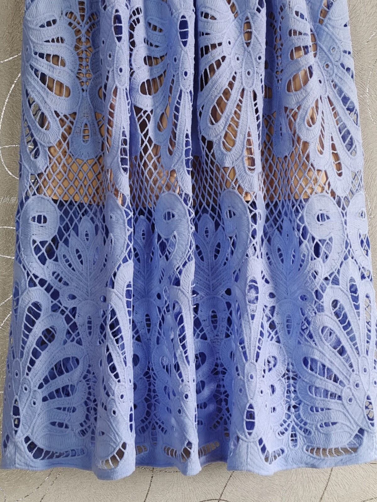 水色 フラワー レース 花柄 ワンピース XL エレガント