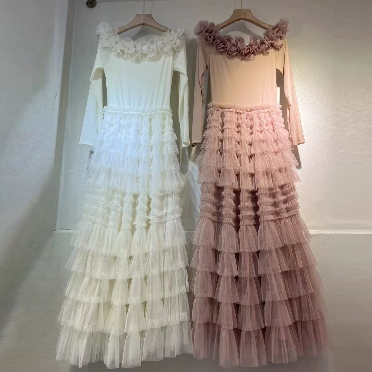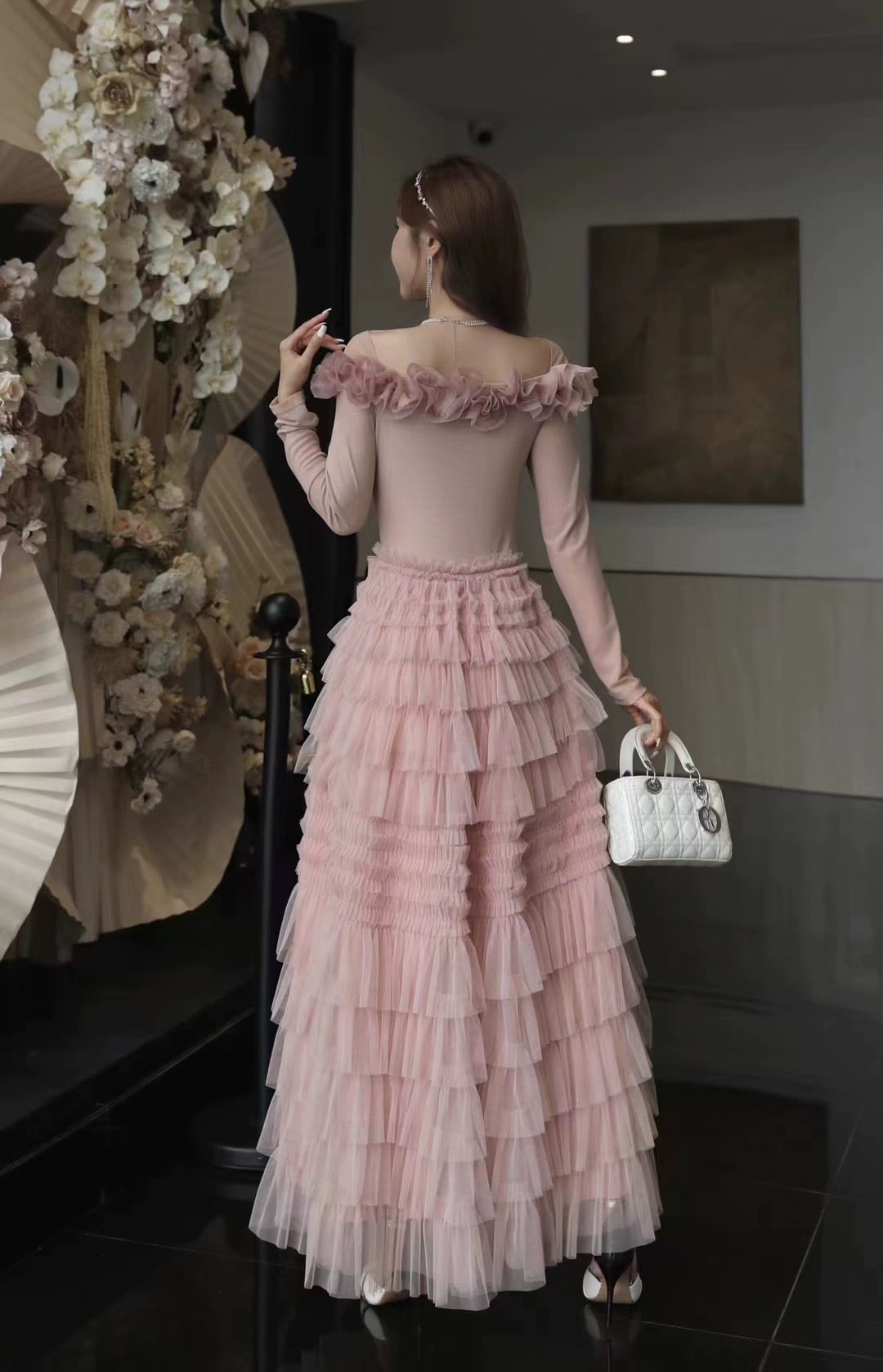 オフショルダー ピンク 白 紫 ピンク 水色 レース エレガント ロング ワンピース ガーリー XL XXL マキシ エレガント フラワー 花柄