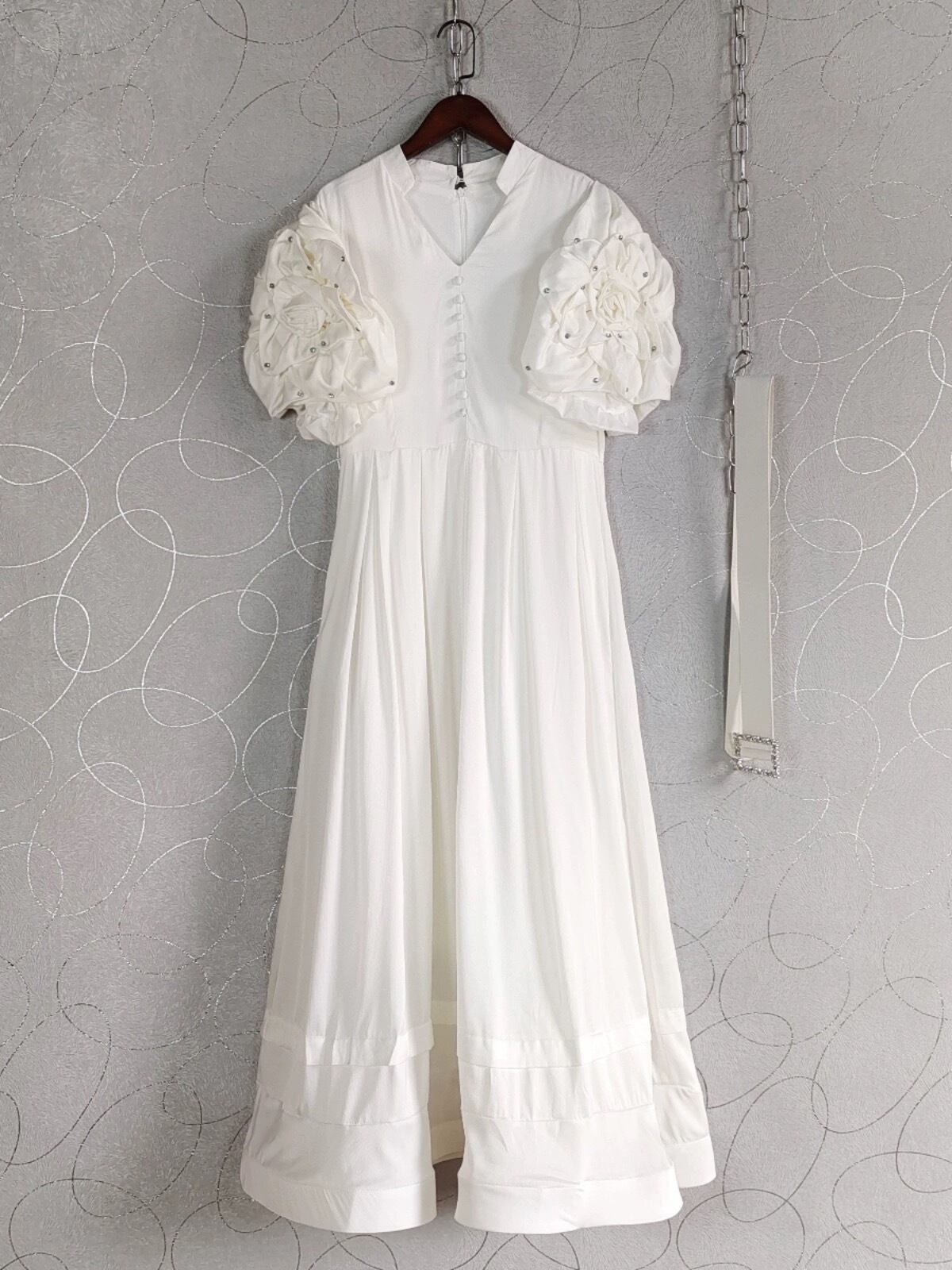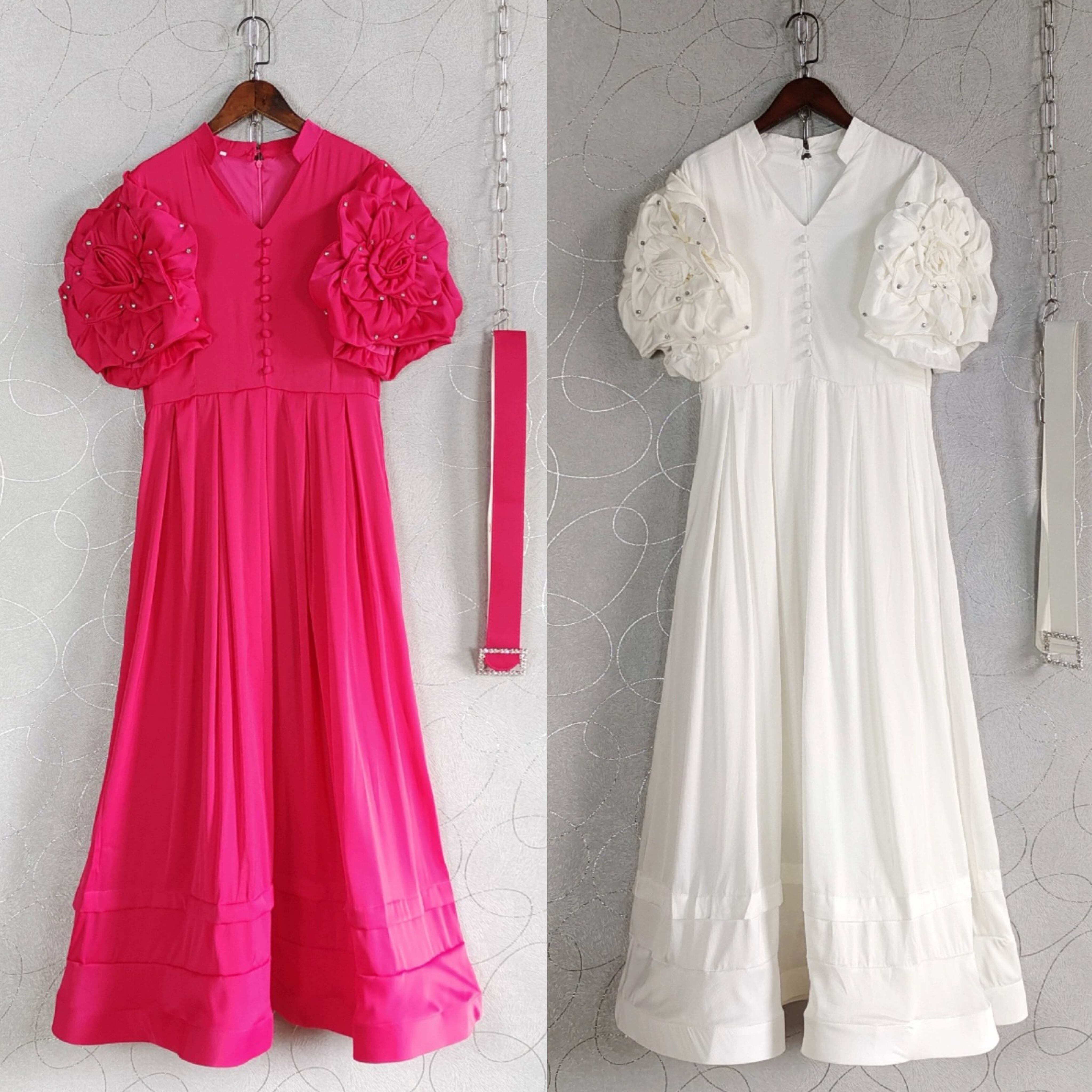 カメリア ピンク 白 花柄 袖 紫 ピンク 水色 レース エレガント ロング ワンピース ガーリー XL XXL マキシ エレガント