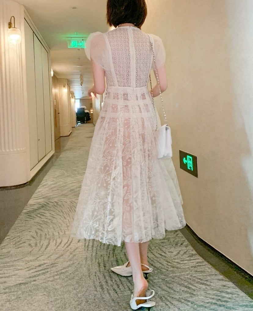 白 花柄 ワンピース フラワー 紫 ピンク 水色 レース エレガント ロング ワンピース ガーリー XL XXL マキシ エレガント