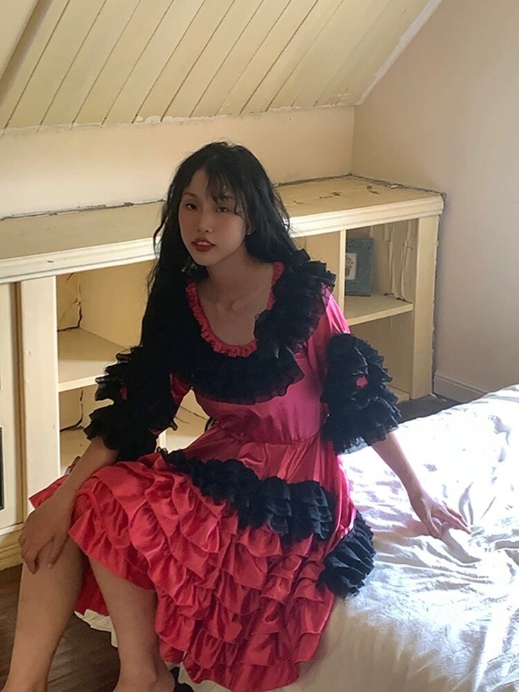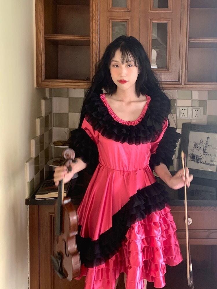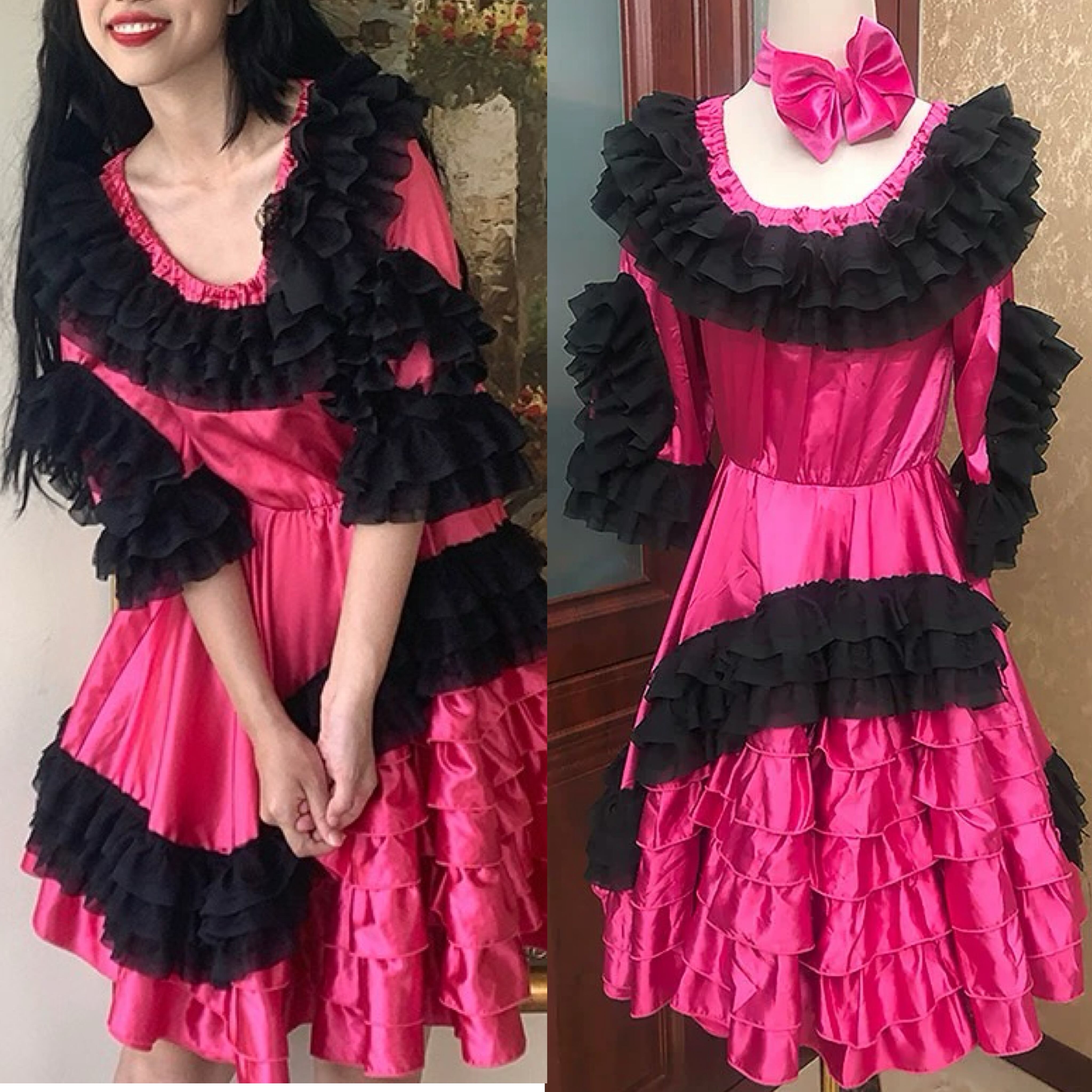 パーティー ダンス ドレス ピンク クラシック ガーリー レトロ 丸襟 ブラウス ワンピース 原宿 80年代 アイドル 古着 昭和 ブラウス ワンピース