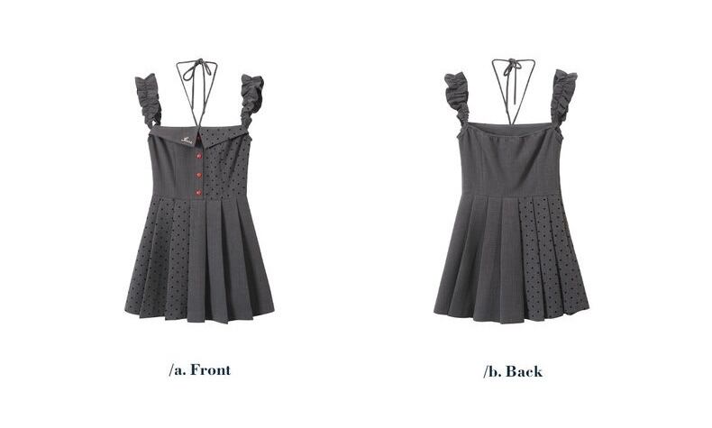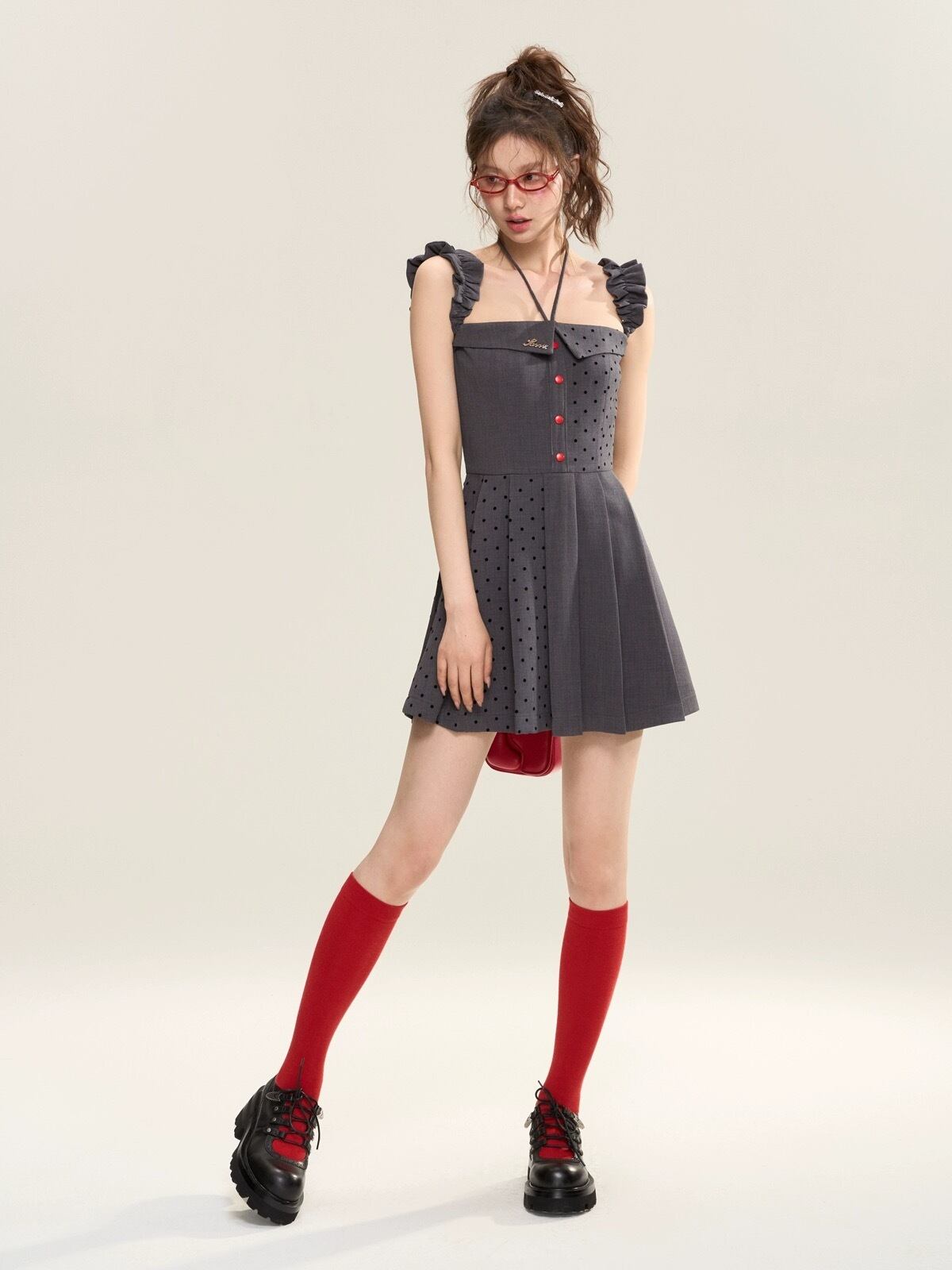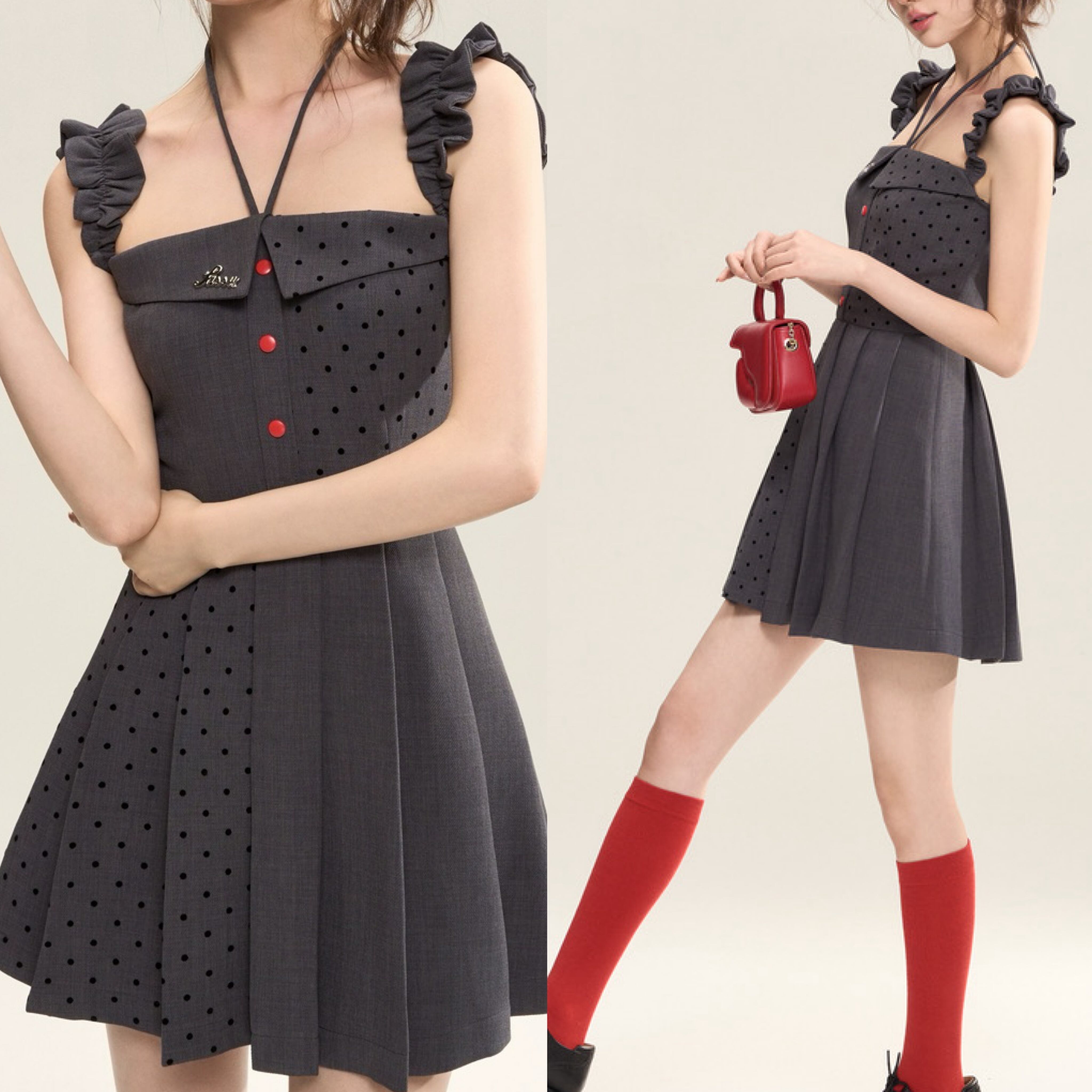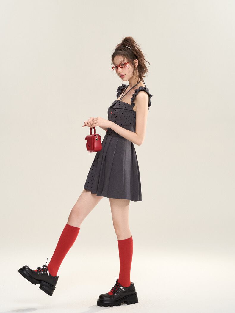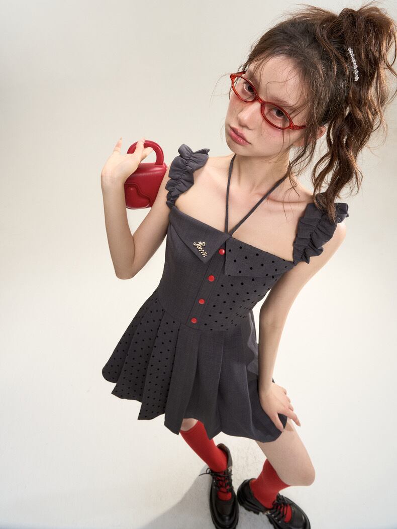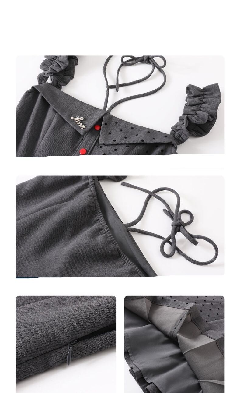 グレー ガーリー 水玉 ドット ワンピース 可愛い 原宿 スクール