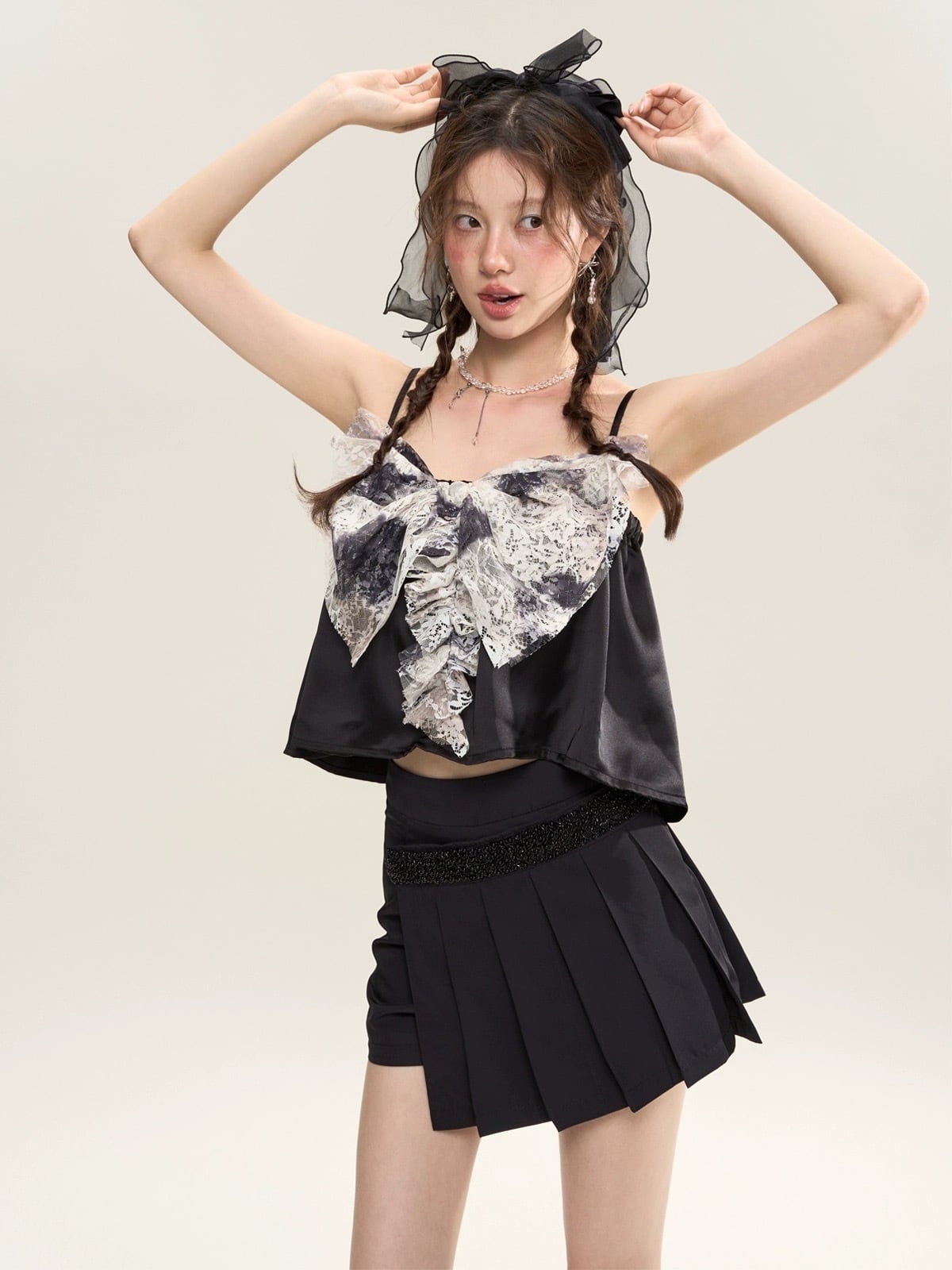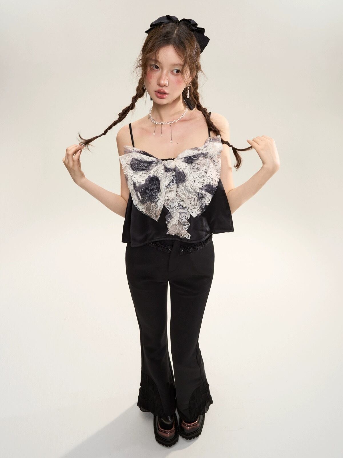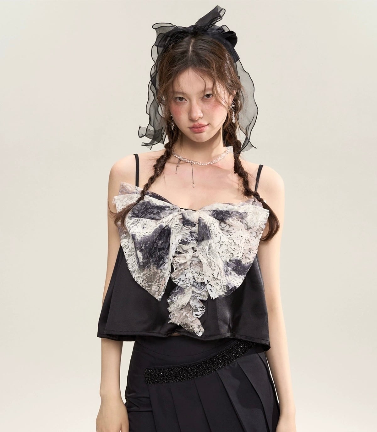 グレー リボン キャミソール 可愛い ブラウス