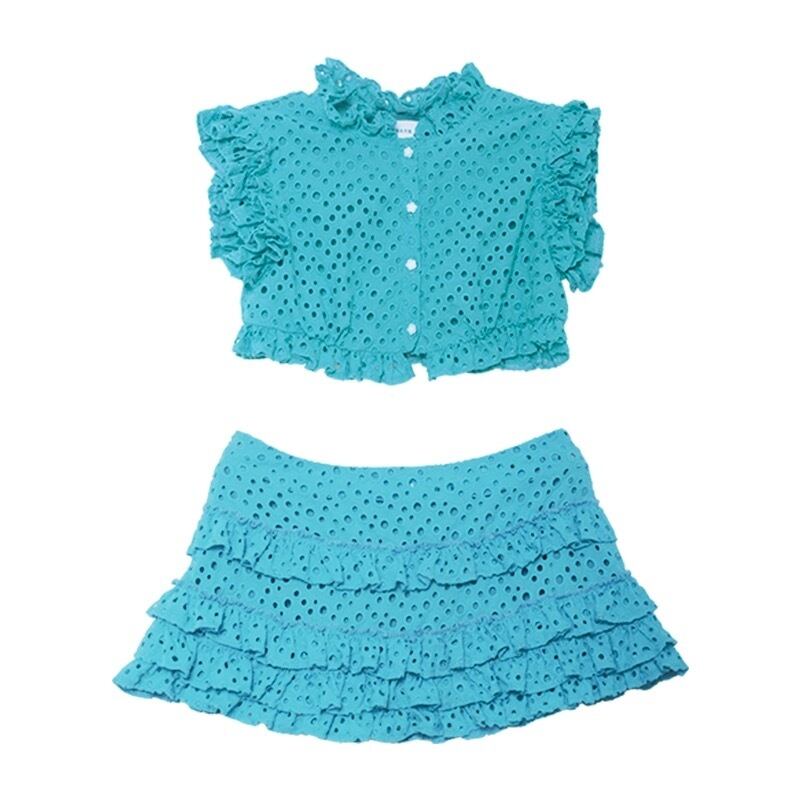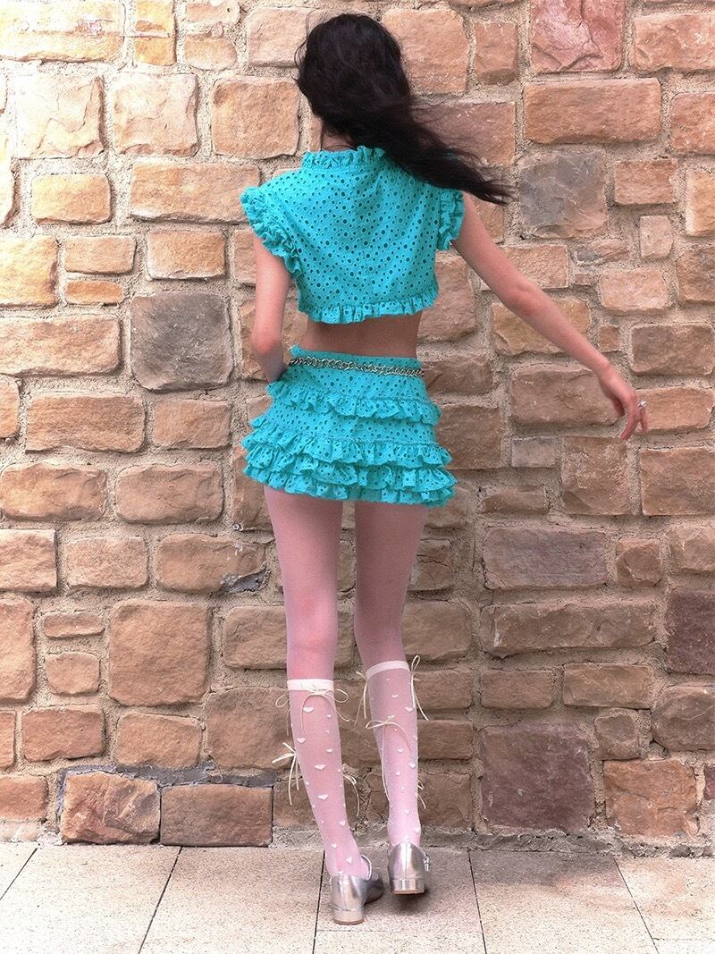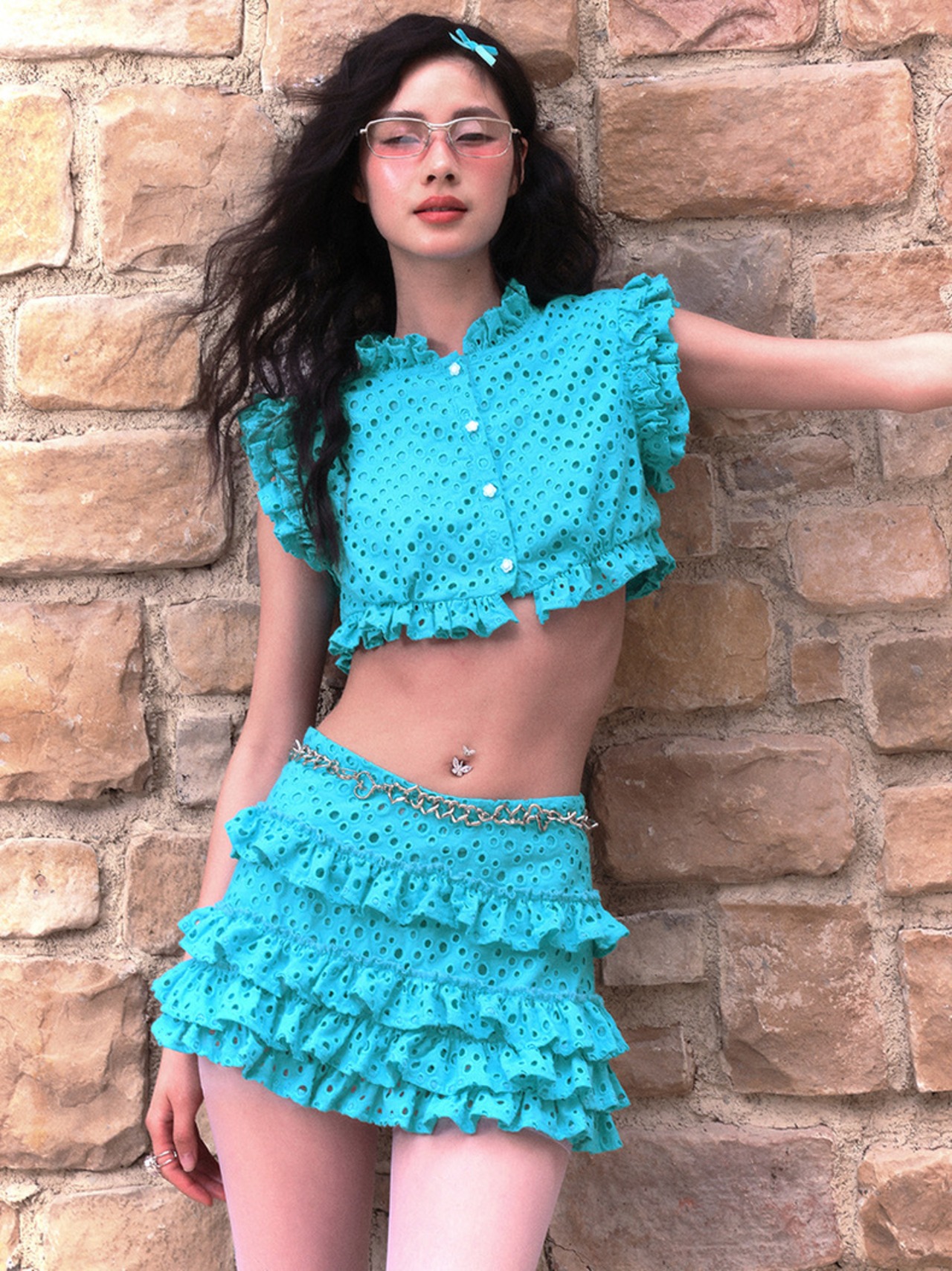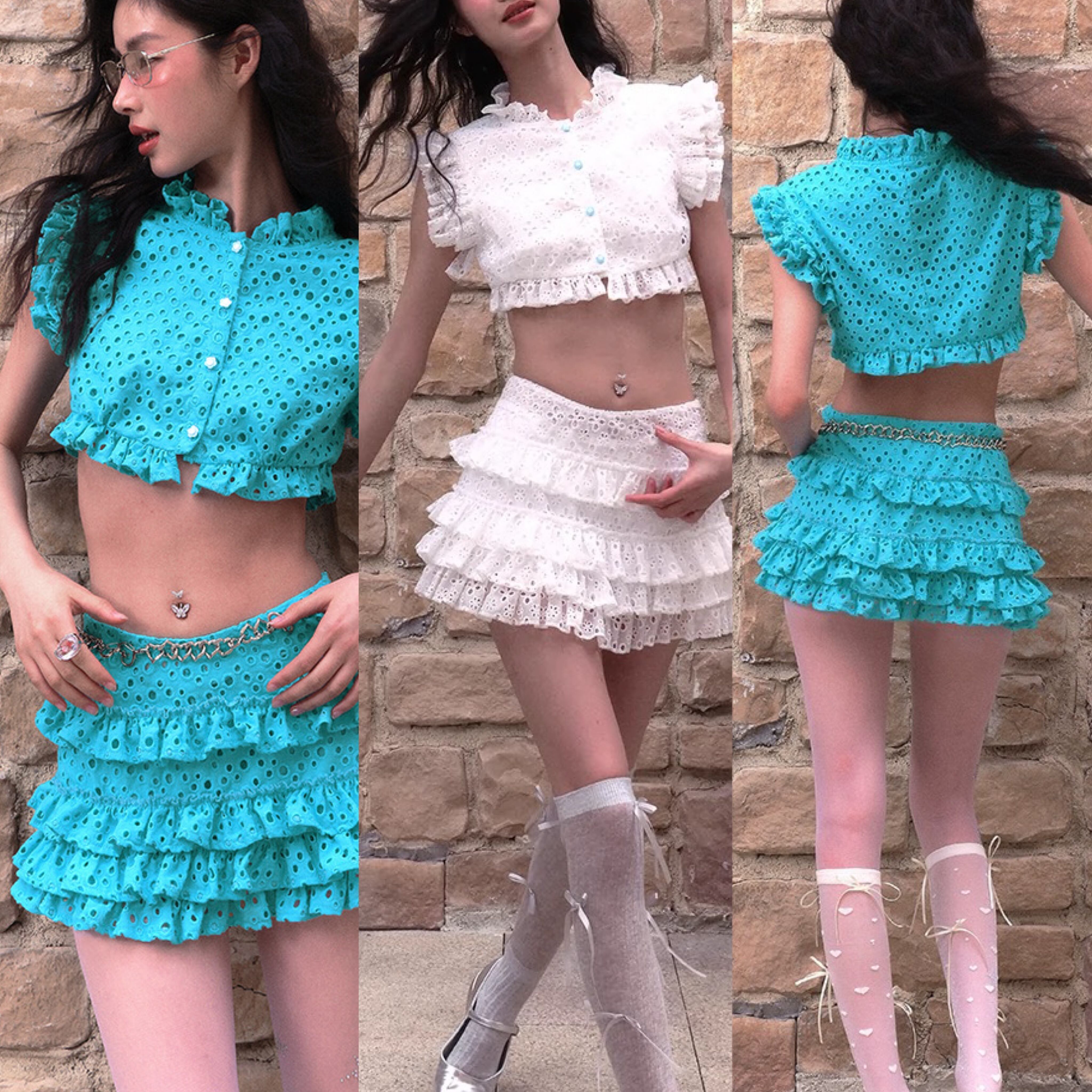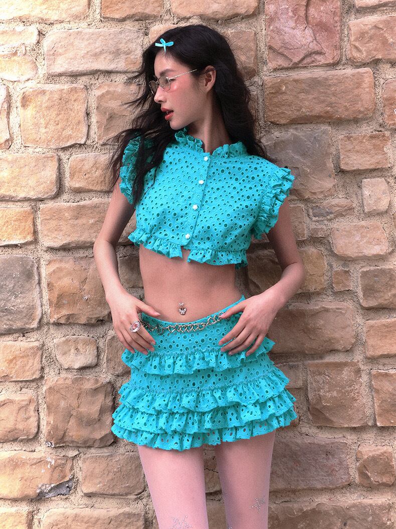 ブラウス 水色 白 トップス ミニスカート ボトムス セットアップ