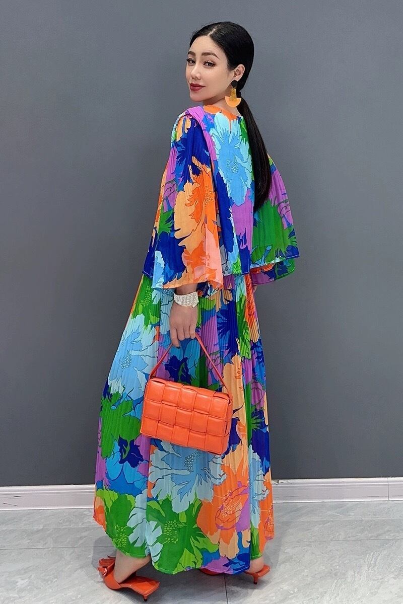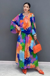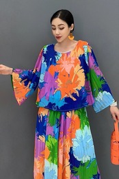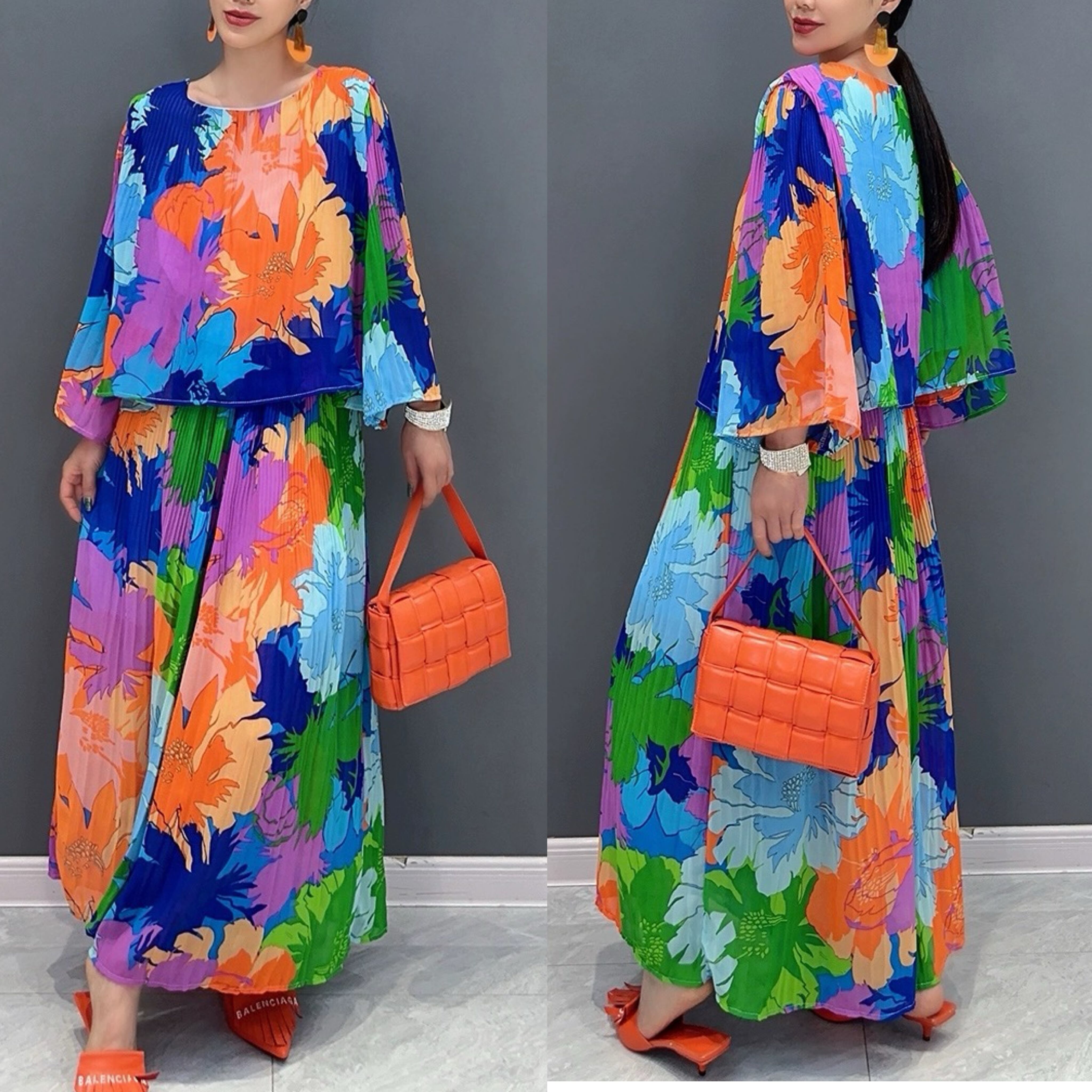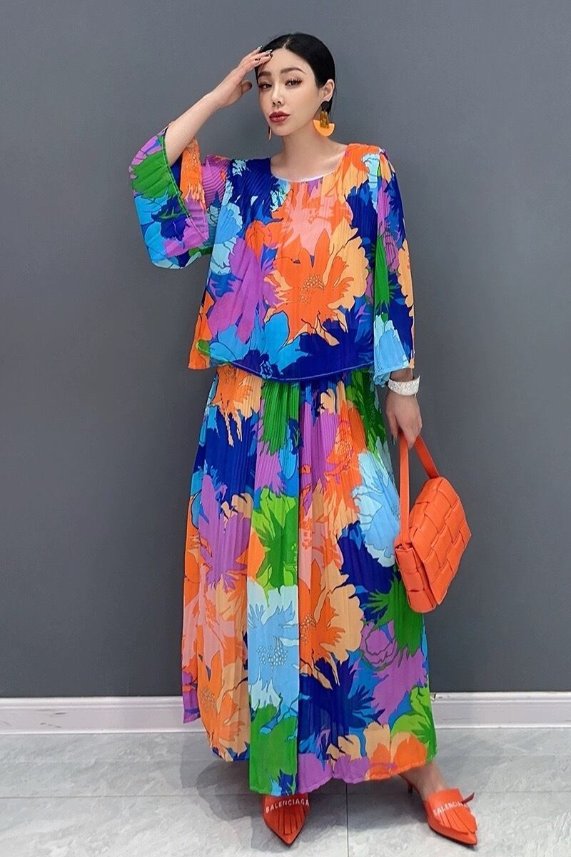 【セットアップ】オレンジ カラフル ブラウス スカート XL