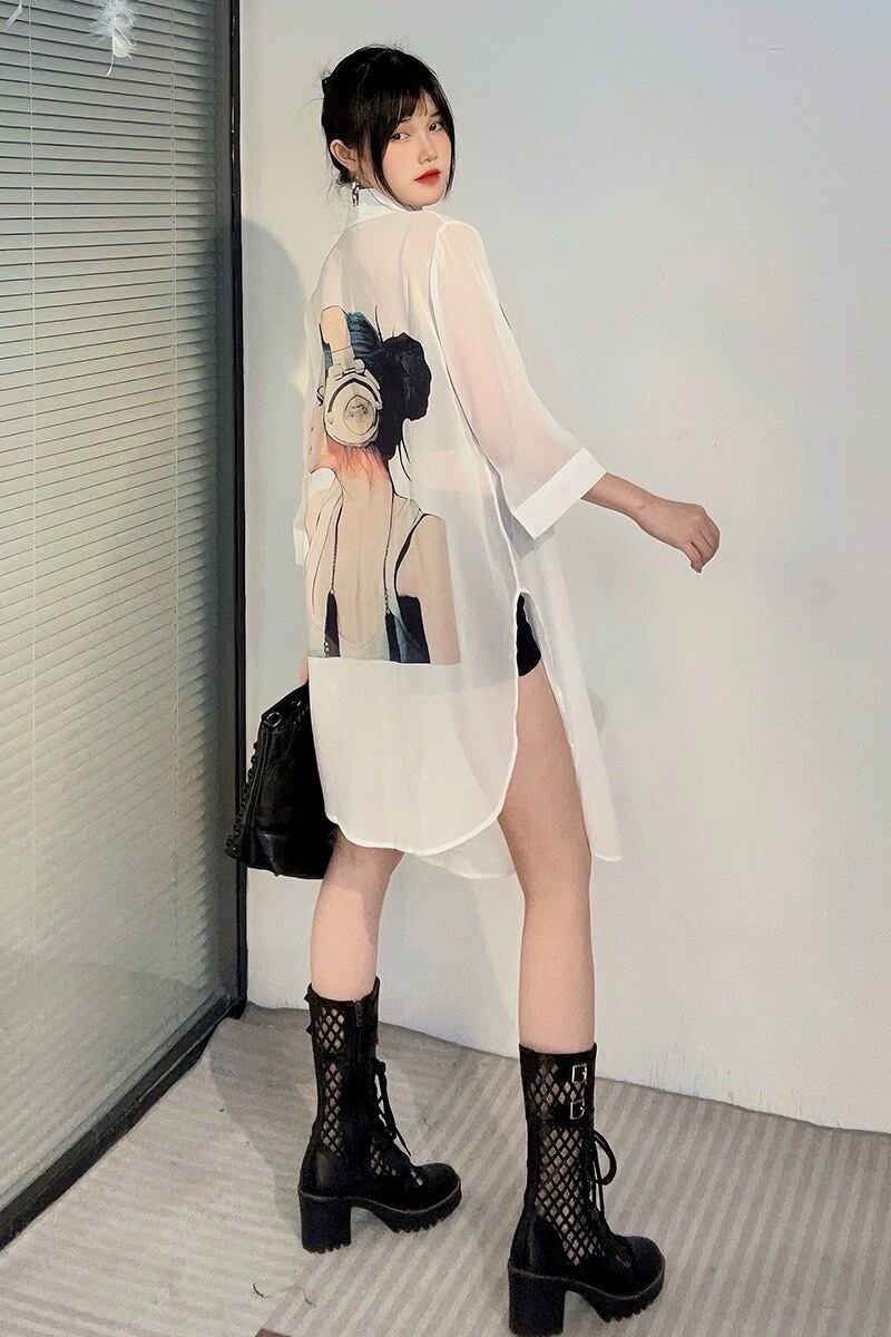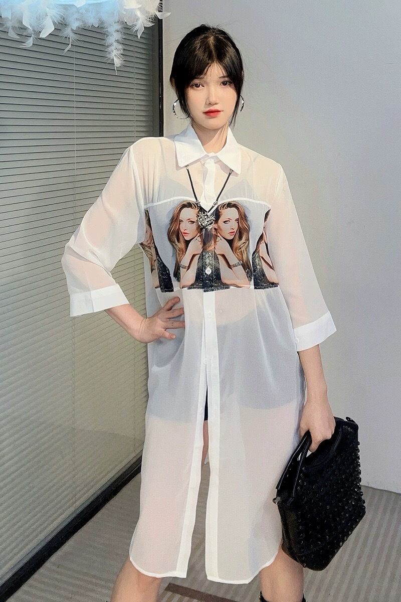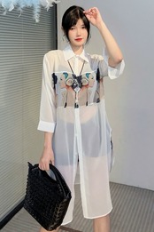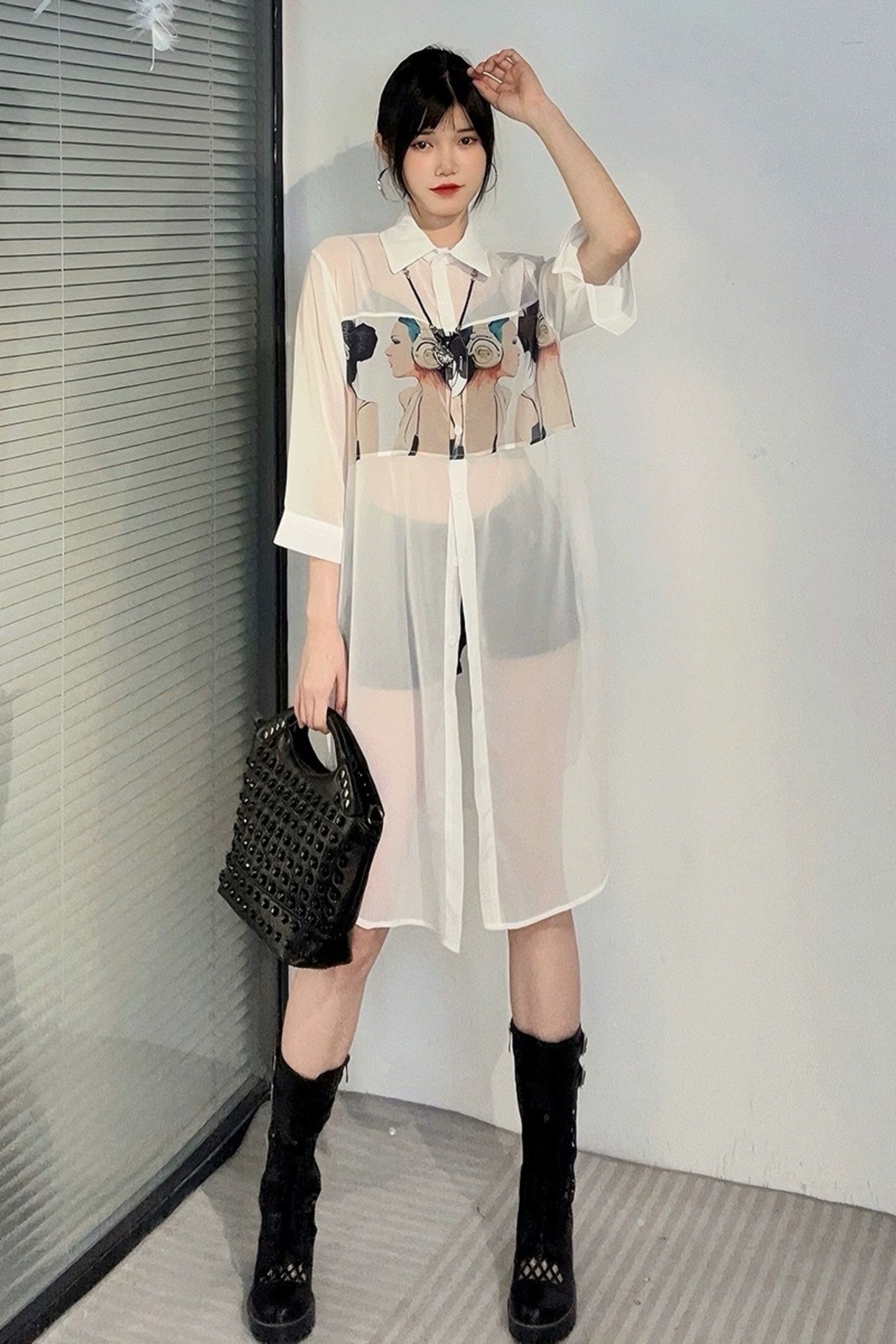 ブラウス シースルー アメリカン ロングブラウス ロングカーディガン ジャケット ワンピース カジュアル