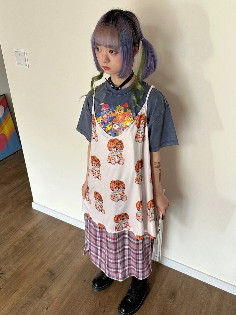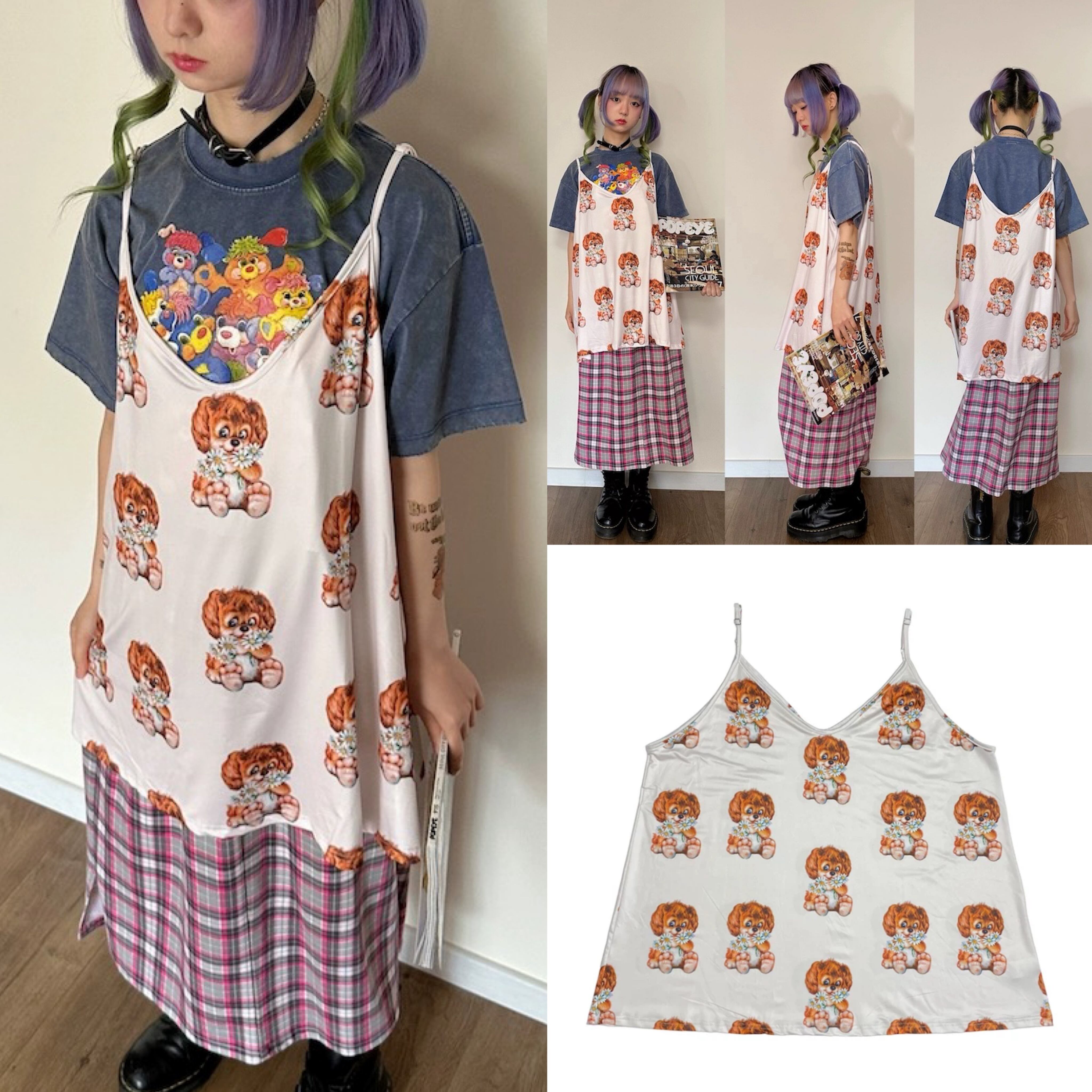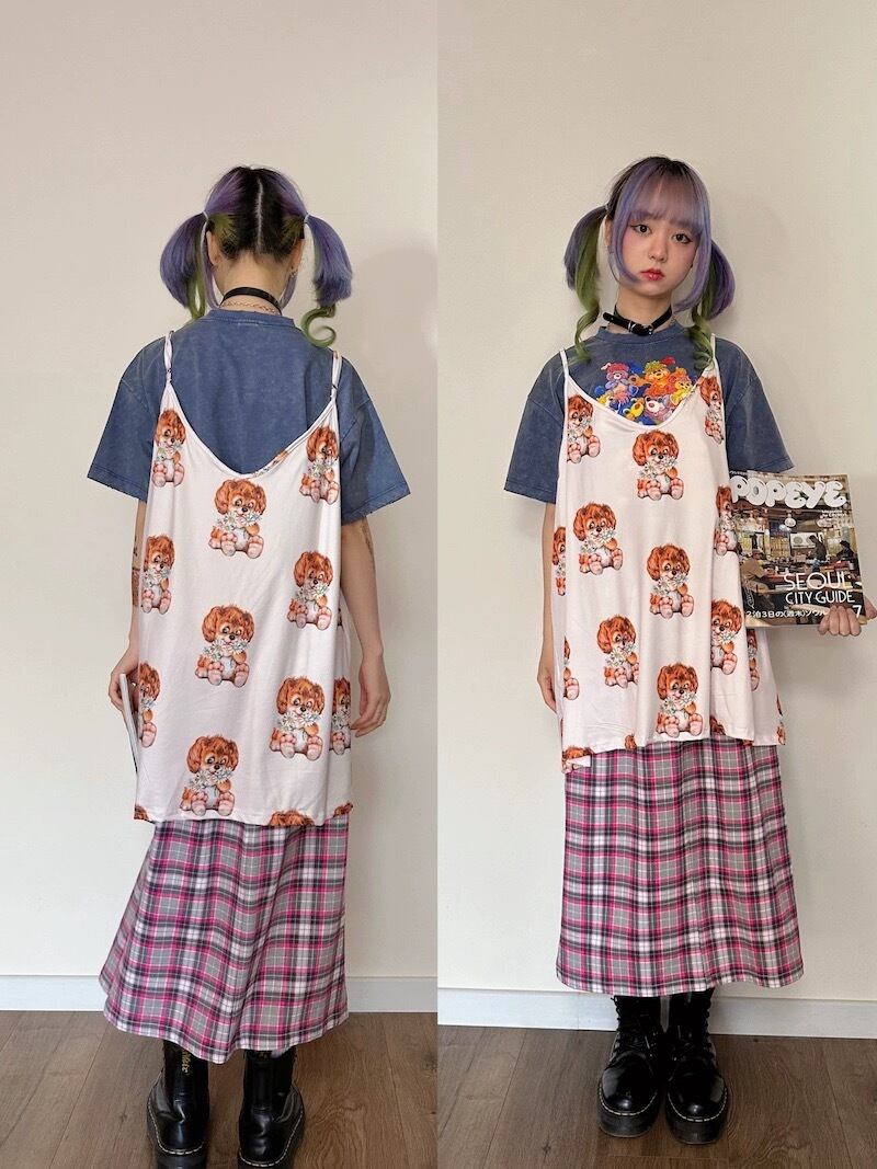 キャミソール 犬 古着風 原宿 ワンピース ブラウス トップス レトロ