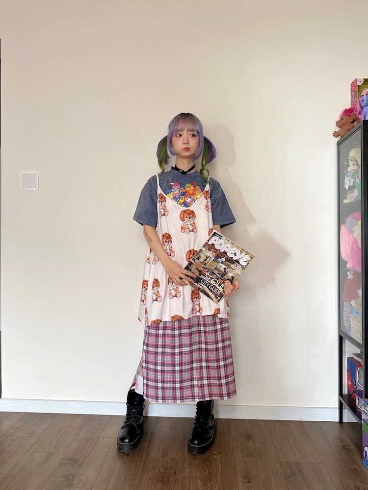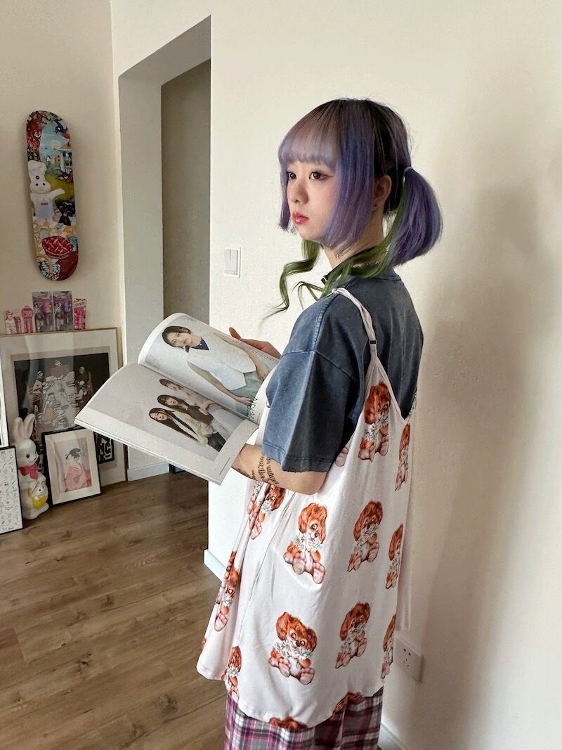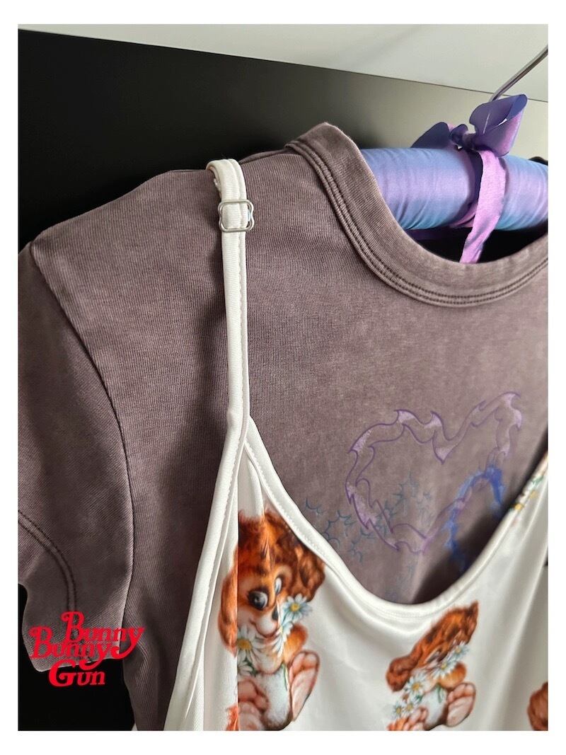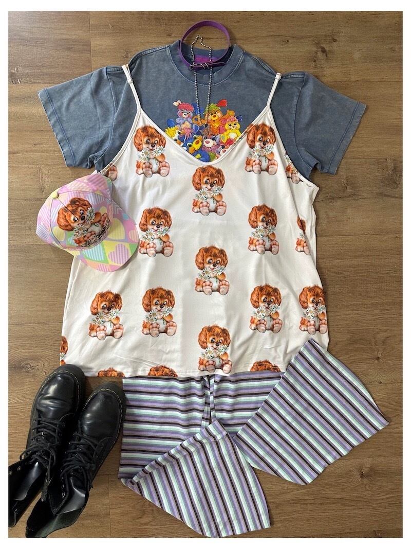 キャミソール 犬 古着風 原宿 ワンピース ブラウス トップス レトロ