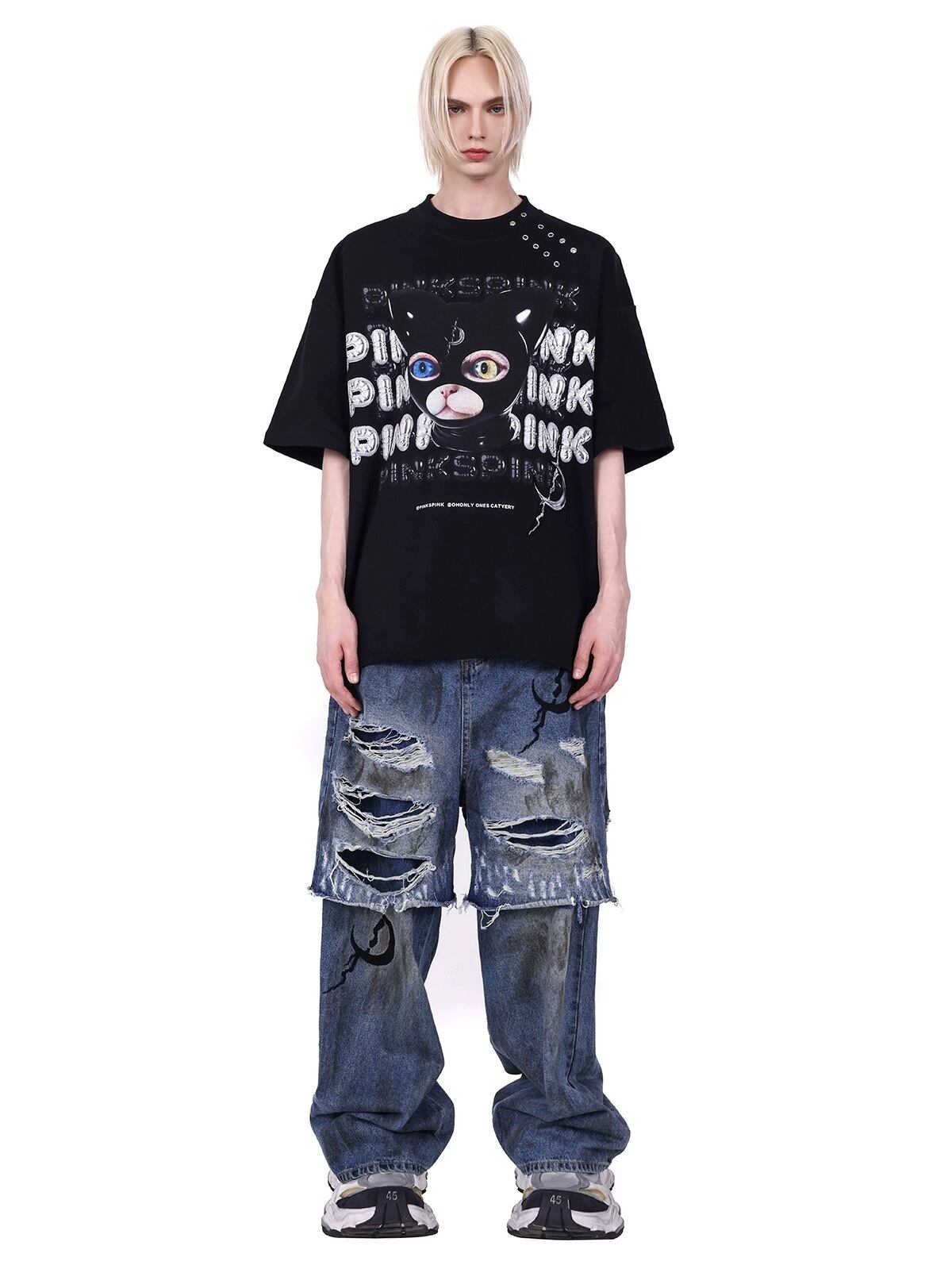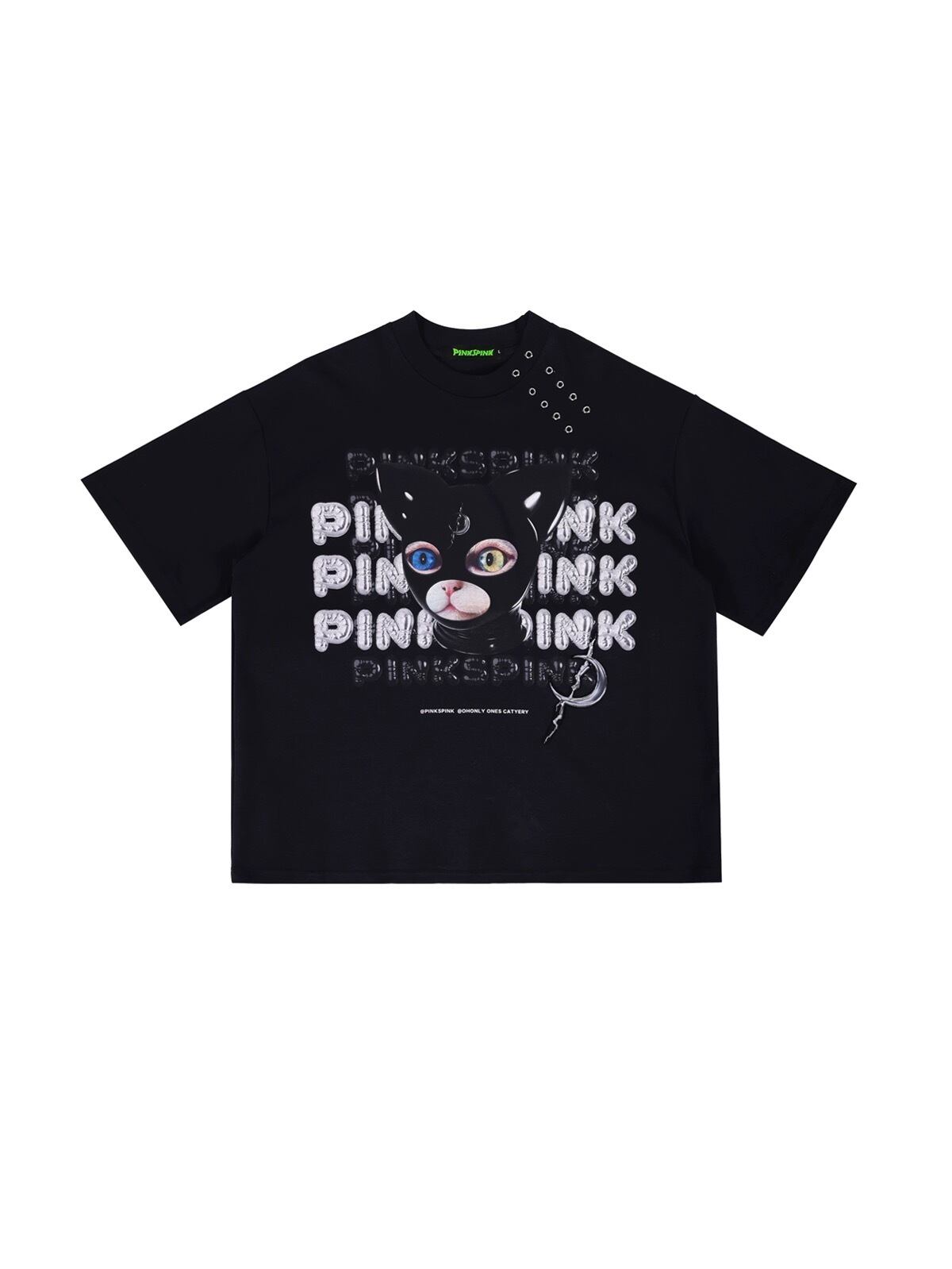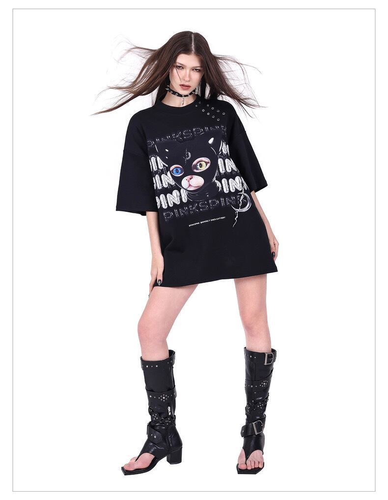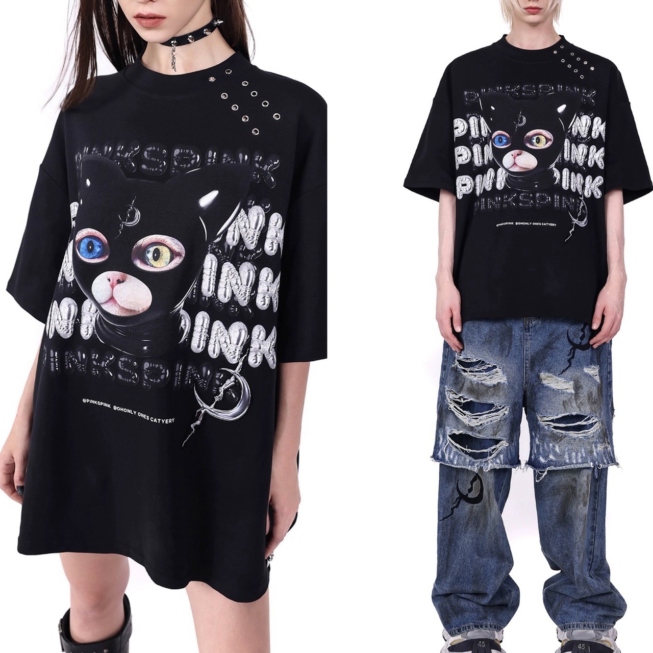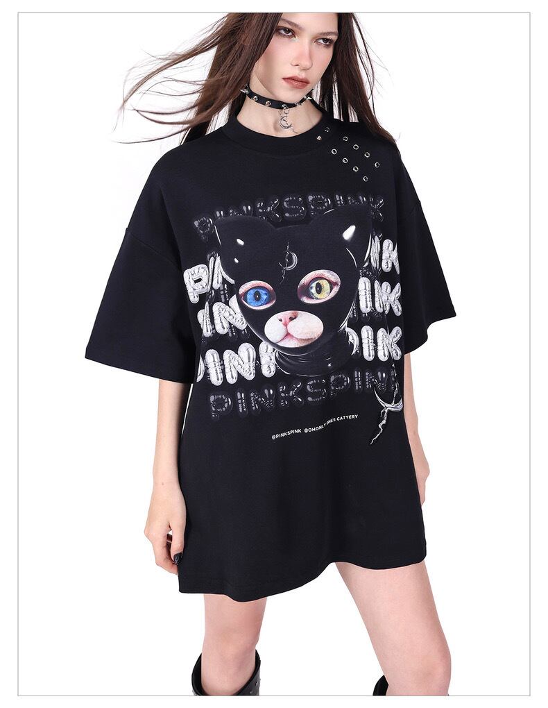 ユニセックス 黒 ねこ トップス Tシャツ マスク ワンピース カジュアル メンズ