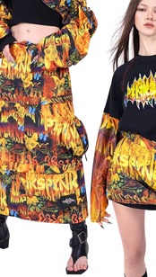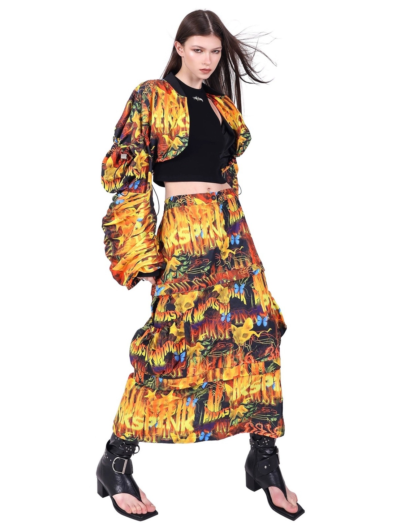 【3way】黄色 黒 ミニスカート ボトムス スカート ブラック 原宿 ストリート ハーフスカート