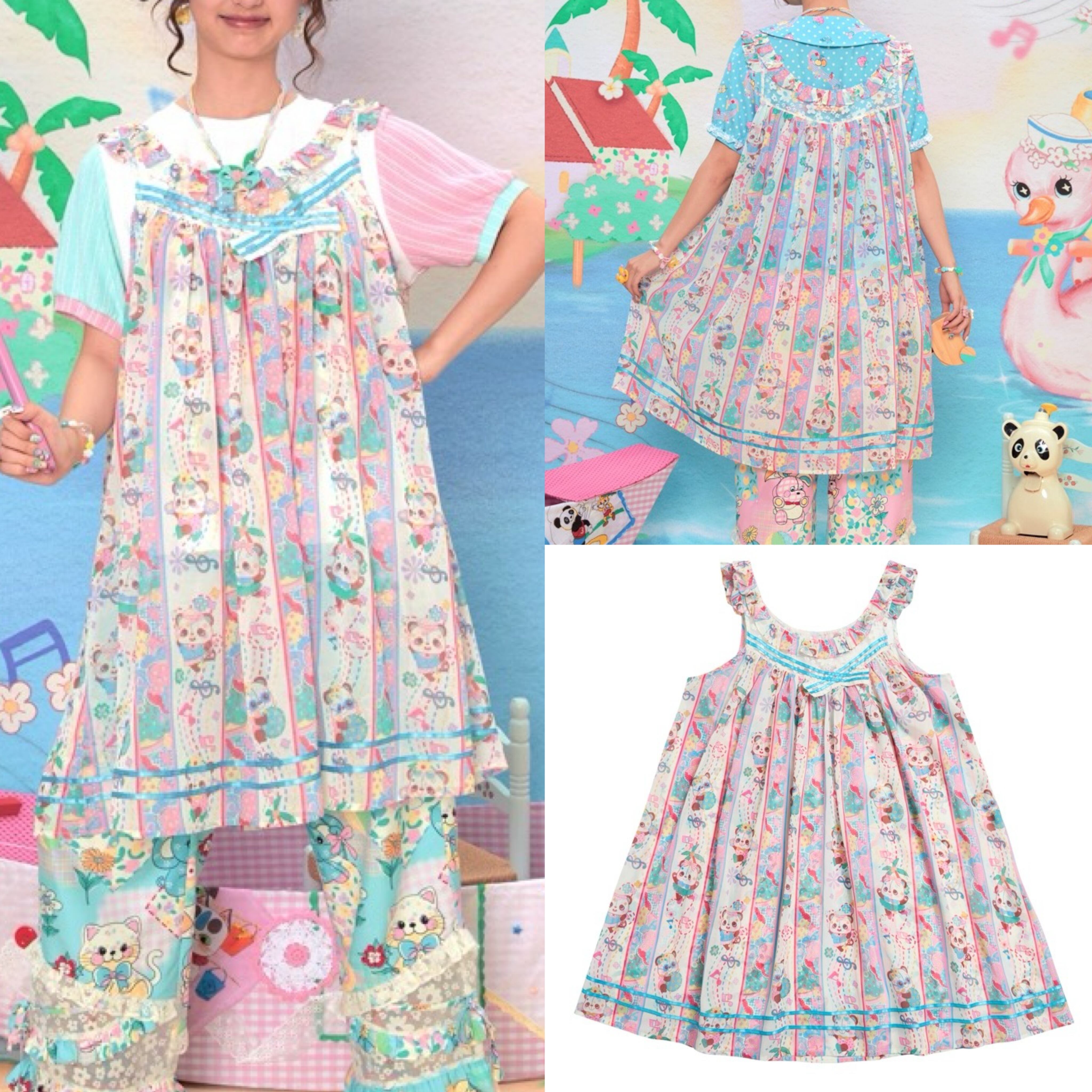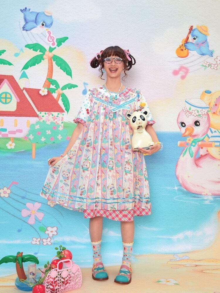 水色 可愛い かわいい ワンピース カラフル レインボー チェック ガーリー 原宿