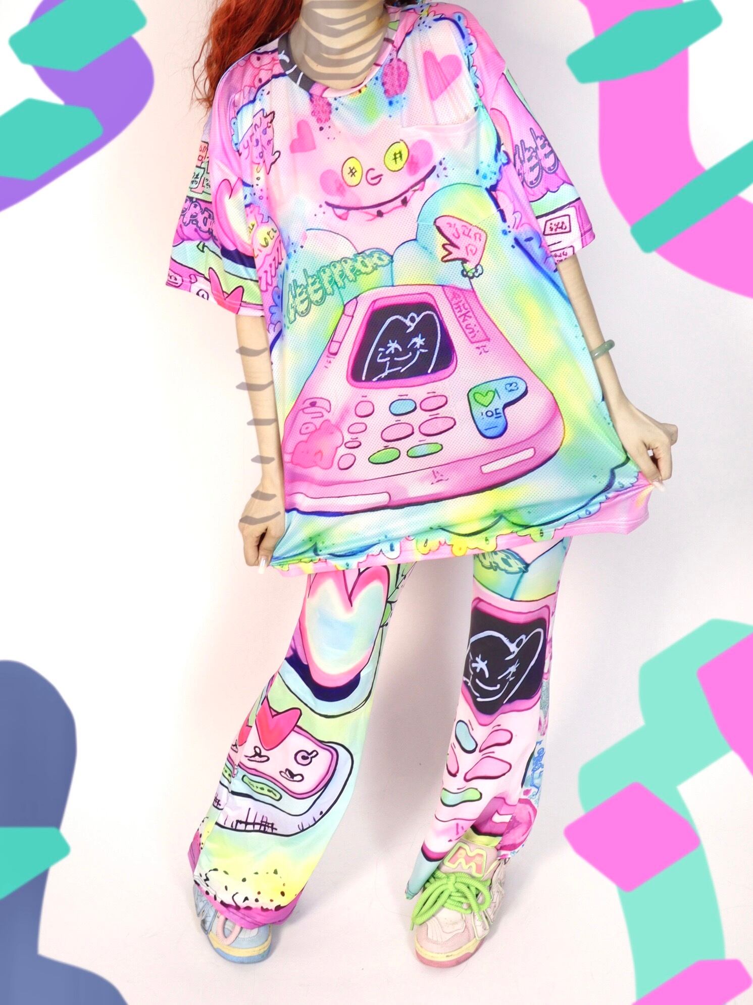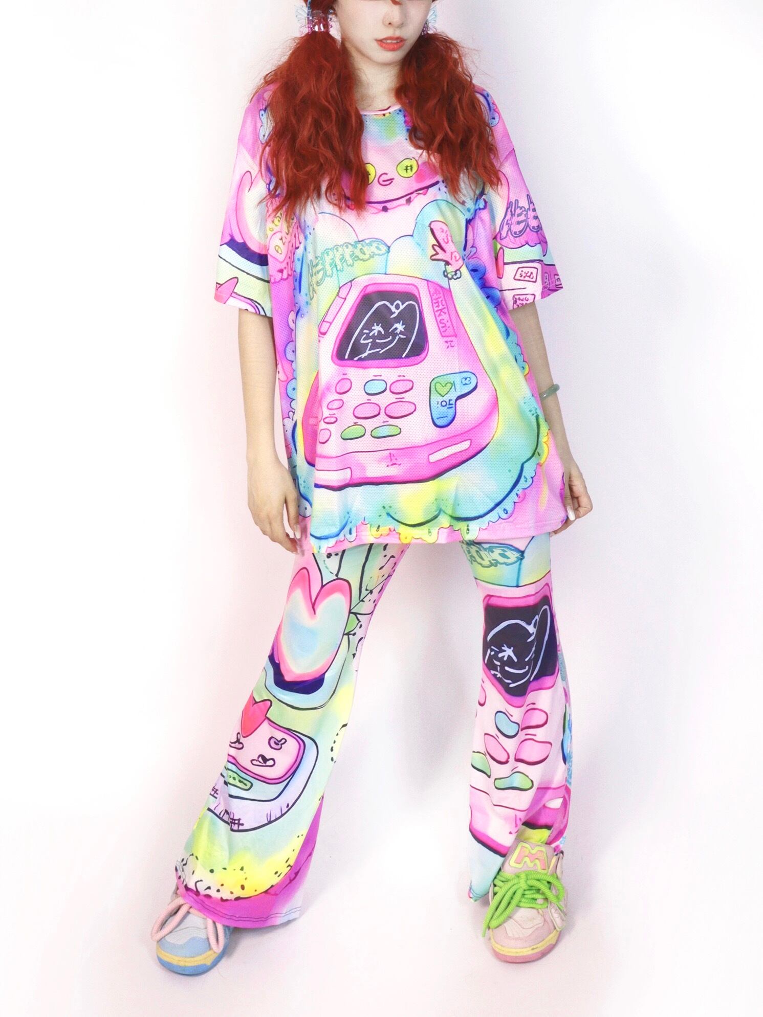 ピンク カラフル レインボー ブラウス Tシャツ かわいい ガーリー ワンピース