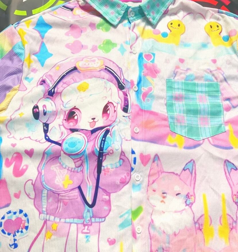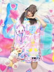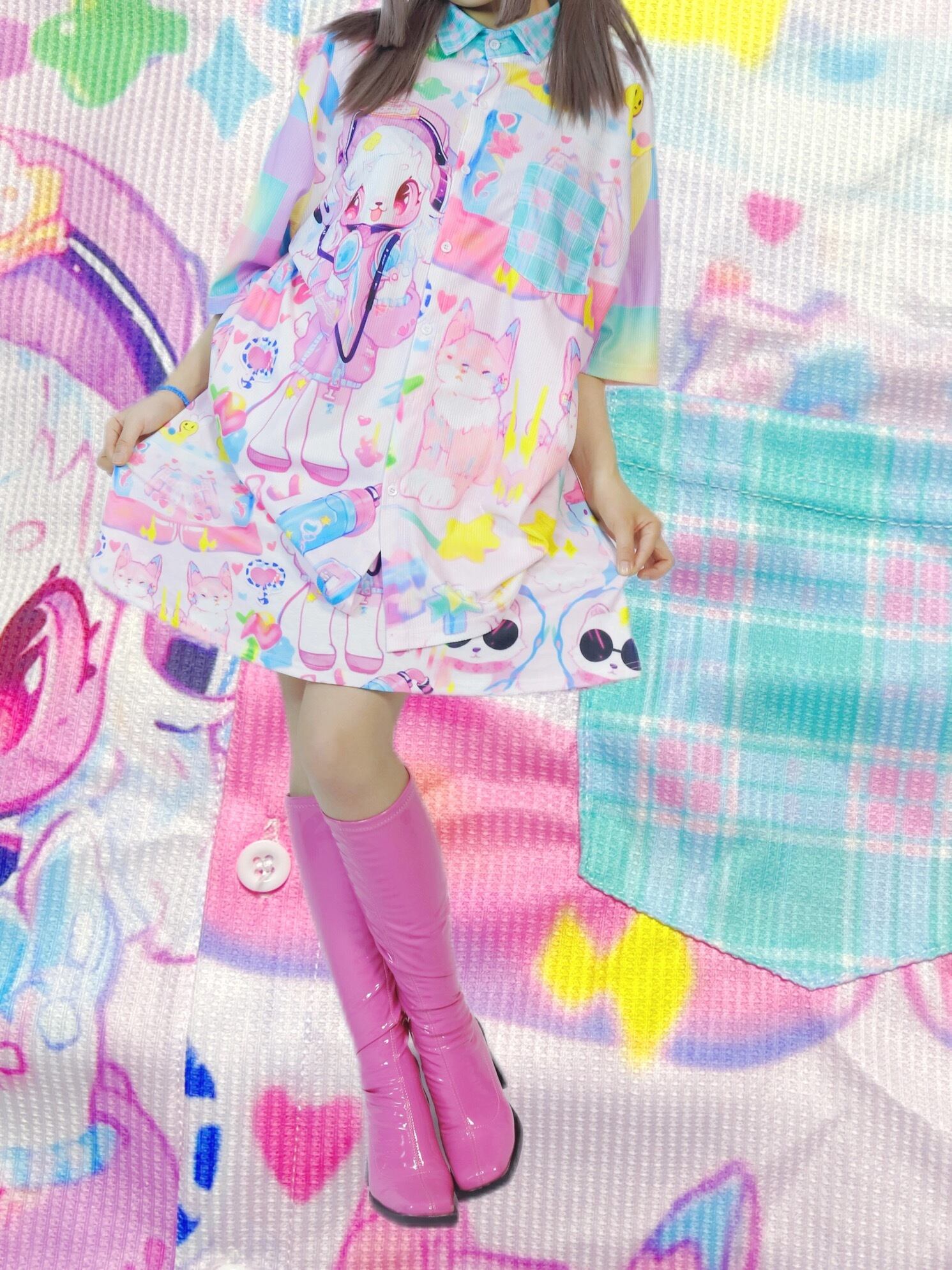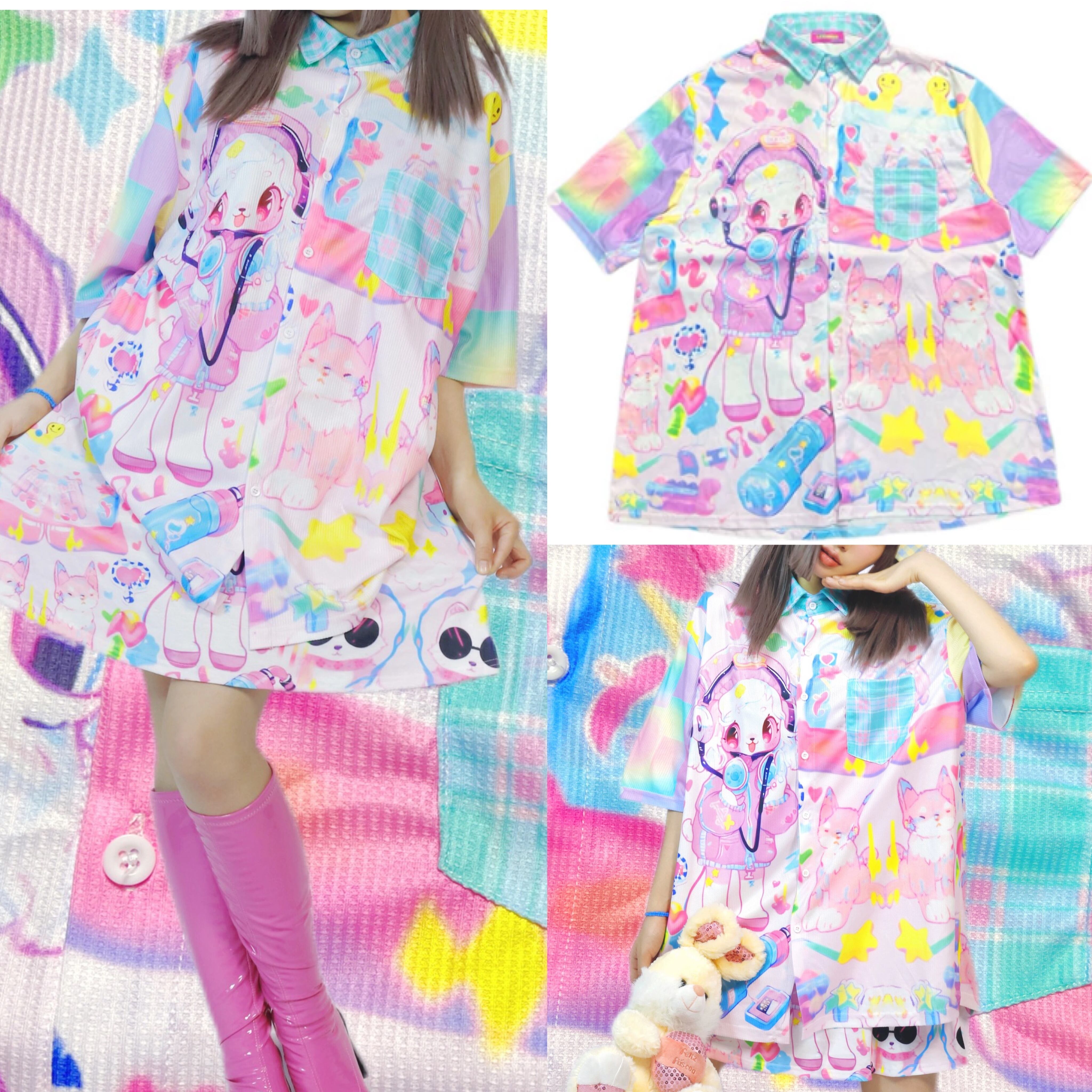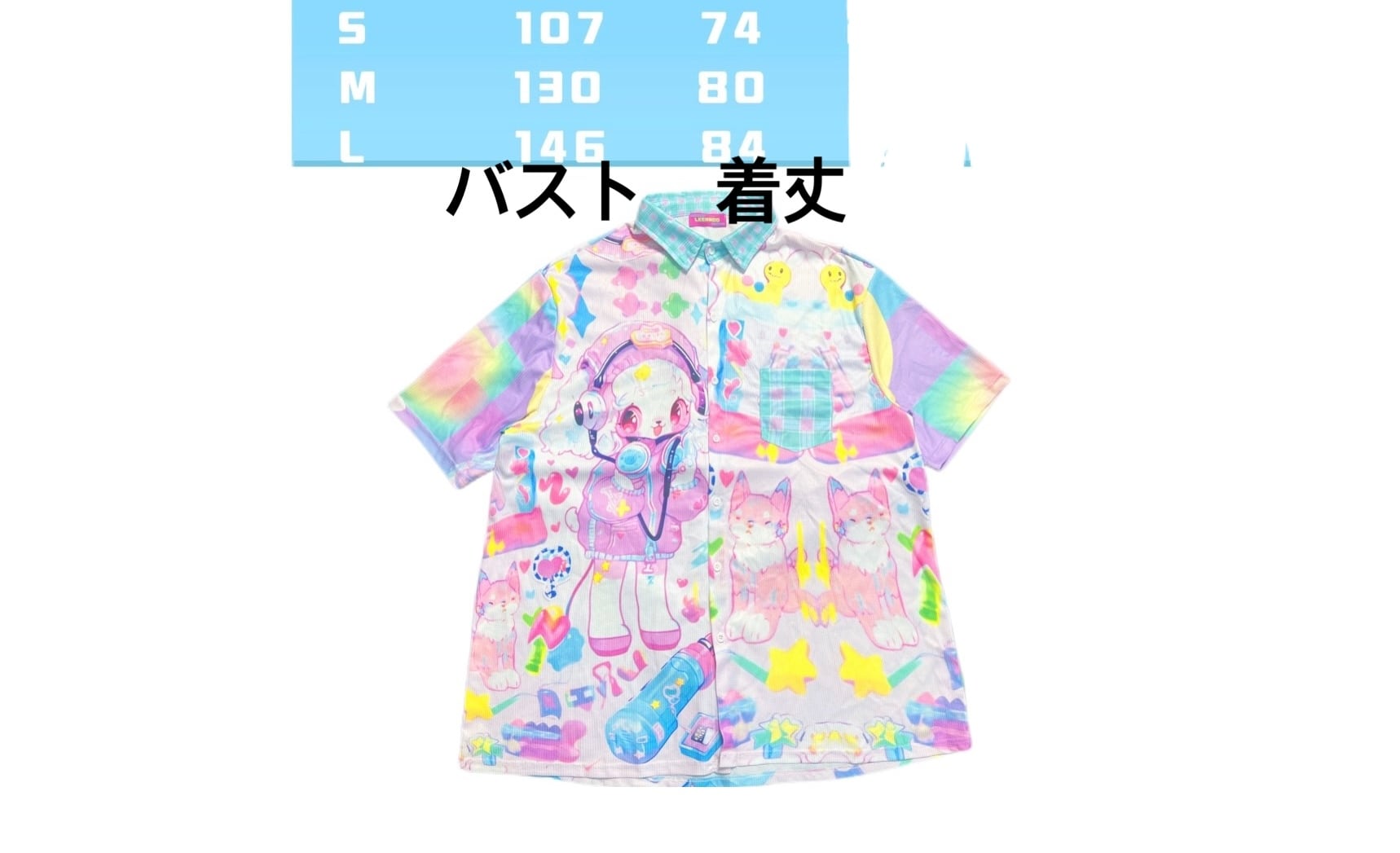 レインボー ピンク 水色 ブラウス ワンピース トップス ガーリー 原宿 シャツ