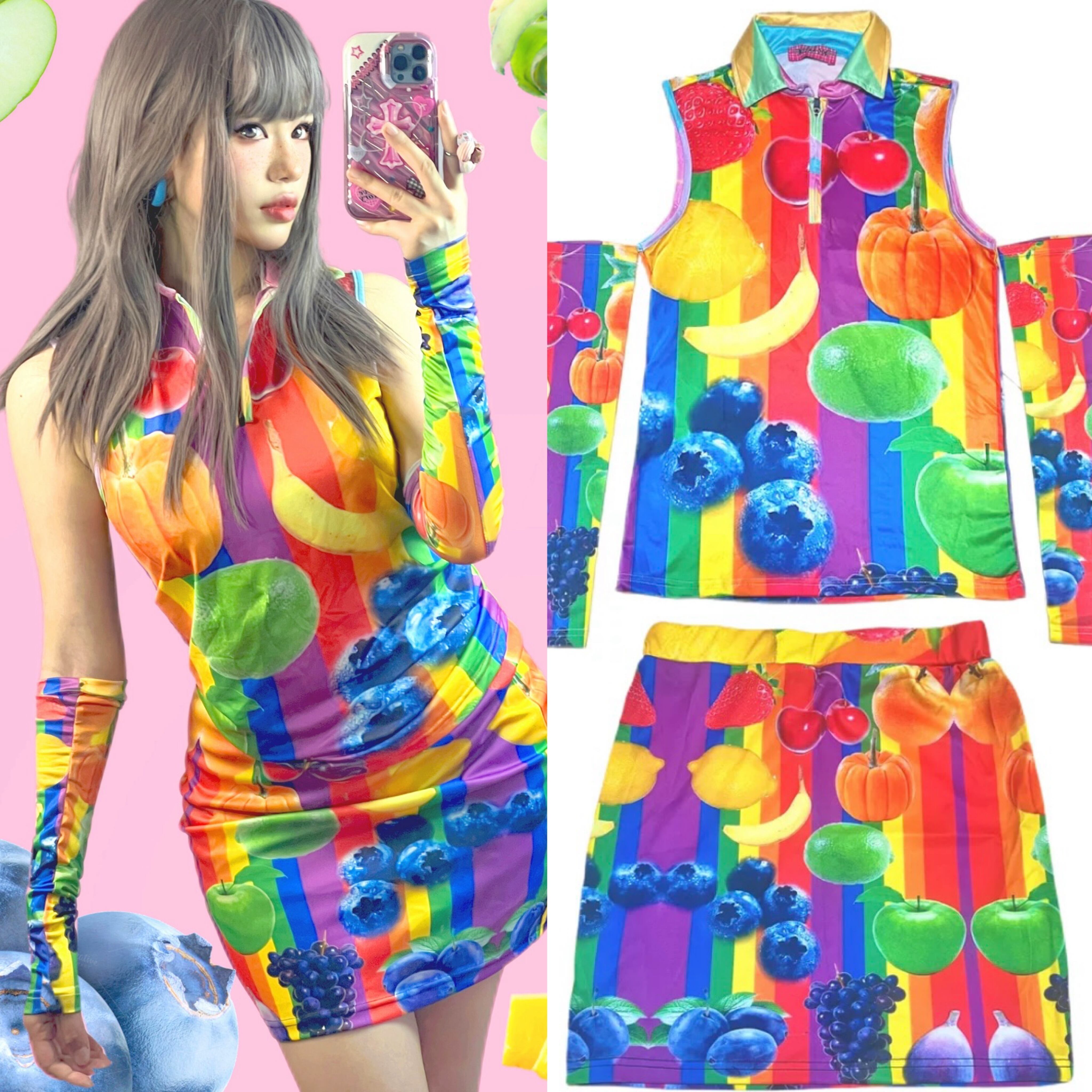 トップス ブラウス Tシャツ カラフル レインボー フルーツ 原宿 トロピカル スカート セットアップ ボトムス