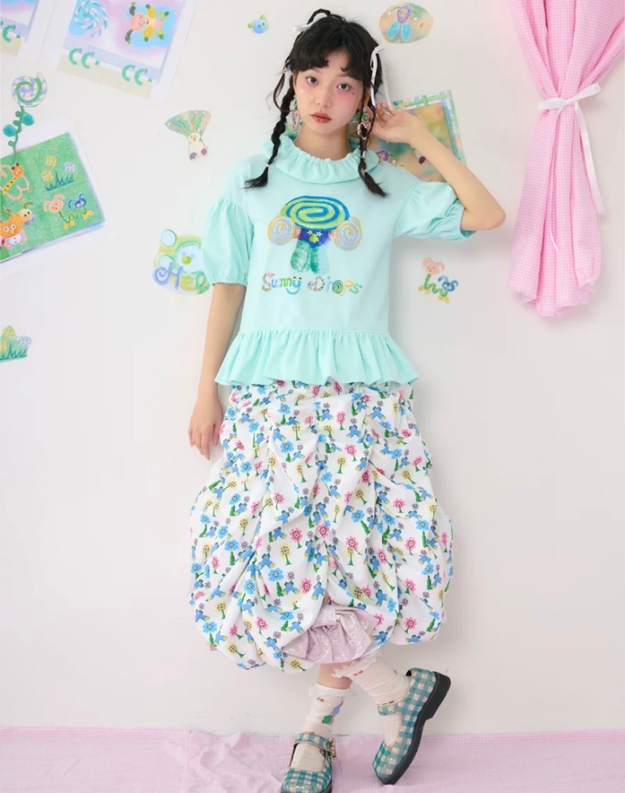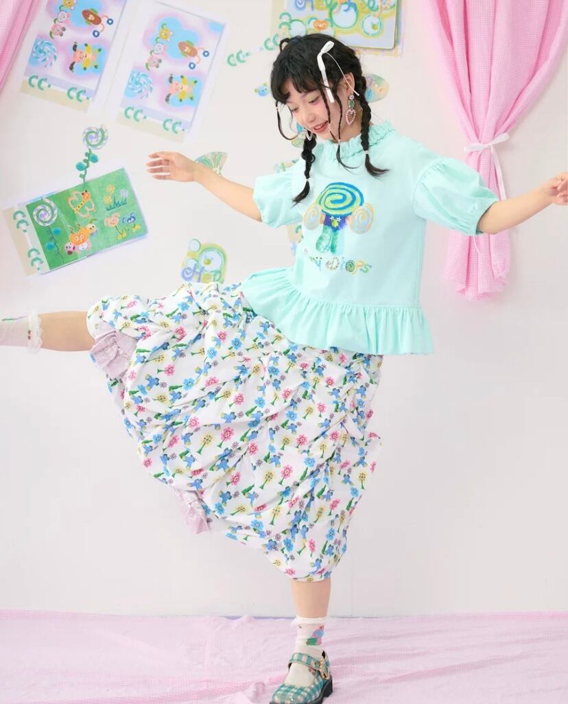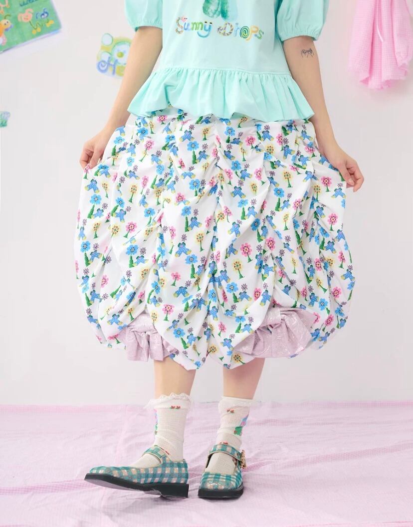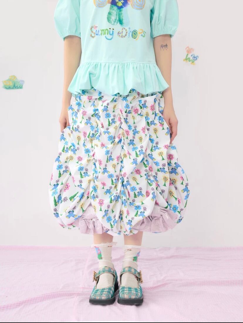 白 水色 ピンク スカート ボトムス ガーリー 原宿 カーテン