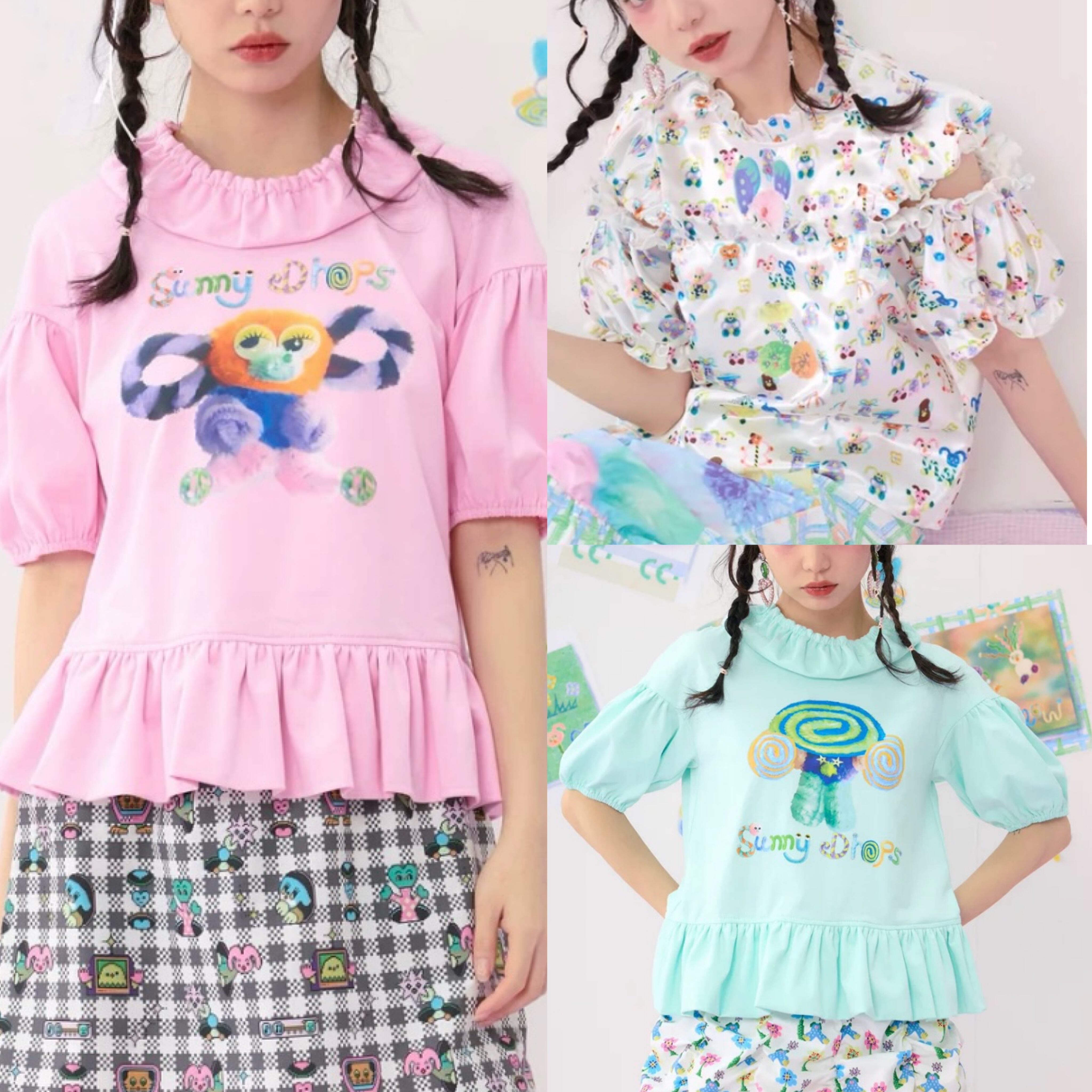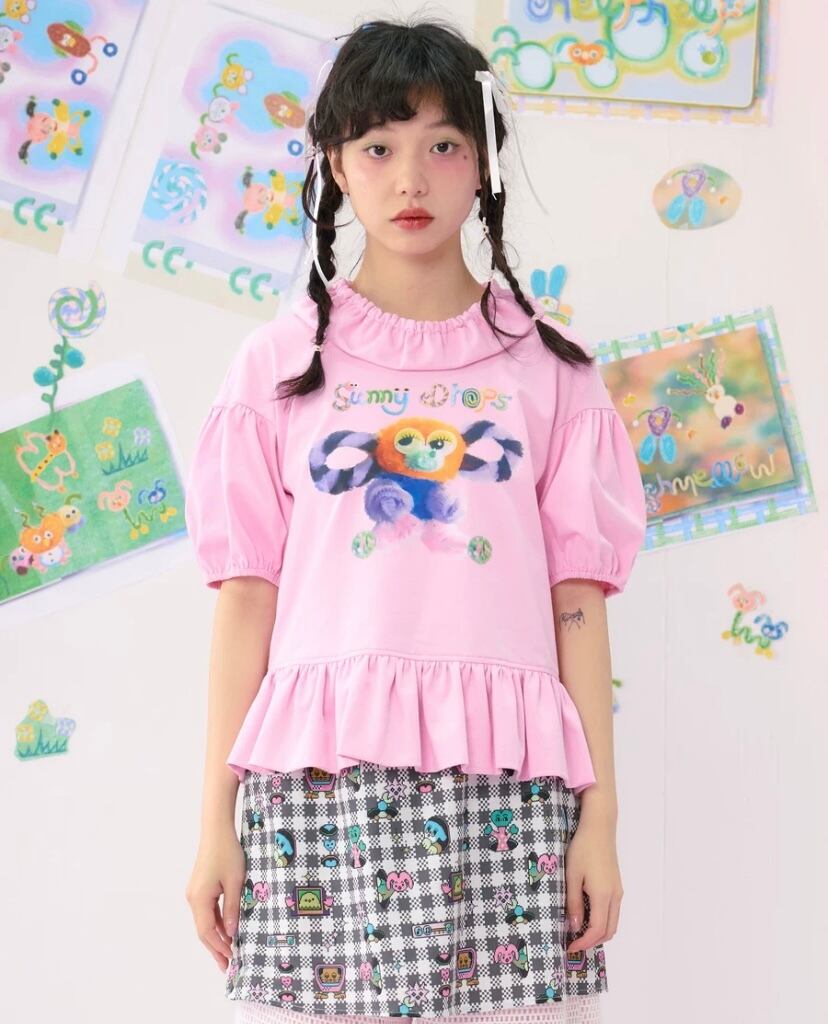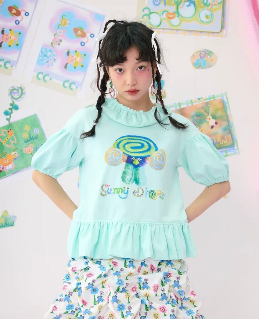 ピンク 緑 水色 Tシャツ ブラウス トップス ガーリー 原宿