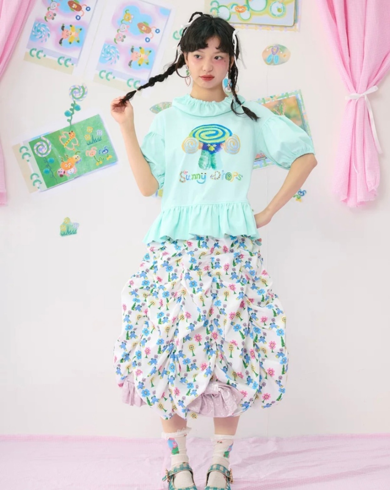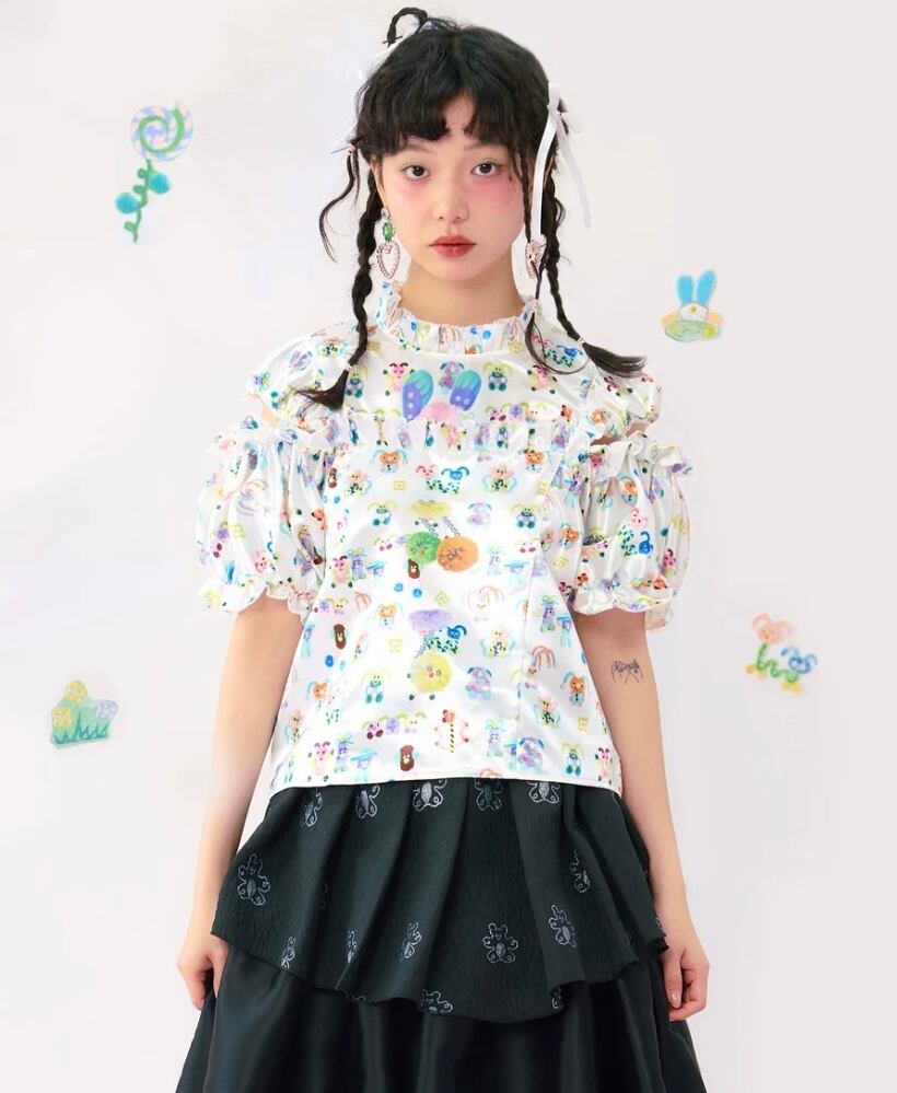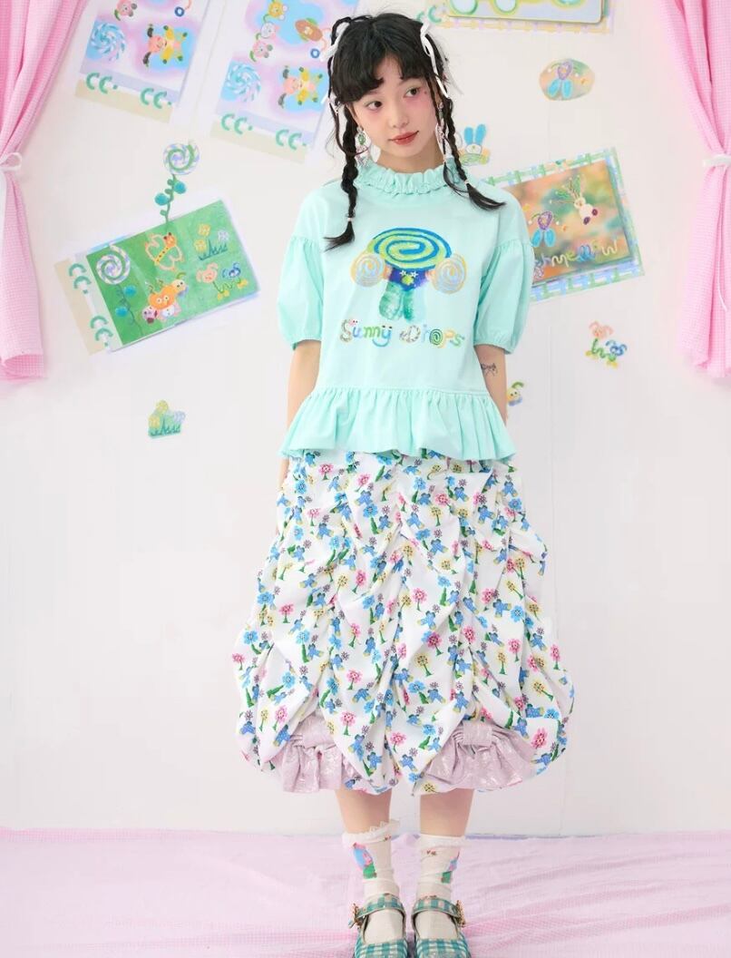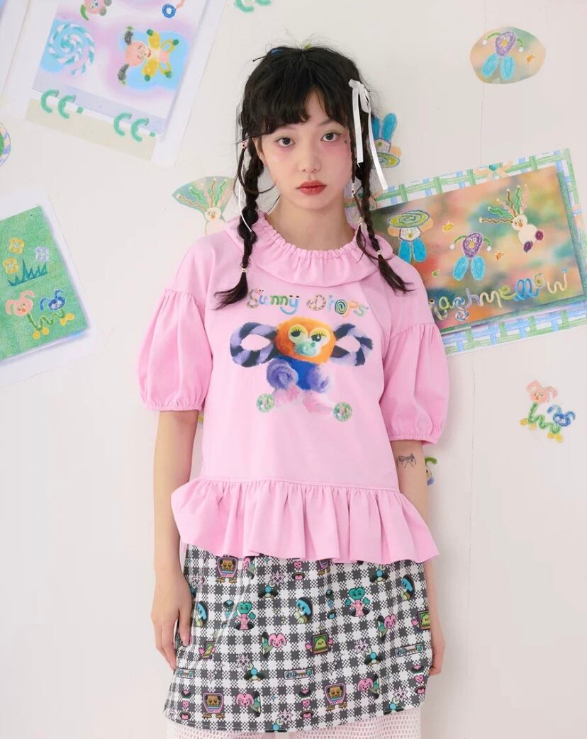 ピンク 緑 水色 Tシャツ ブラウス トップス ガーリー 原宿