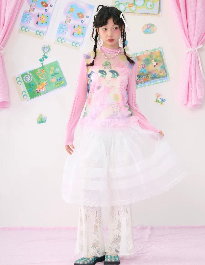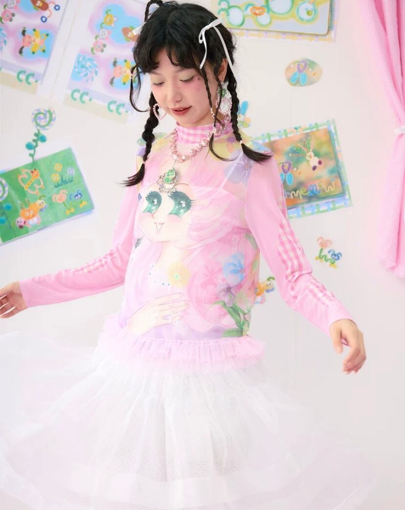 ピンク 可愛い ガーリー シースルー 原宿 かわいい トップス ブラウス チェック