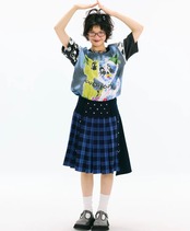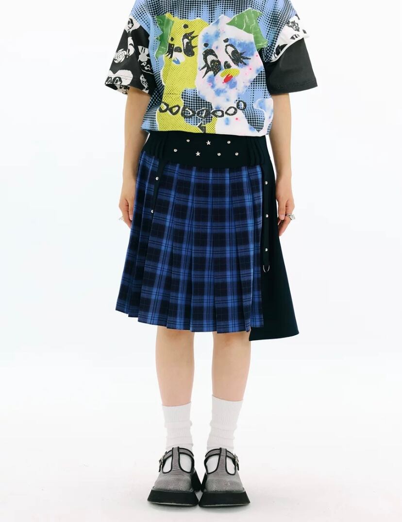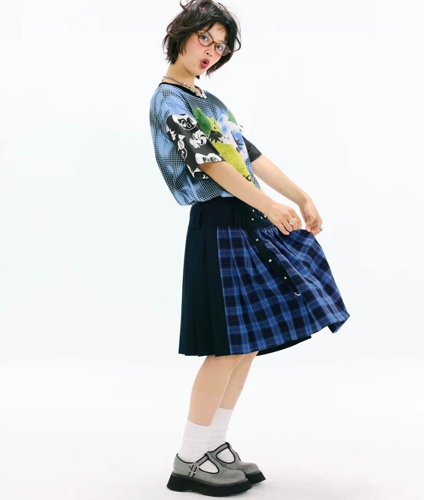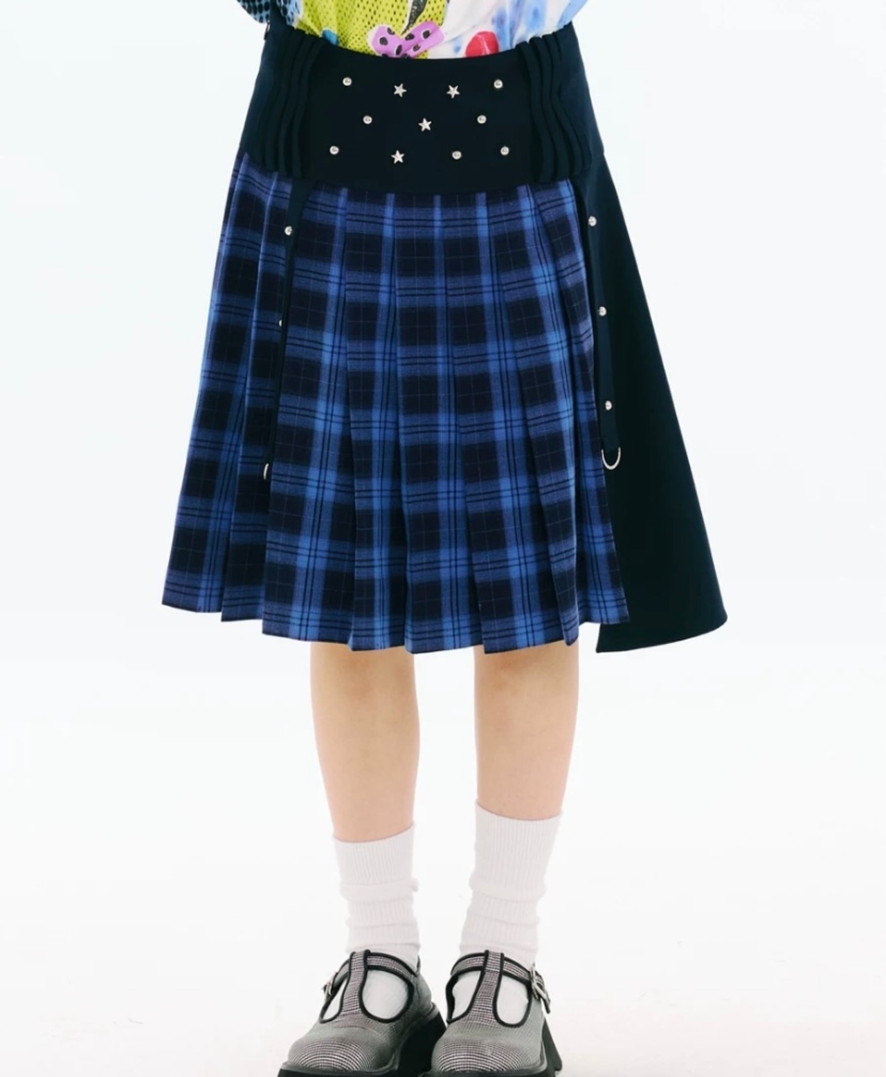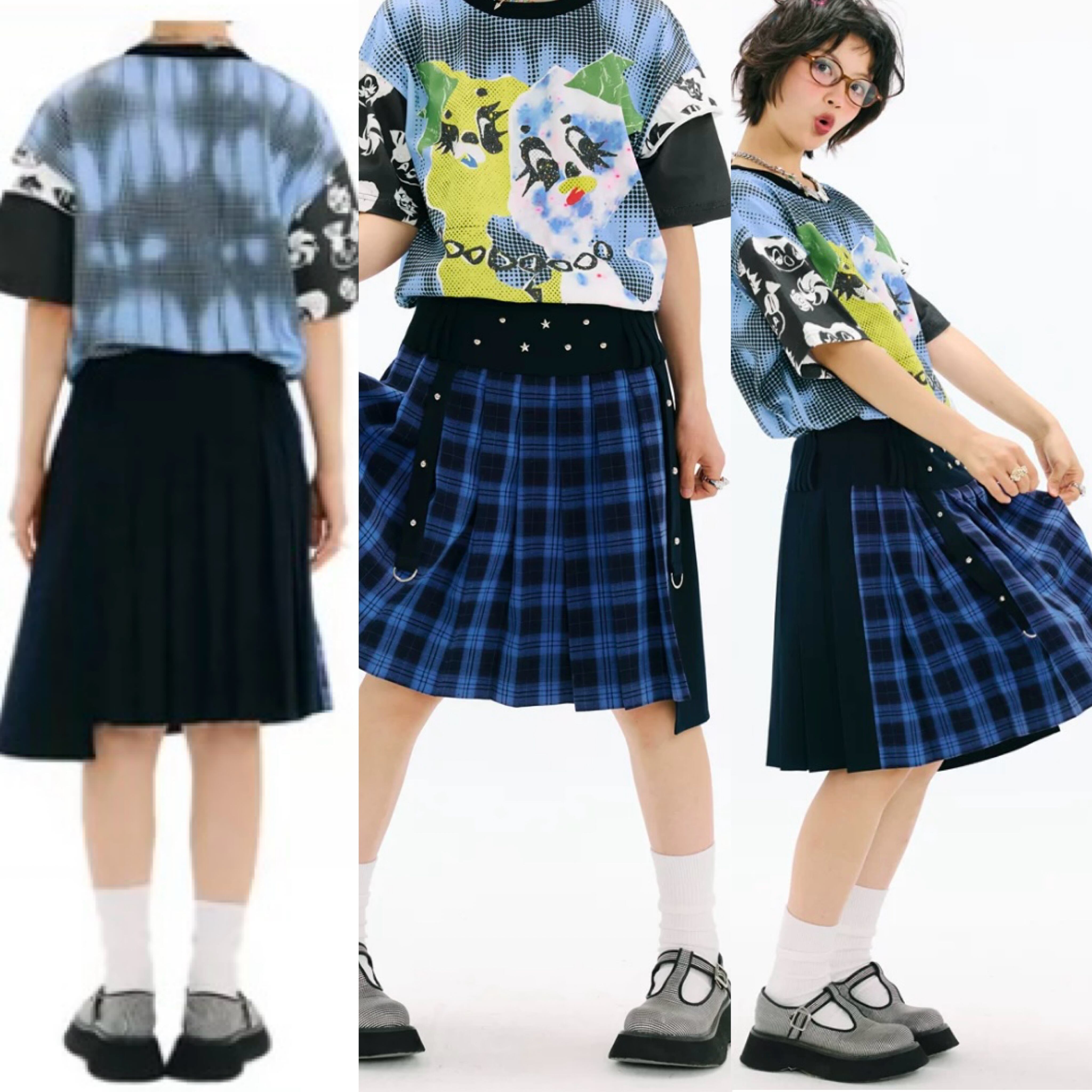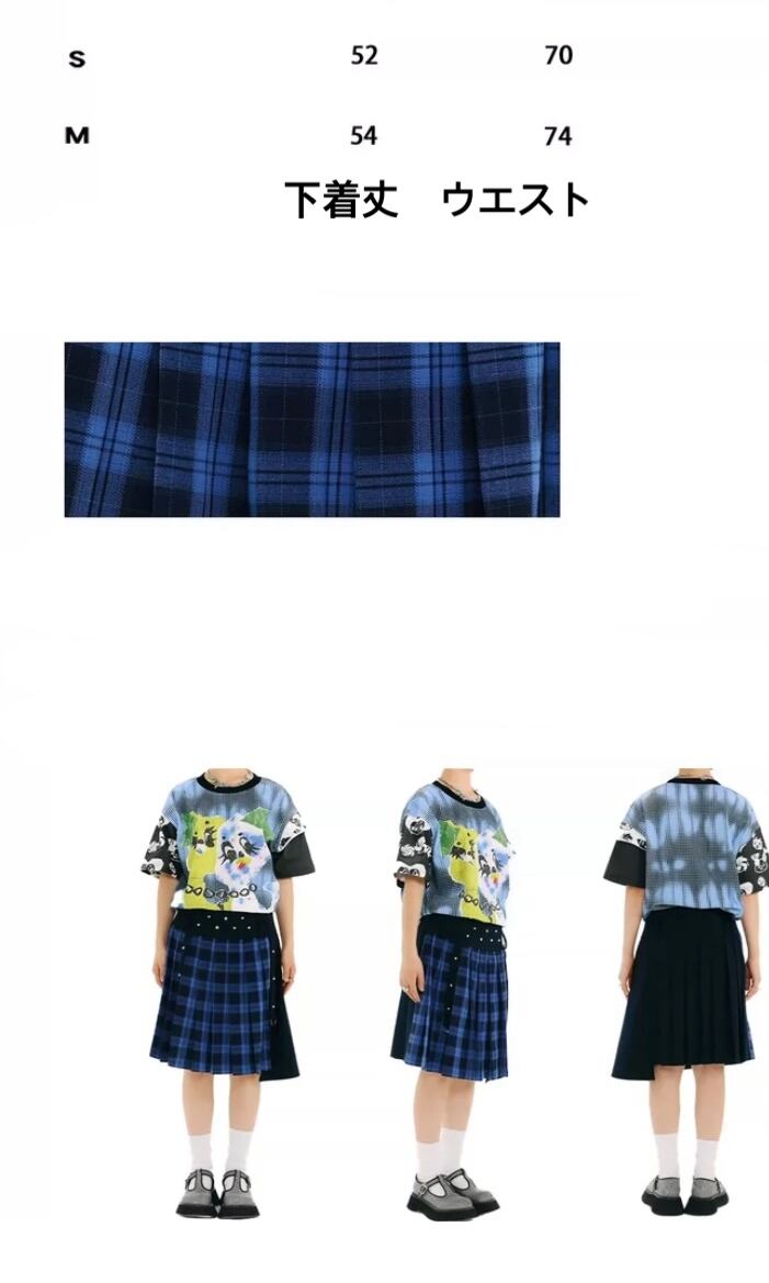 ブルー チェック スカート プリーツ ボトムス スクール ガーリー 原宿 かわいい