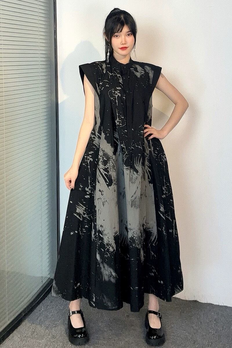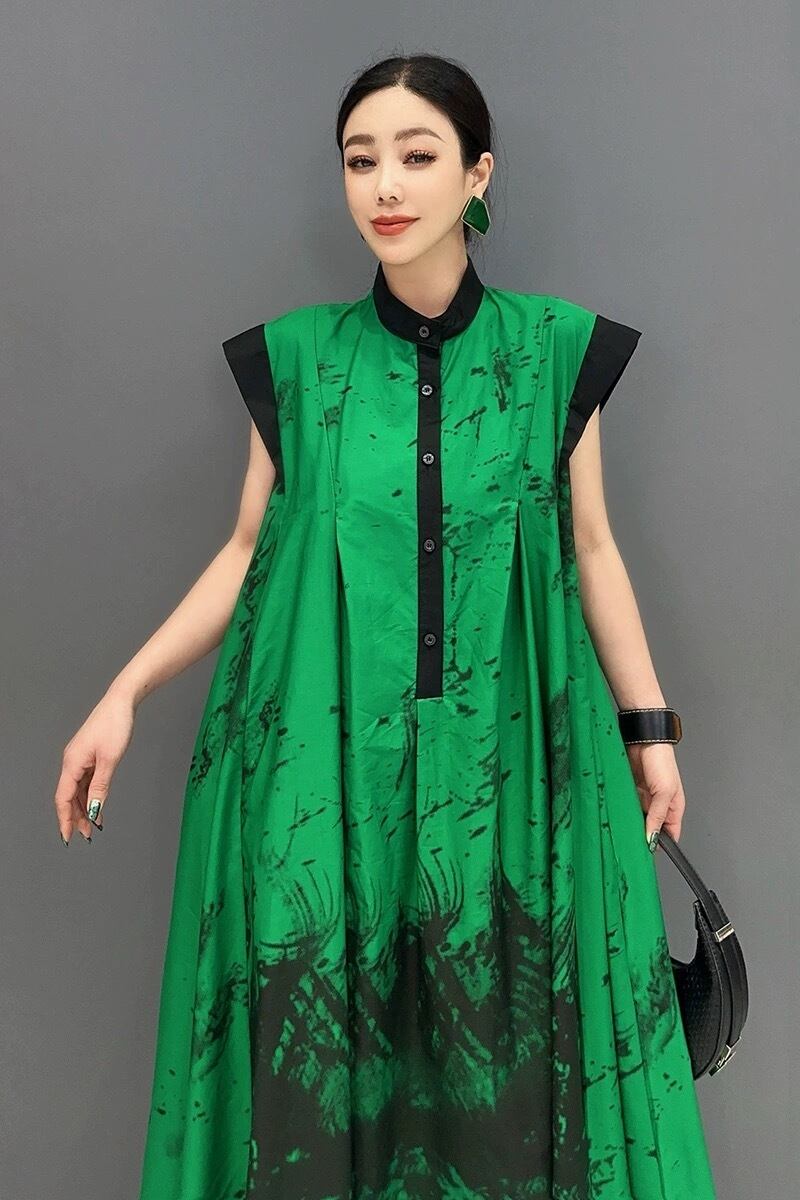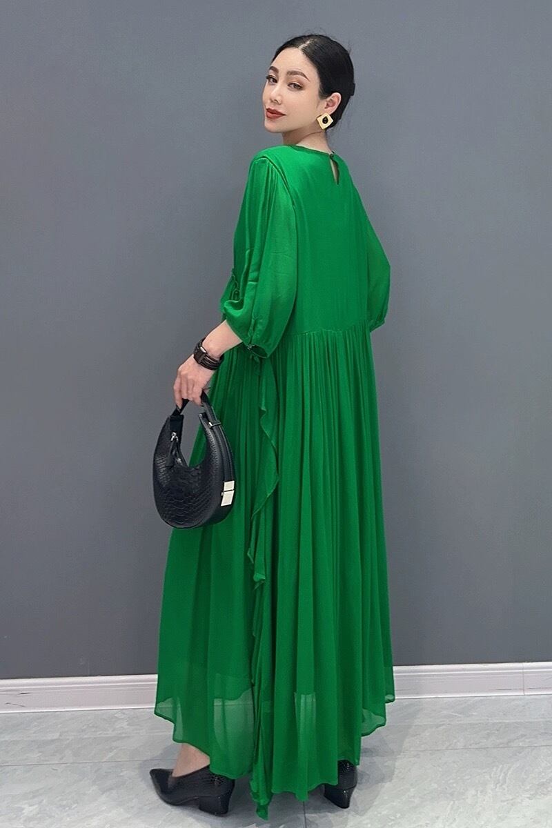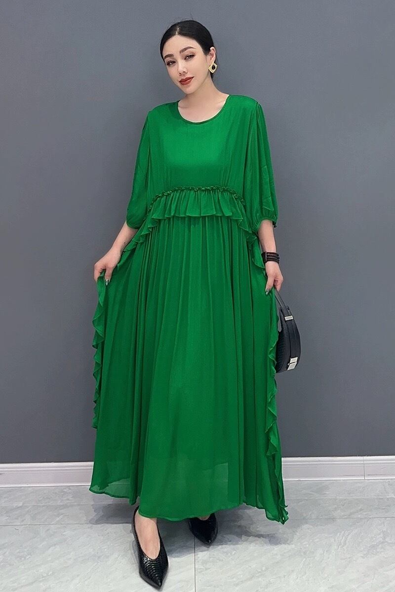緑 黒 ワンピース カジュアル シンプル マキシ ロング