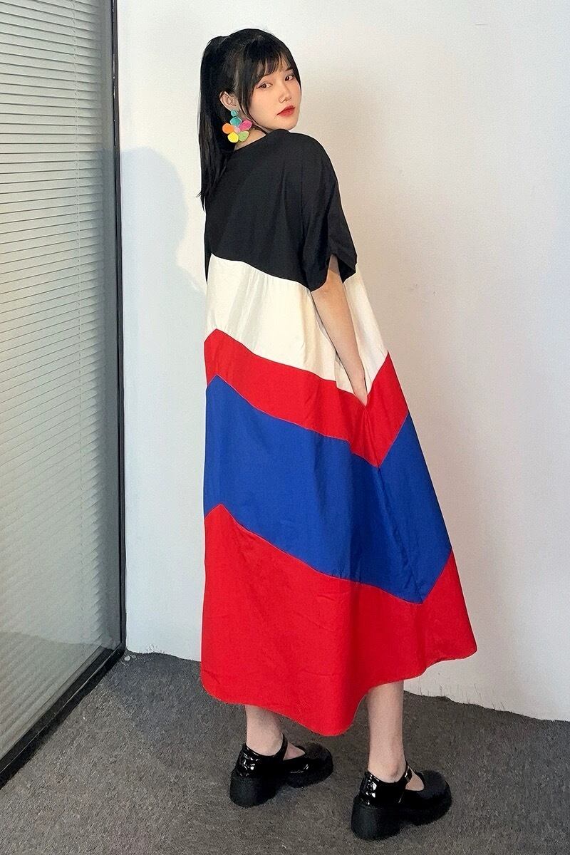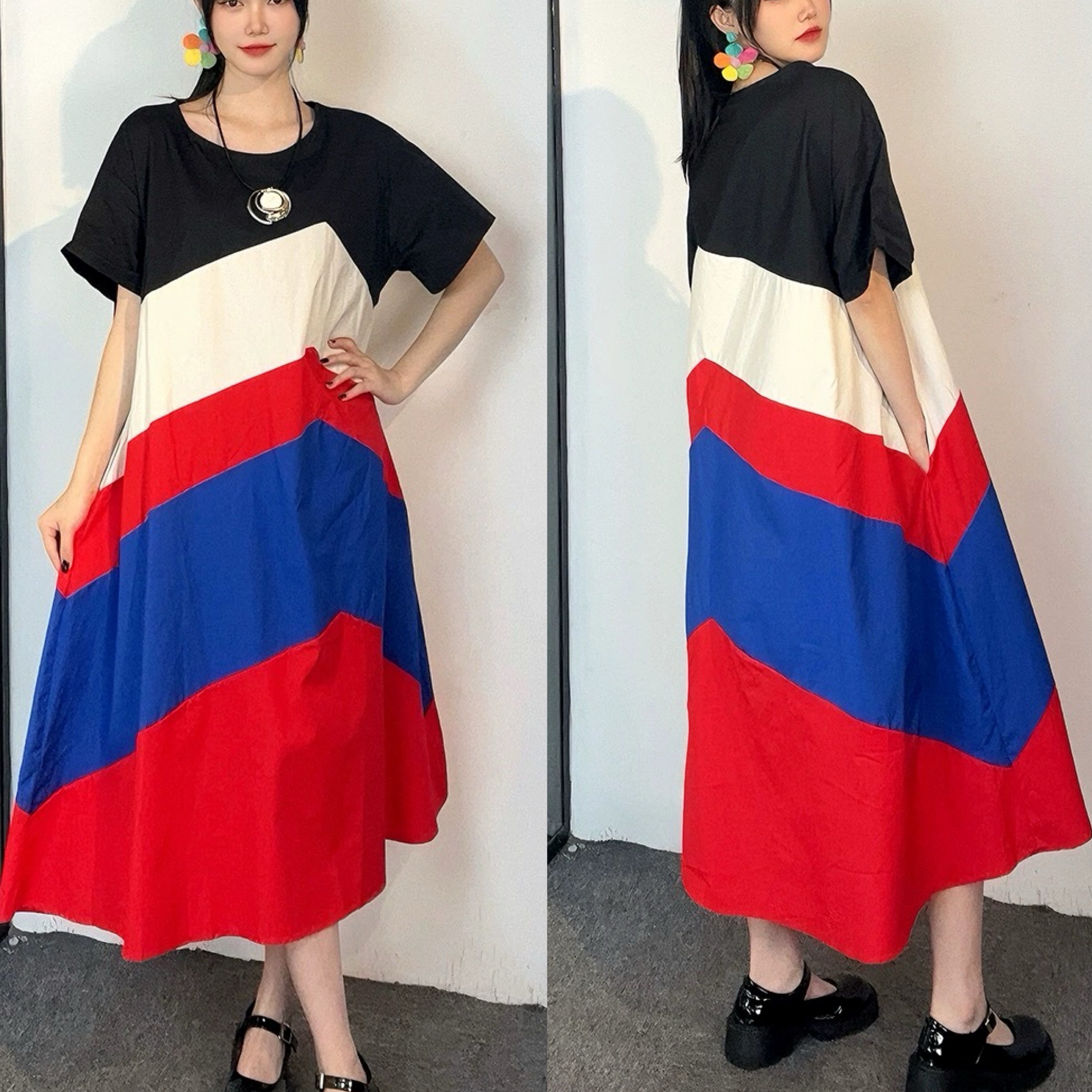 赤 黒 青 ワンピース カジュアル 可愛い 白 ブラウス