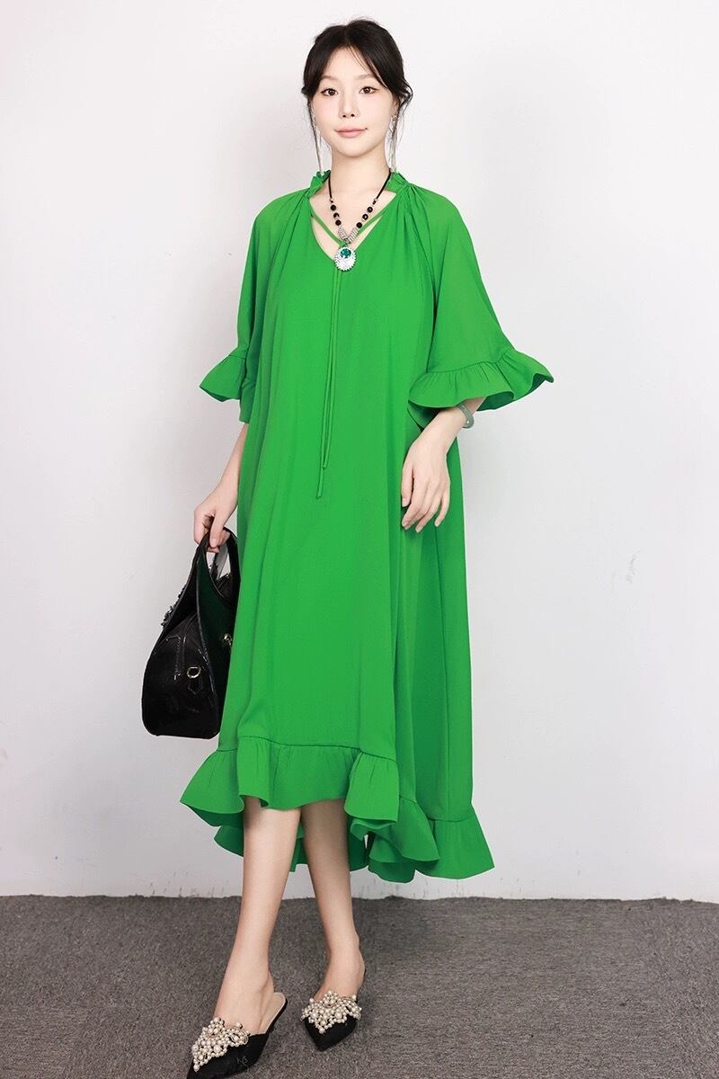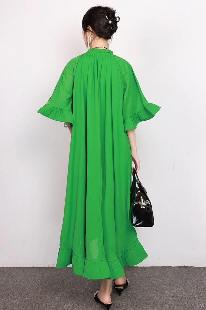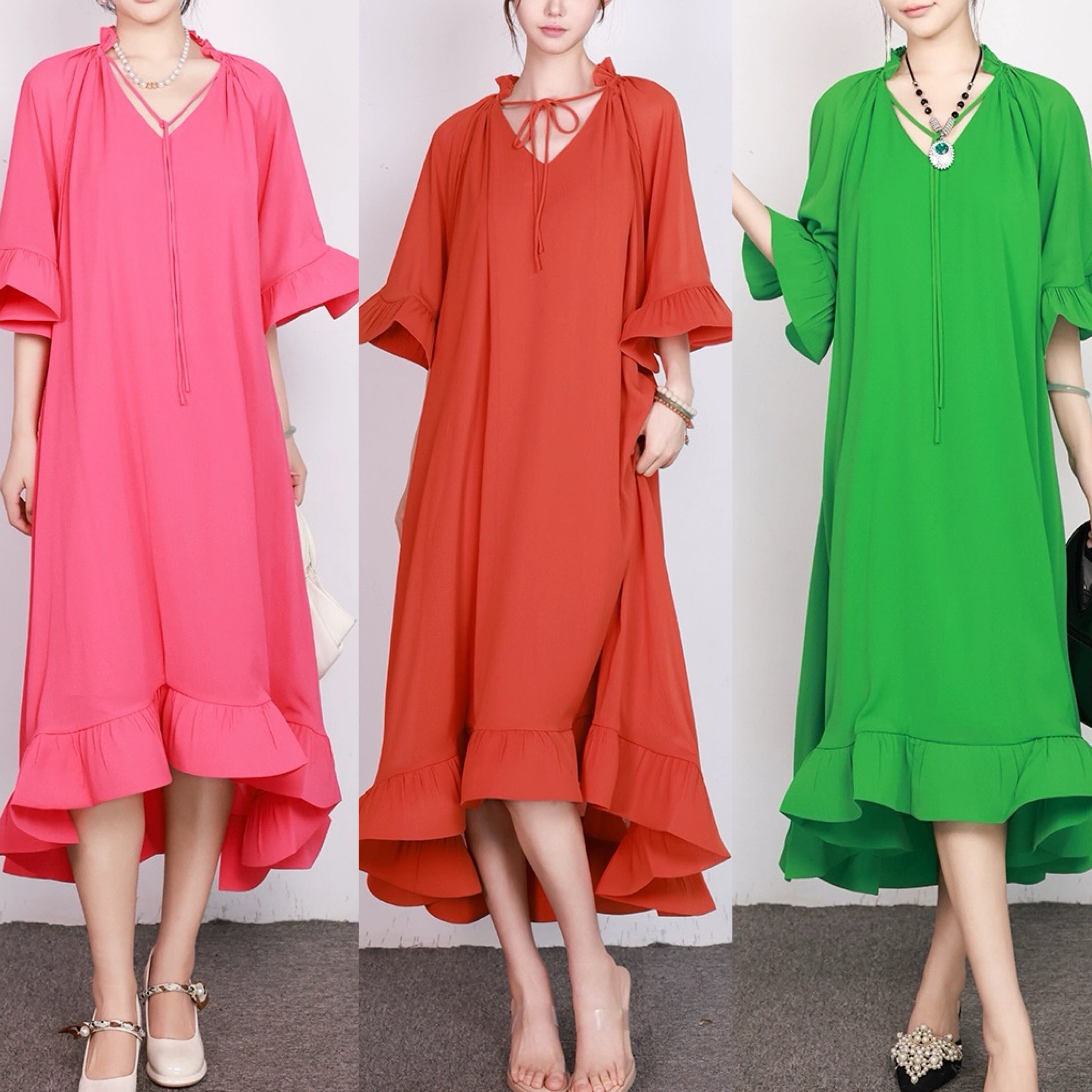 ゆったり ワンピース ブラウス Tシャツ 緑 ピンク オレンジ カジュアル